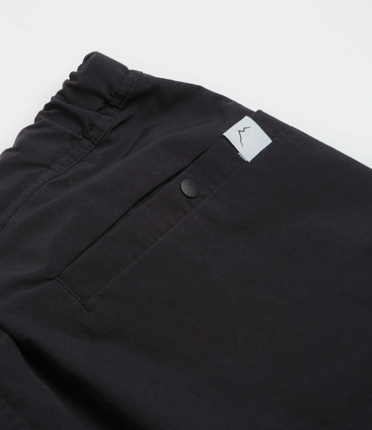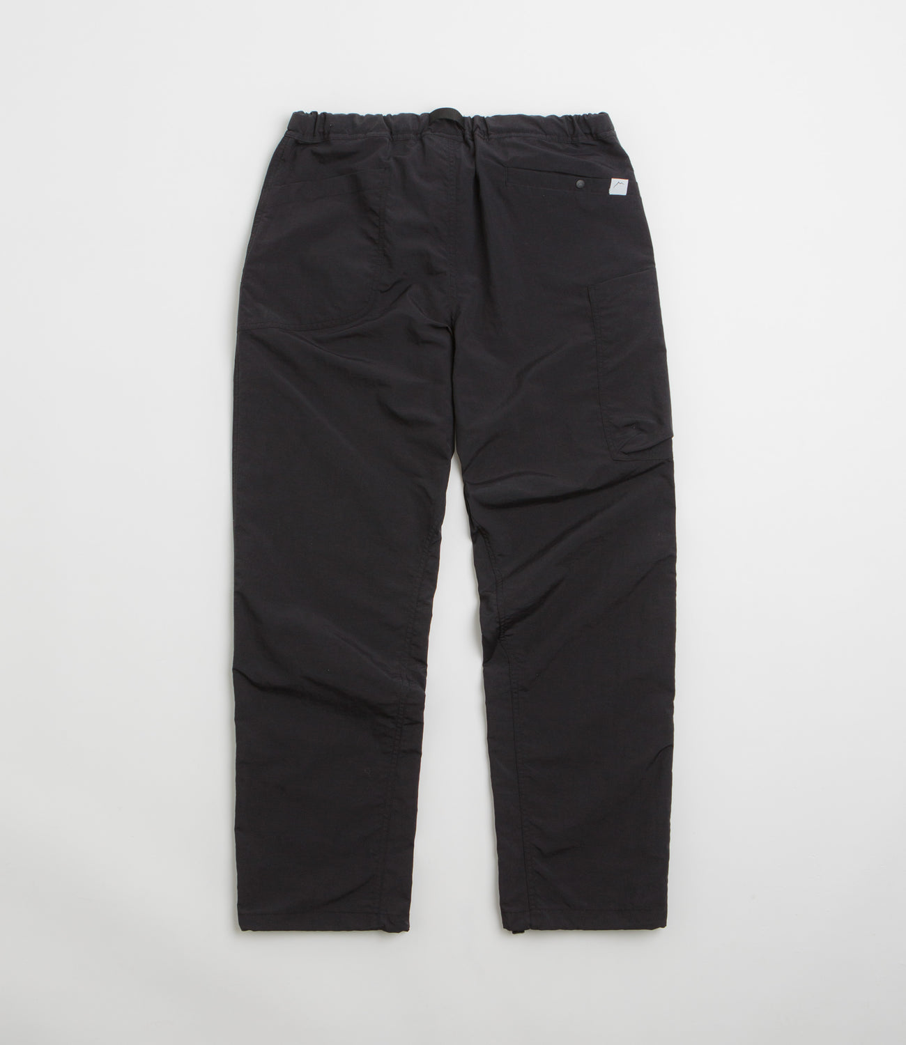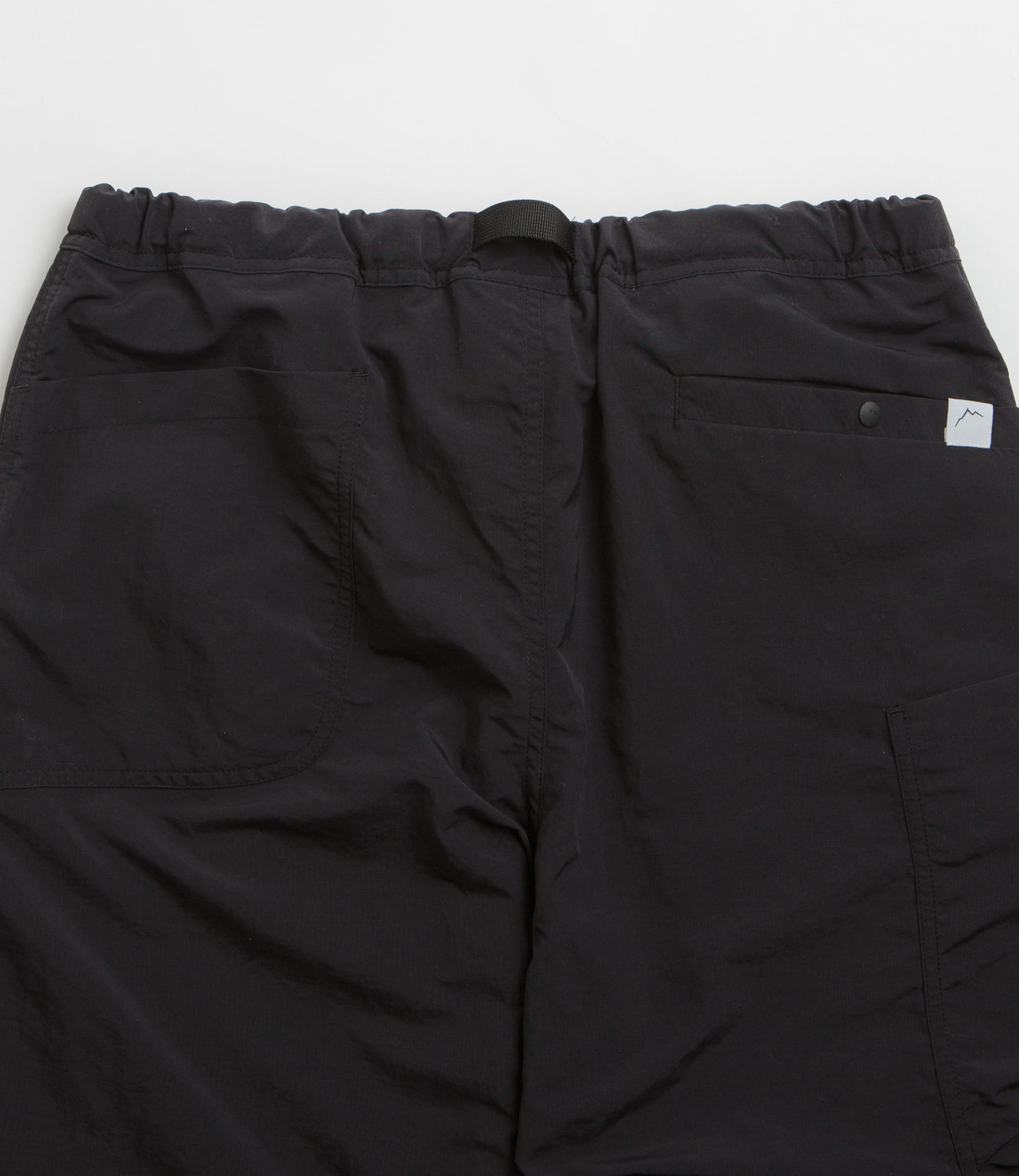 Cayl Multi Pocket Wide Pants in Black. Wide fitting with toggle-cord adjustable cuffs, these Cayl pants are crafted from 100% nylon Supplex. Featuring a DWR coated exterior, an elasticated waistband and an integrated webbing belt, these black Cayl pants are finished with two side pockets, two rear pockets, additional utility pockets, a gusseted crotch and flag label branding.
