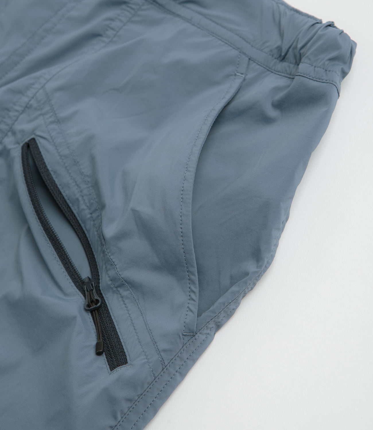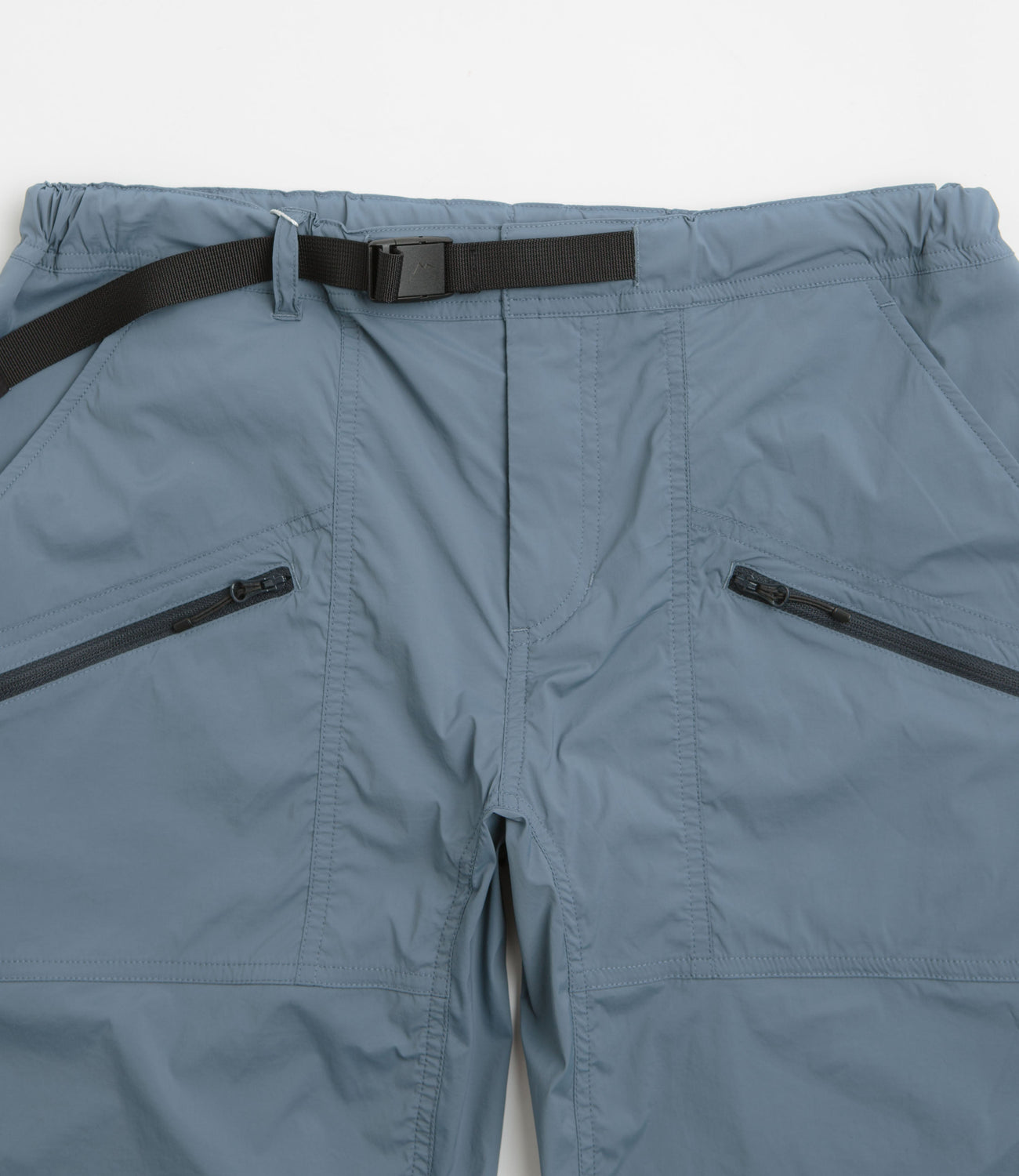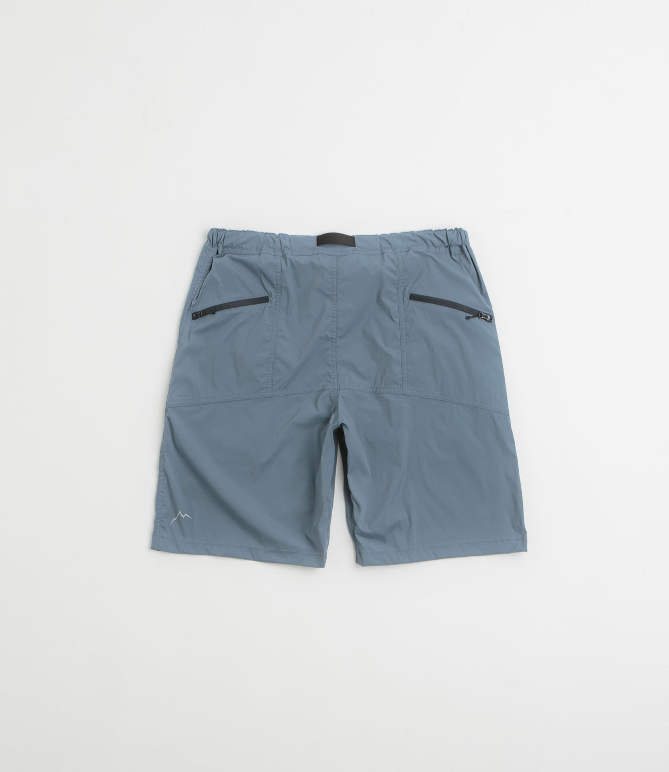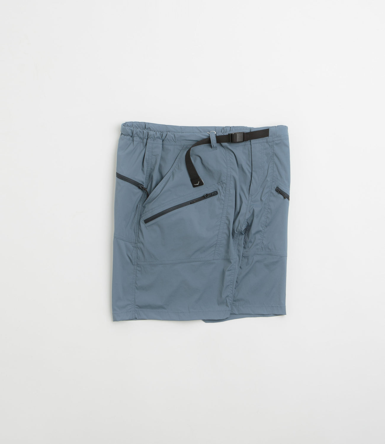 Cayl Zip Pocket Shorts in Light Blue. Crafted from a stretchy nylon-polyurethane blend, these DWR coated Cayl shorts are designed with an elasticated waist and an integrated webbing belt. Featuring a YKK zipper fly, four classic pockets and two additional utility pockets, these light blue Cayl shorts are finished with a woven flag label and retroreflective branding.