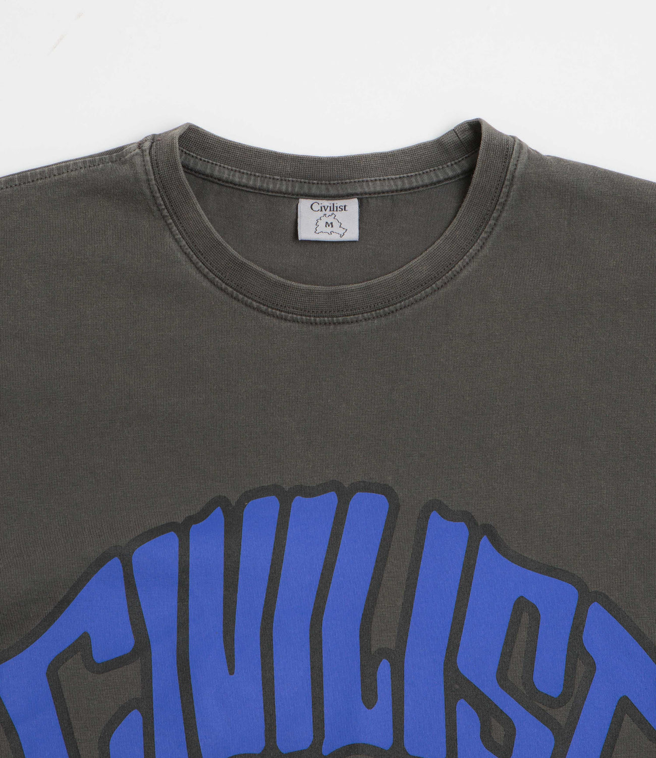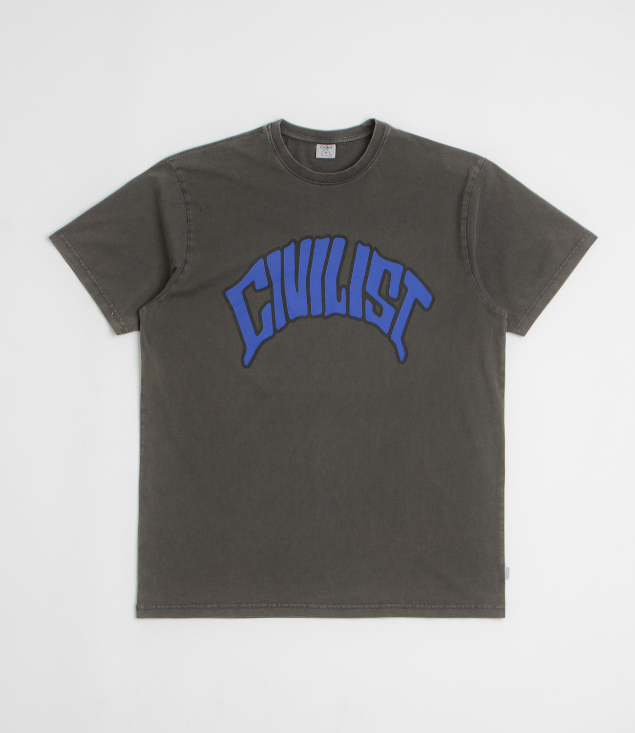 Civilist Arch T-Shirt in Nutmeg. Regular fitting and made from 100% cotton, this Civilist t-shirt is designed with a classic crew collar and a straight cut hem. Finished in grey brown with flag label detailing and a printed chest graphic.