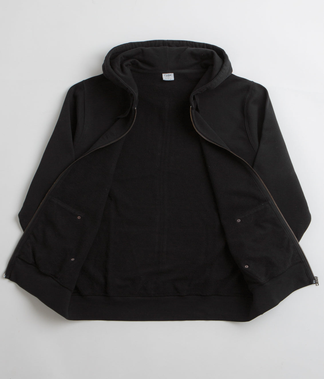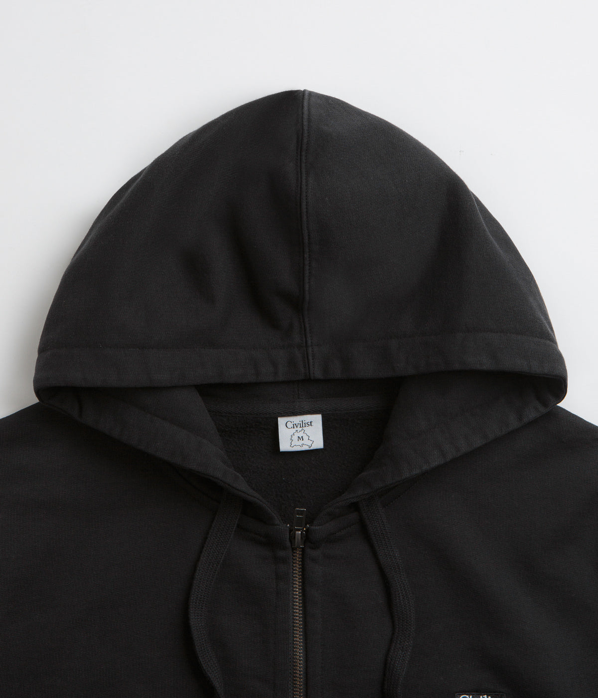 Built for days when you’re stacking layers or bouncing between spots, this Civilist hoodie has that sturdy, workwear-meets-skate feel. The heavyweight cotton gives it structure without losing comfort, while the split-panel hood and full zip make it easy to throw on over a tee or under a jacket. Metal stud details nod to utility gear, and the dual front pockets keep the essentials close. Finished with ribbed cuffs, a woven elastic hem and a clean patch logo, it’s a solid layer you’ll reach for more than you think.