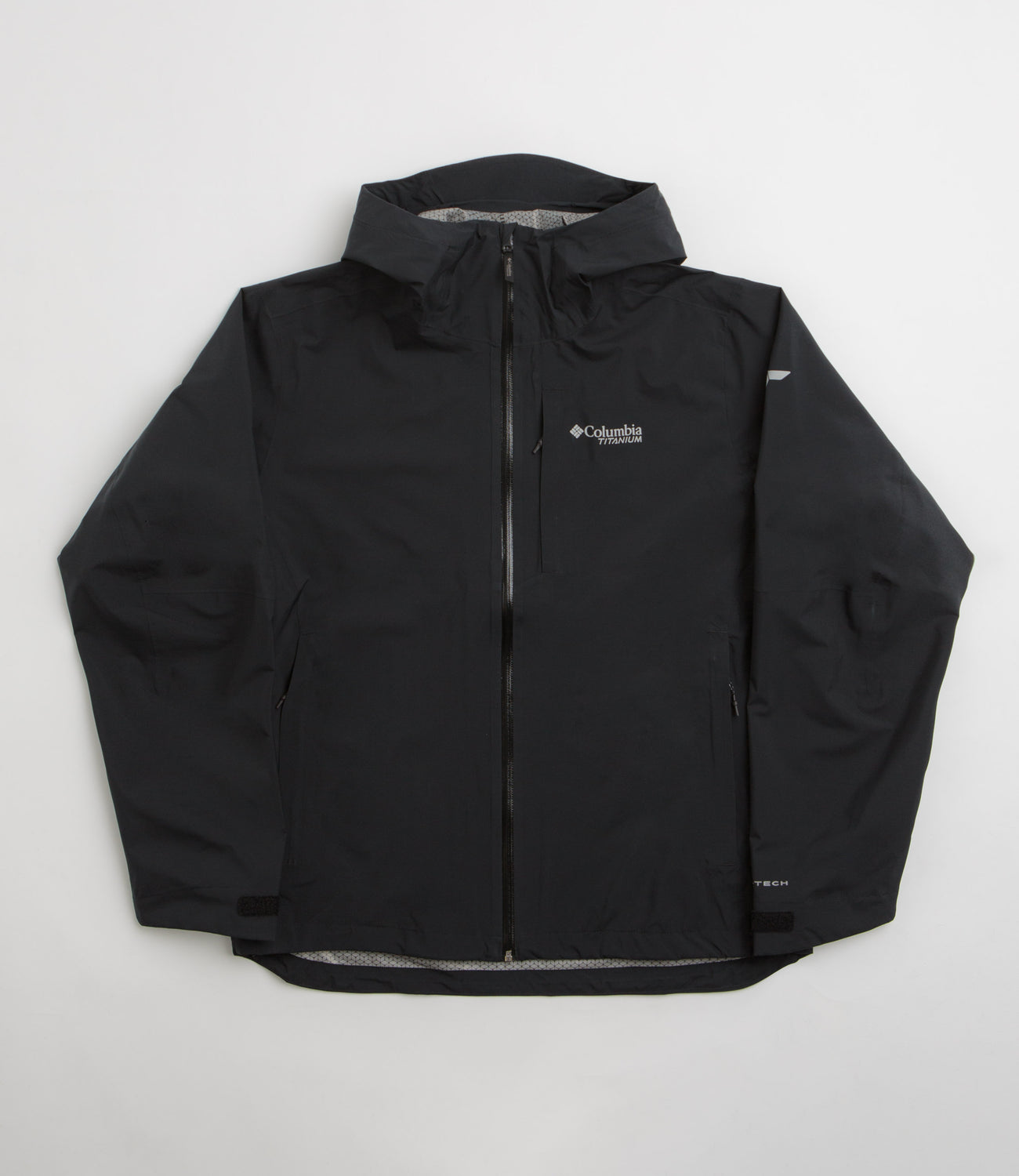 Built for whatever the outdoors throws at you, this Columbia Titanium Jacket is made from 100% recycled polyester with Omni-Tech™ sealed seams to keep you dry and comfortable. Designed with an adjustable hood, full-length zipper, integrated chin guard, and articulated sleeves, it moves with you on trails or city adventures alike. Black with zippered chest and side pockets, printed graphics, and adjustable cuffs and hem, it’s a jacket ready to take on rain, wind, or whatever your next adventure brings.