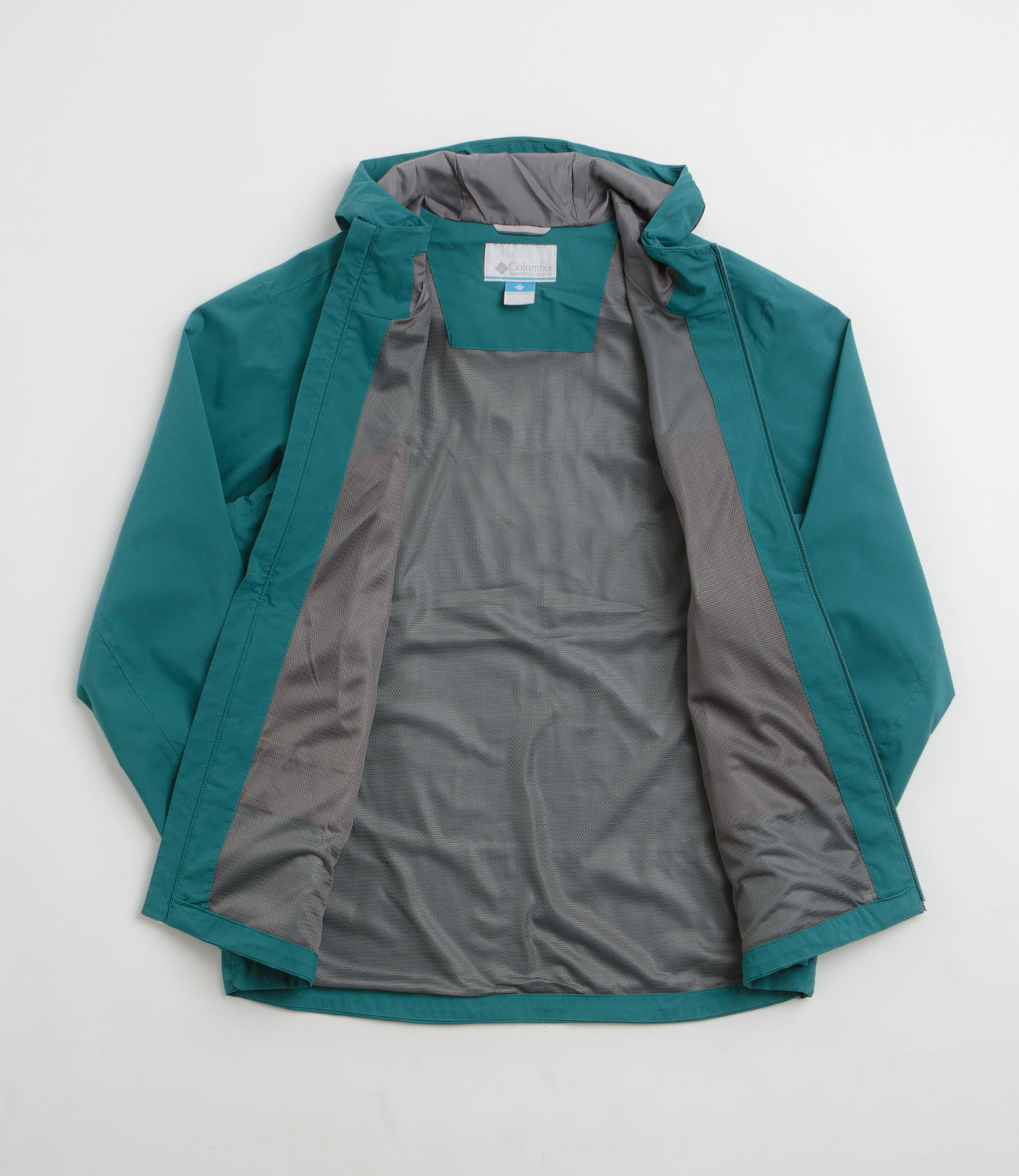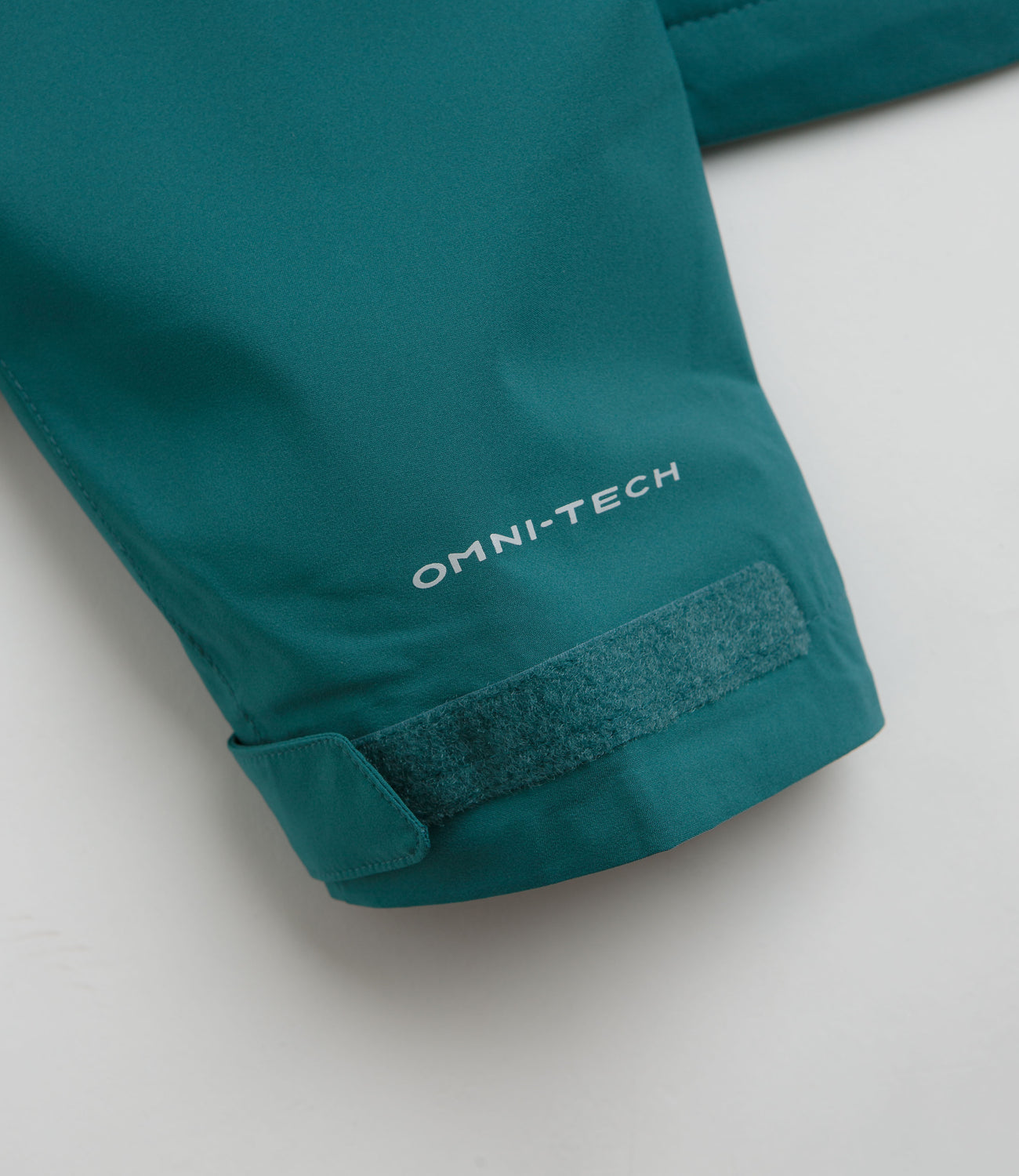 Columbia Boulder Falls Jacket in River Blue. Made from 100% recycled polyester with a mesh lined inner, this regular fitting Columbia jacket is designed with Omni-Tech™ Eco waterproofing. Featuring a full length zipper fastening, an adjustable hood and an integrated chin guard, this blue Columbia jacket is finished with a droptail hem, two side pockets, printed branding and an underarm ventilating system.