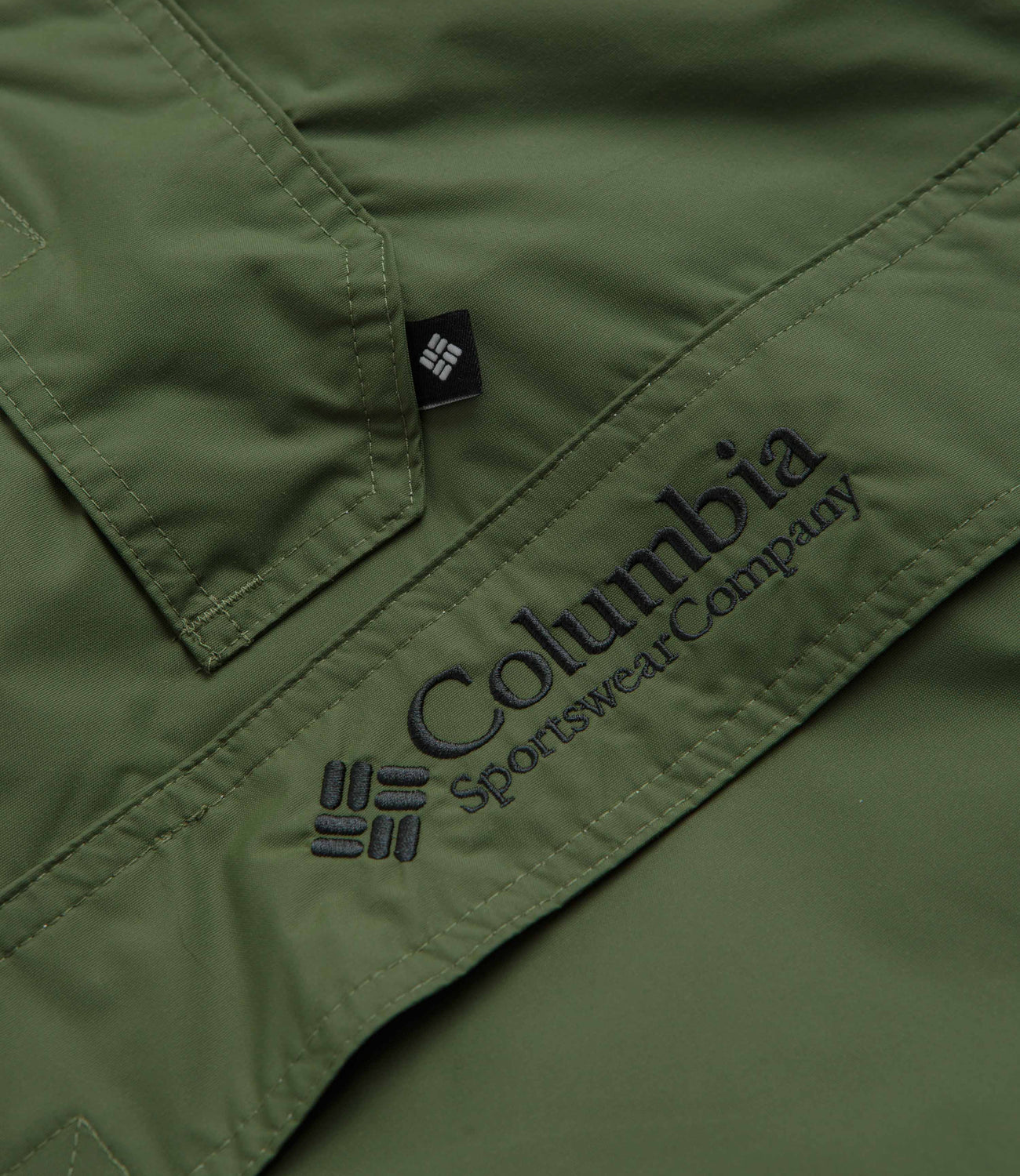 Columbia Challenger II Insulated Pullover Jacket in Canteen and Greenscape. Designed with a Hydra Cloth 3000 shell, this regular fitting Columbia jacket is styled with a lined inner and with Microtemp XF II insulation. Featuring a side-zip entry system, an adjustable hood, adjustable cuffs and a practical sleeve pocket, this green Columbia jacket is finished with two front pockets, a large central pocket and with embroidered logo branding.