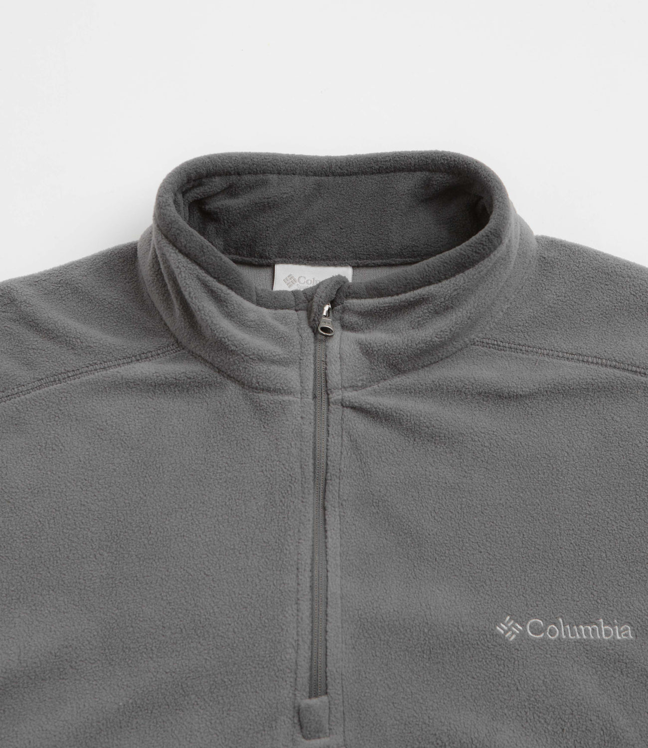 Columbia Klamath Range II 1/2 Zip Fleece in City Grey and Shark. Regular fitting and made from 100% polyester microfleece, this Columbia fleece is designed with half-length zipper fastening and contrast stitching. Finished in grey with panelled sides, shoulder panels and embroidered branding.