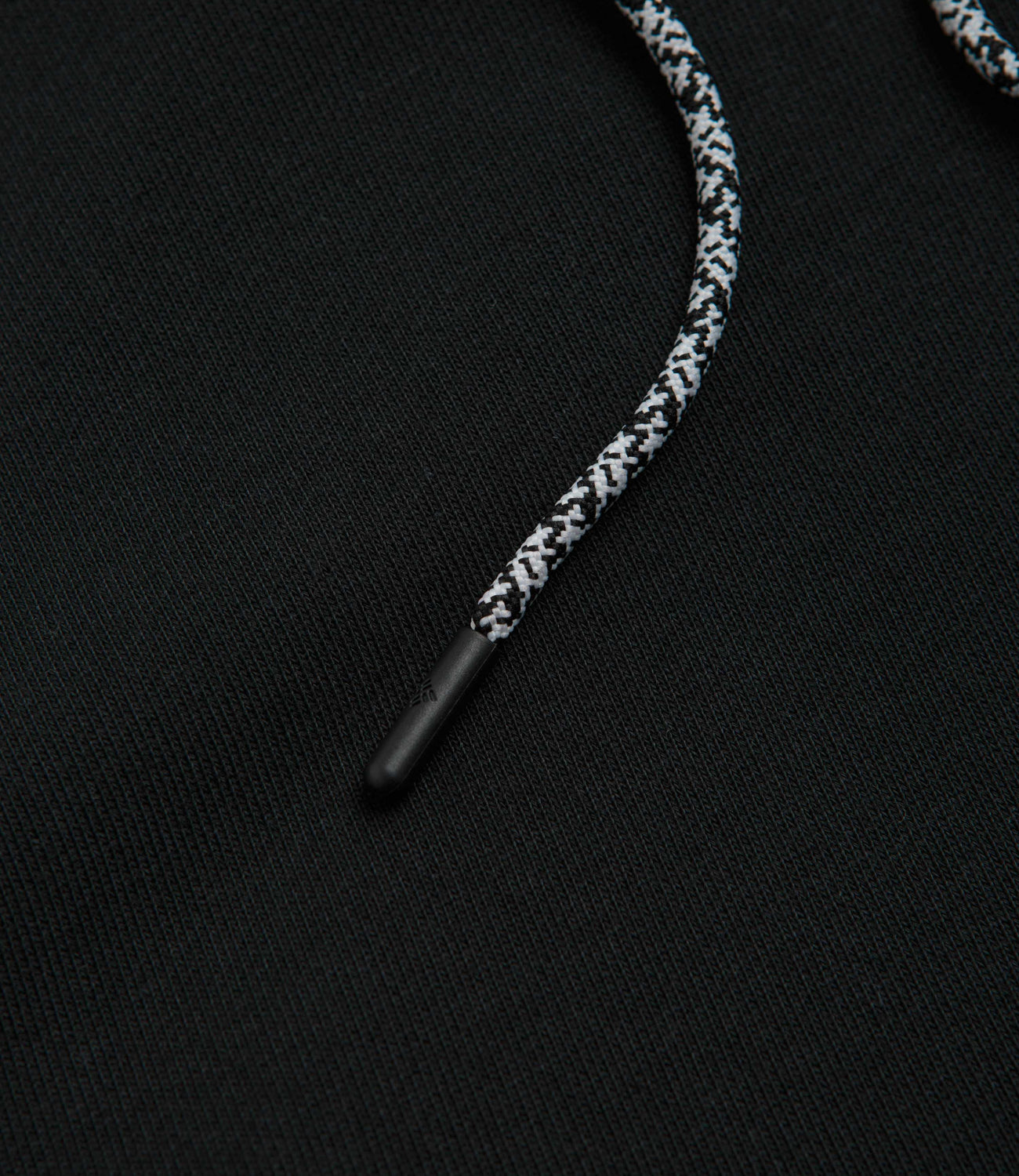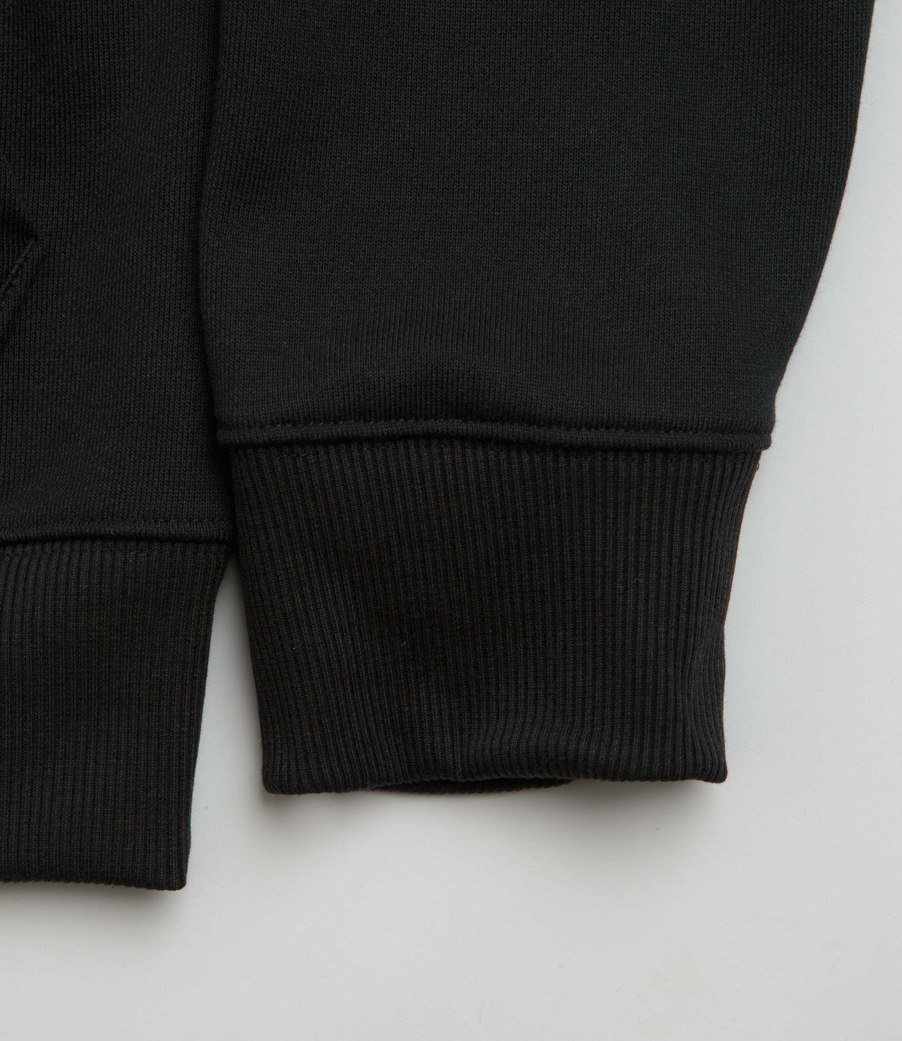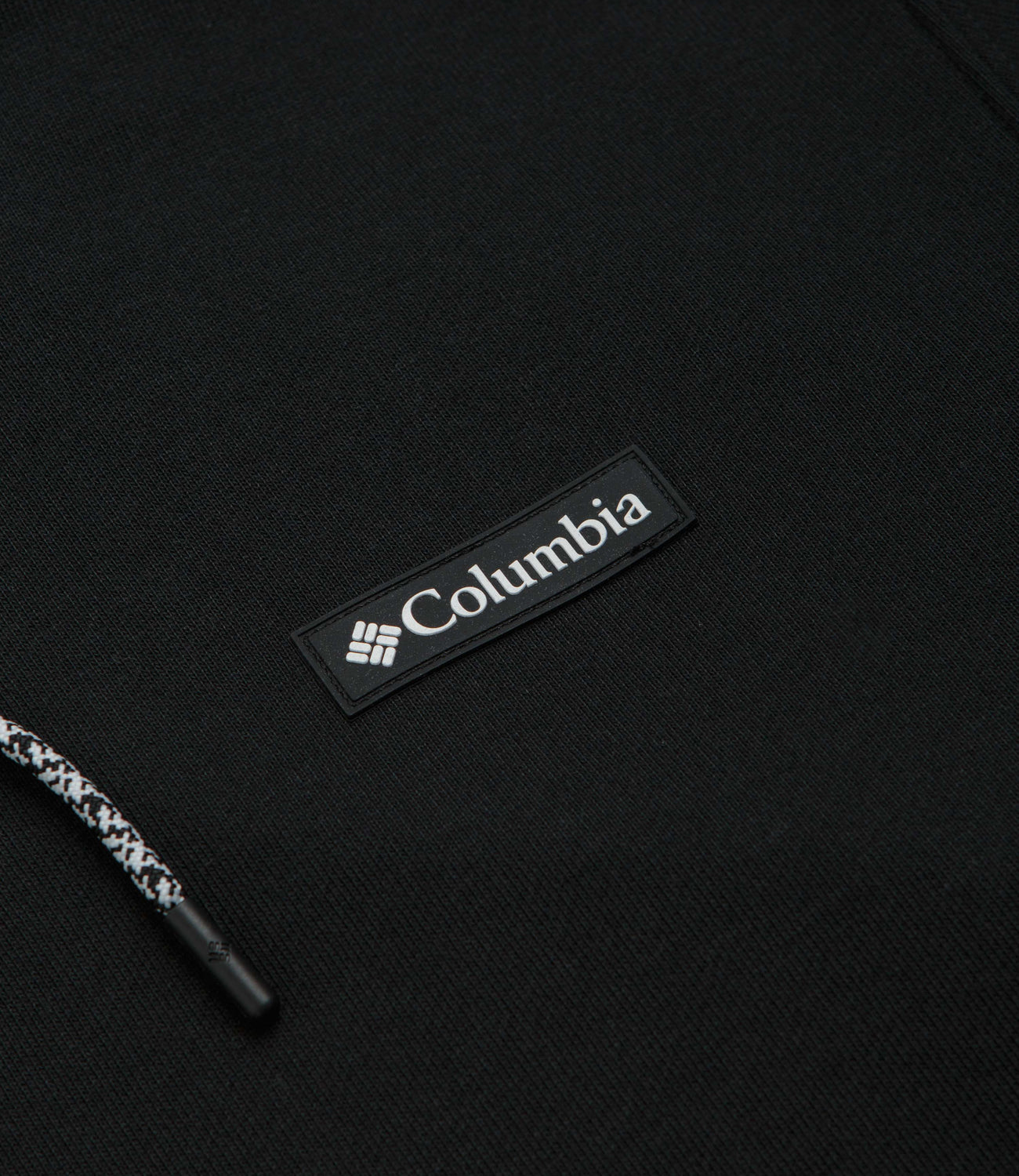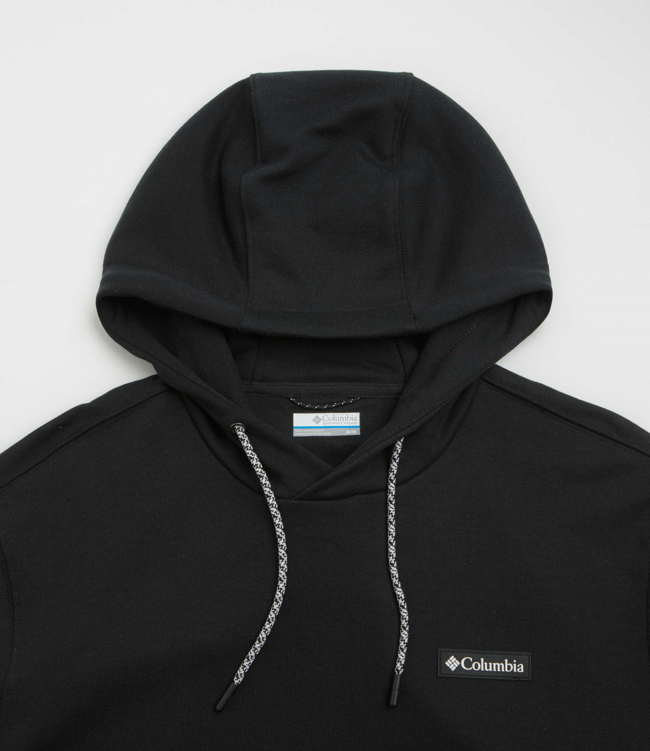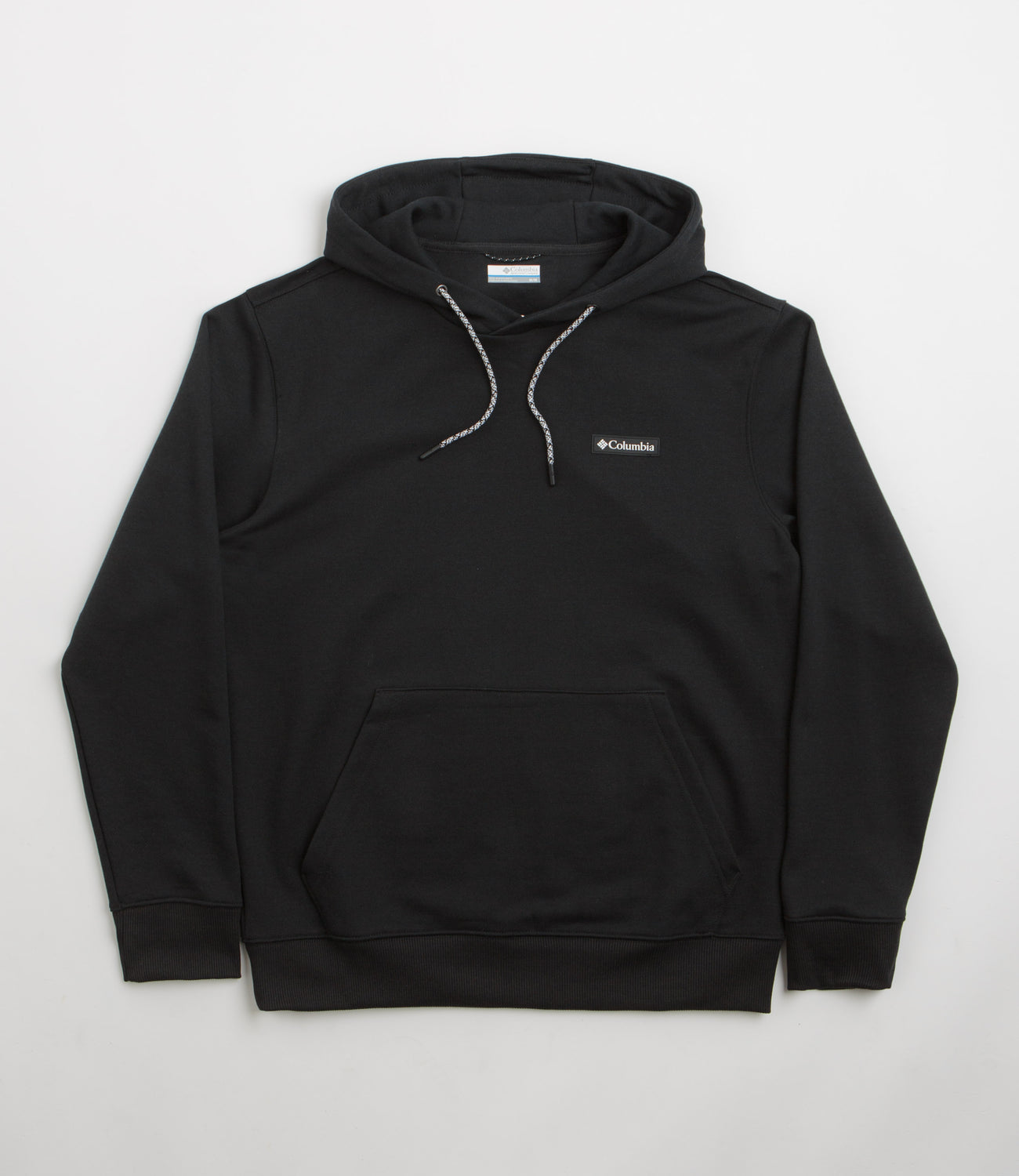 Columbia Marble Canyon Hoodie in Black. Regular fitting and made from a polyester-cotton blend, this block tone Columbia hoodie is designed with an adjustable drawstring hood. Finished in black with a kangaroo front pocket, printed logos, ribbed cuffs and a woven elastic hem.