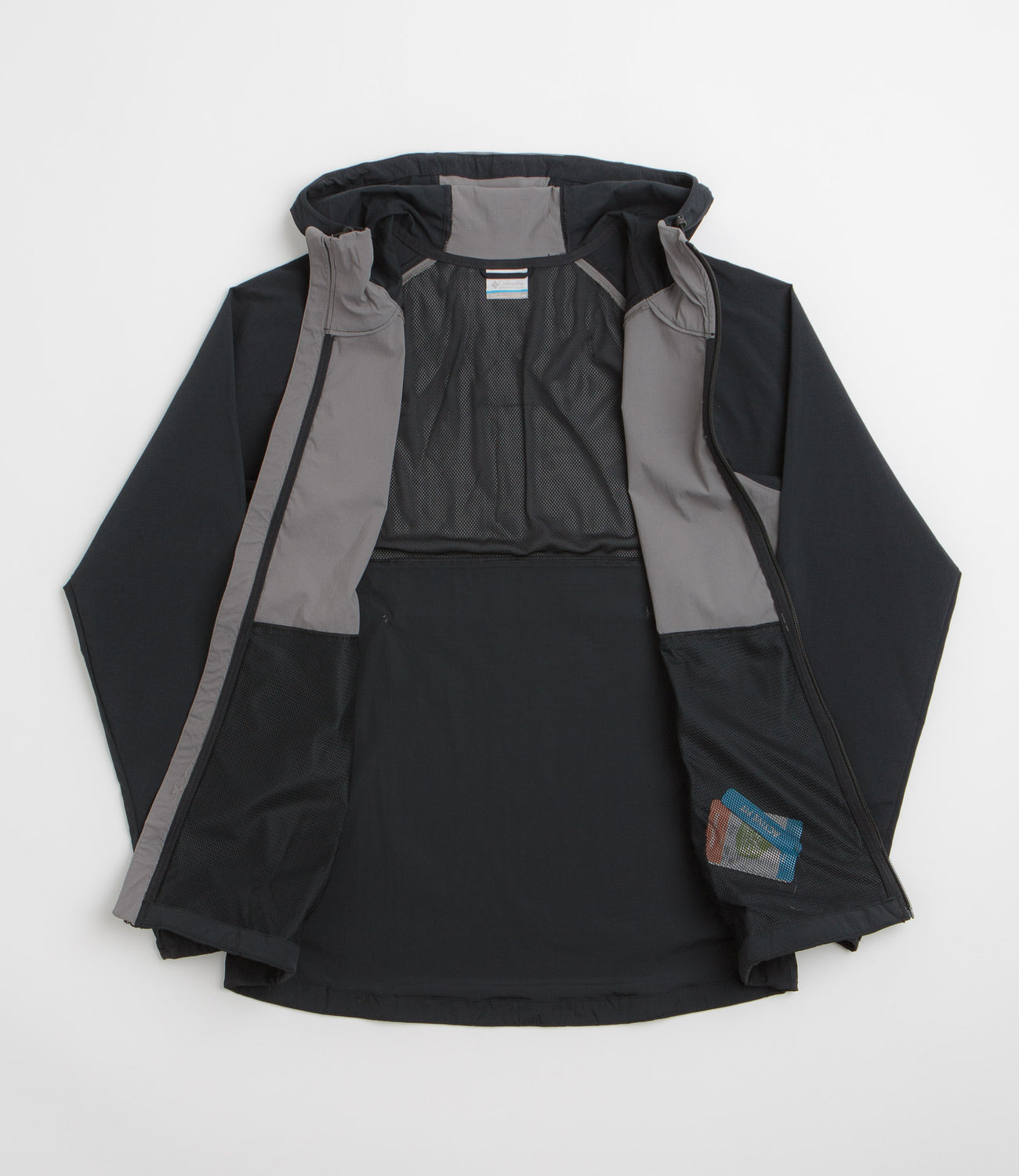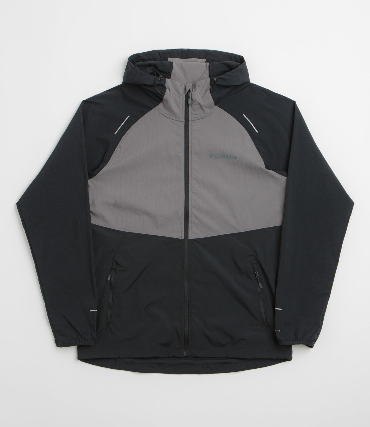 Built for movement in shifting conditions, this Columbia jacket comes in a black and grey colourway and is made from a stretch nylon blend with Omni-SHIELD™ advanced repellency for lightweight protection. The adjustable hood and integrated chin guard offer extra coverage, while rear ventilation helps regulate temperature on the move. Complete with a full-length zipper, two front pockets, reflective branding, and elasticated cuffs, it’s a versatile outer layer for everyday wear and outdoor use alike.