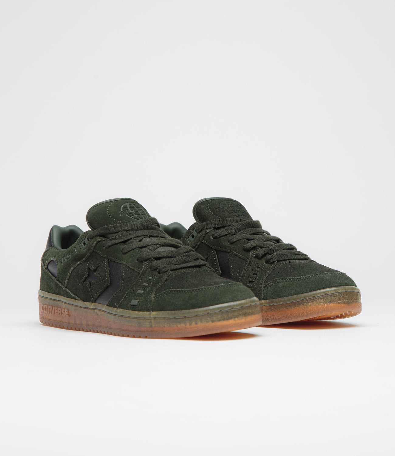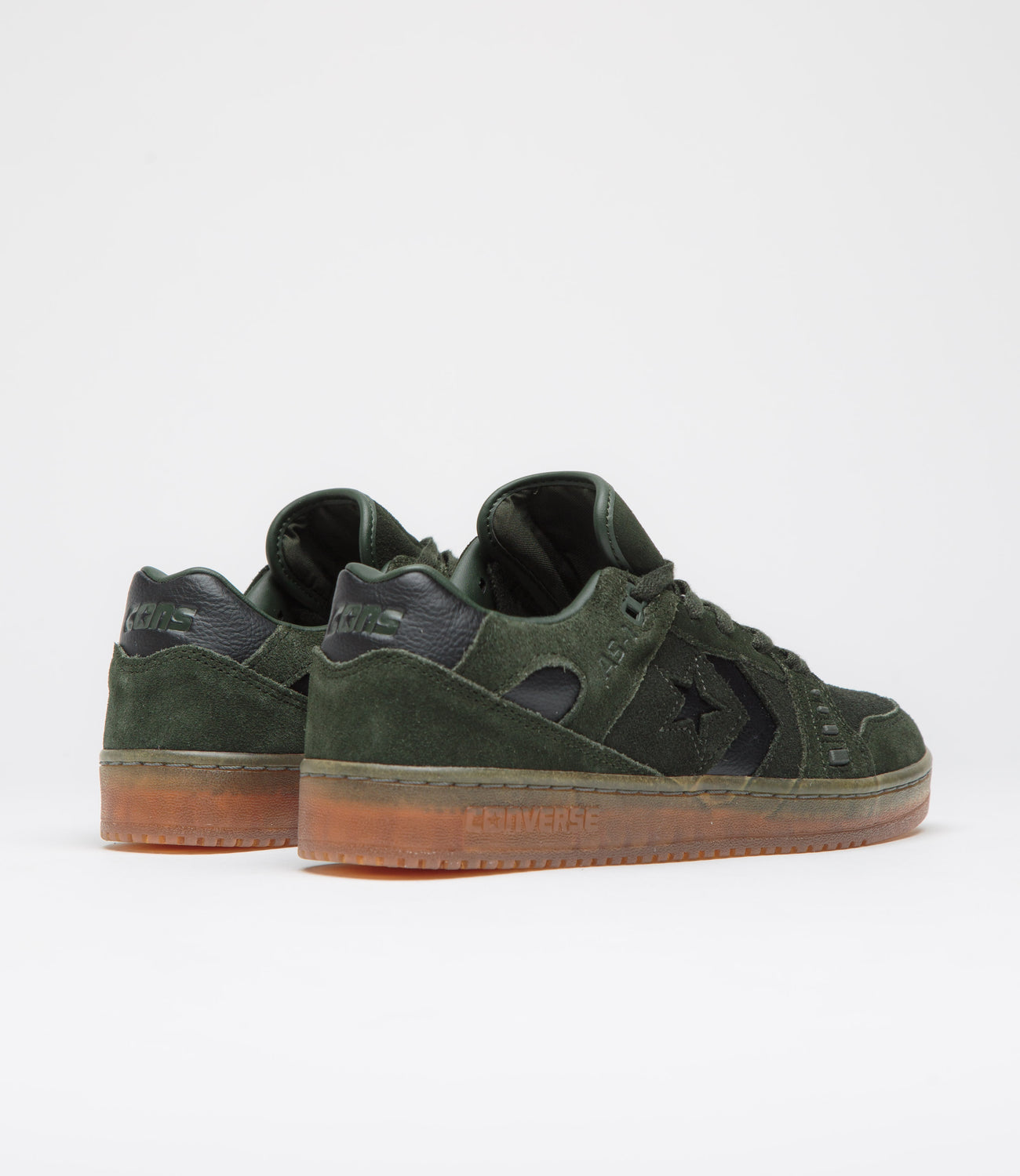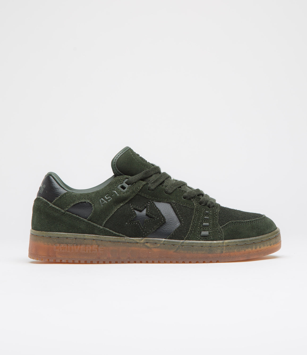 Converse AS-1 Pro Ox Shoes in Green Onyx, Dense Canopy and Black. Skater Alexis Sablone’s pro model, this Converse AS-1 Pro Ox is designed with suede uppers and contrasting black leather underlays. Featuring engineered GRASSHOPPER coring, a perforated forefoot and a CX foam sockliner, this dark green Converse AS-1 Pro Ox also features a full length cupsole stitch. Finished with rubber pod details, a translucent gum outsole, Chevron-Star side walls and embossed AS-1 detailing.