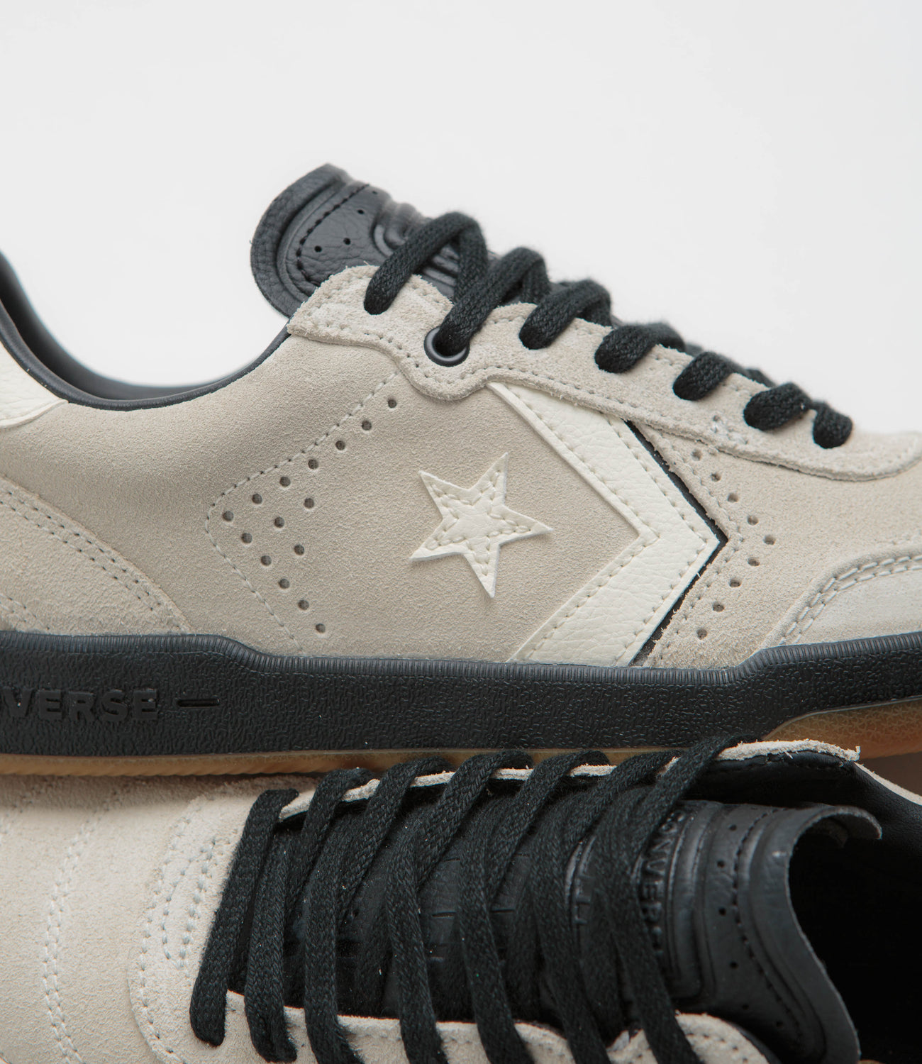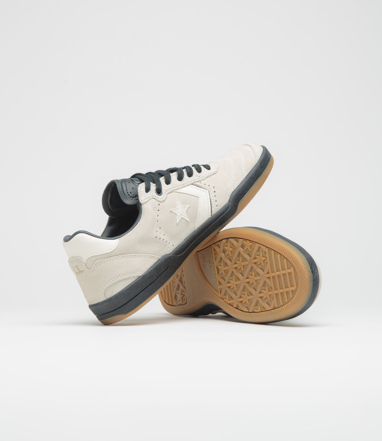 Converse Cons Louie Lopez Pro 2 Shoes in Egret, Black and Gum. The skater’s second pro model, this Converse Cons Louie Lopez Pro 2 features a rubber-backed suede upper with layered toe box stitching. Featuring contrasting Chevron Star midfoot details, an embossed leather tongue, CX foam support and a vulcanised construction, this beige Converse Louie Lopez Pro 2 is finished with a leather heel and a CONS traction rubber outsole.
