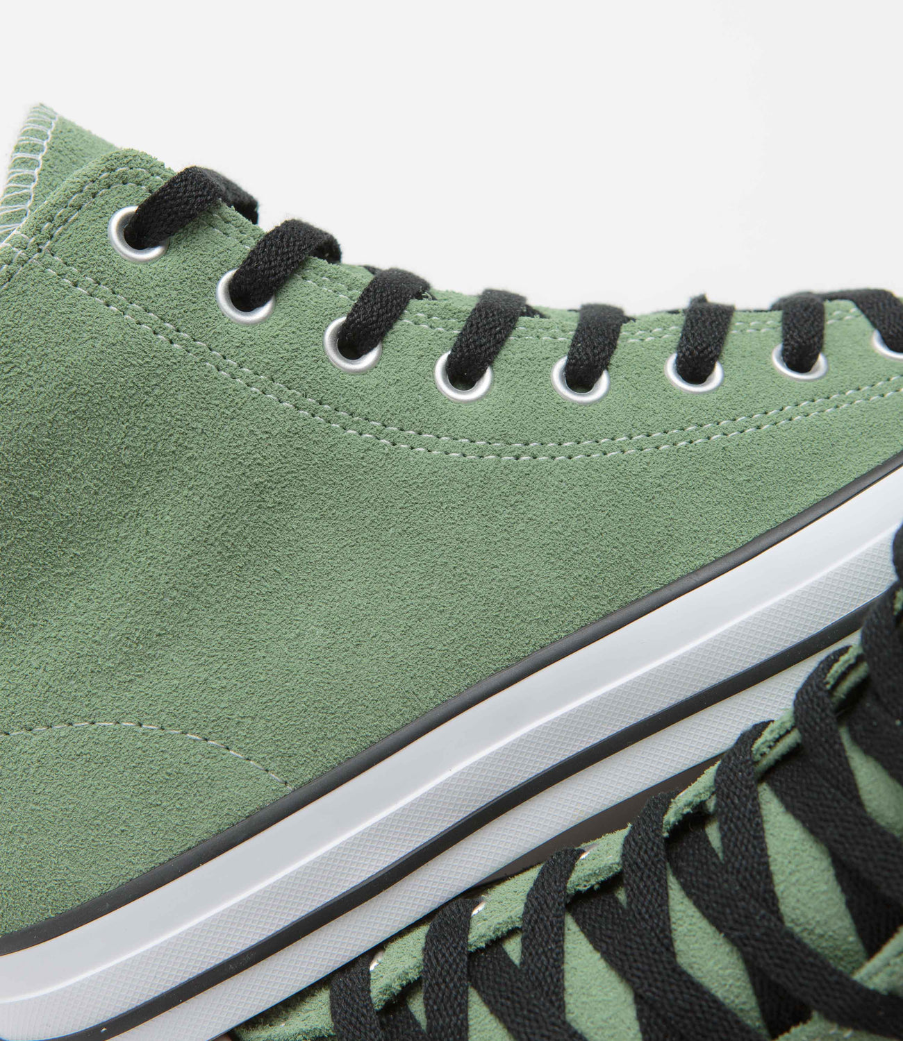 Drawing on archive style, the Converse CTAS Pro Hi brings a classic high-top silhouette with a rubber-backed suede upper built for skating. A rubber toe cap, contrast stitching, and metal ventilation eyelets keep it functional and durable, while a vulcanised gum rubber outsole and CONS traction provide reliable grip on the board. Finished in green with a CX foam sockliner and leather All Star ankle patch, it’s a skate-ready classic for sessions on and off the board.