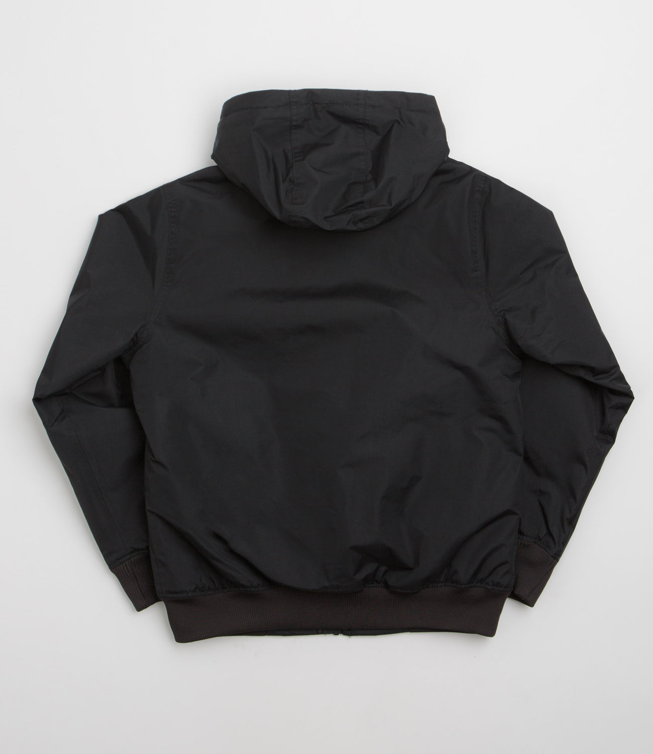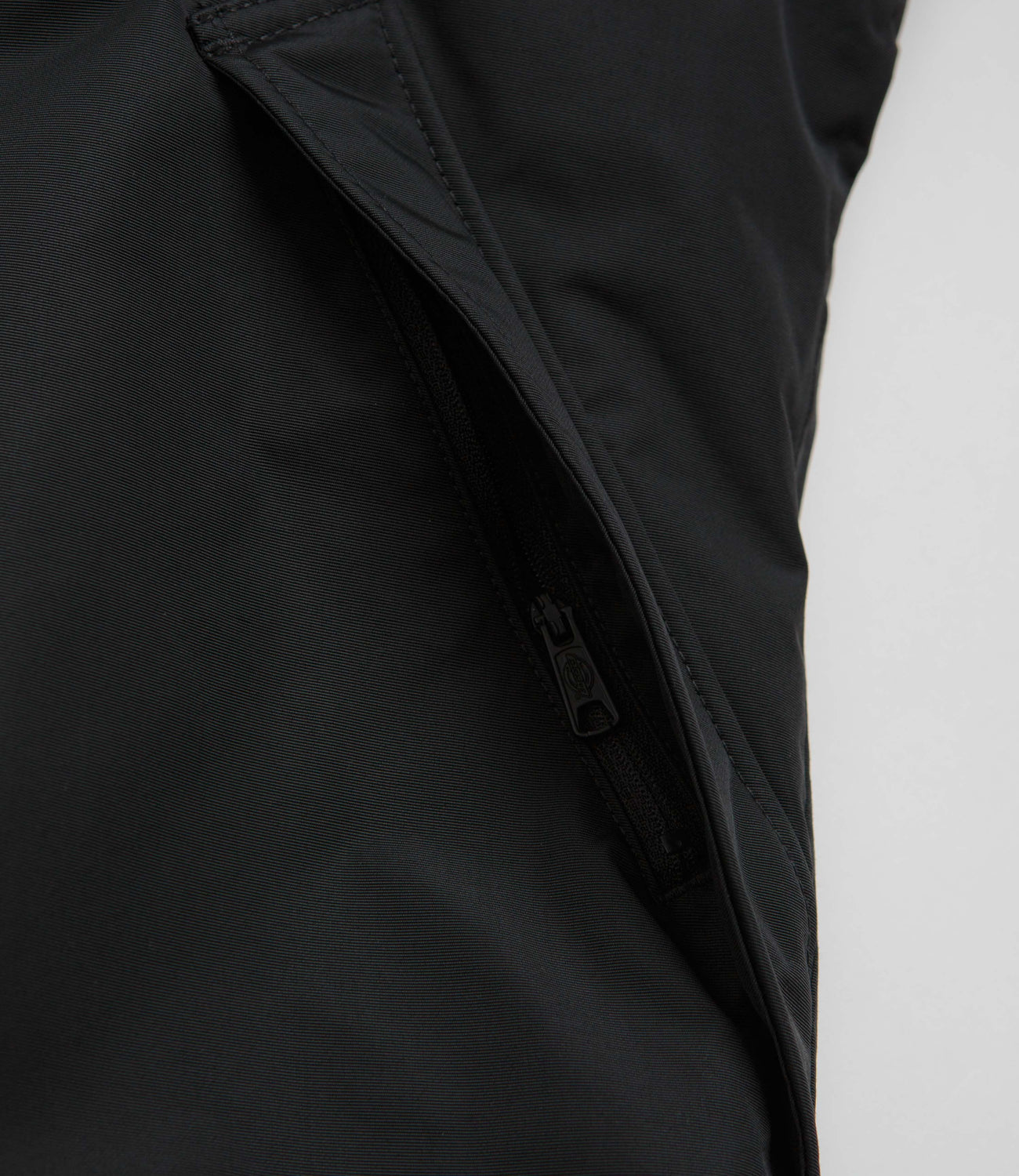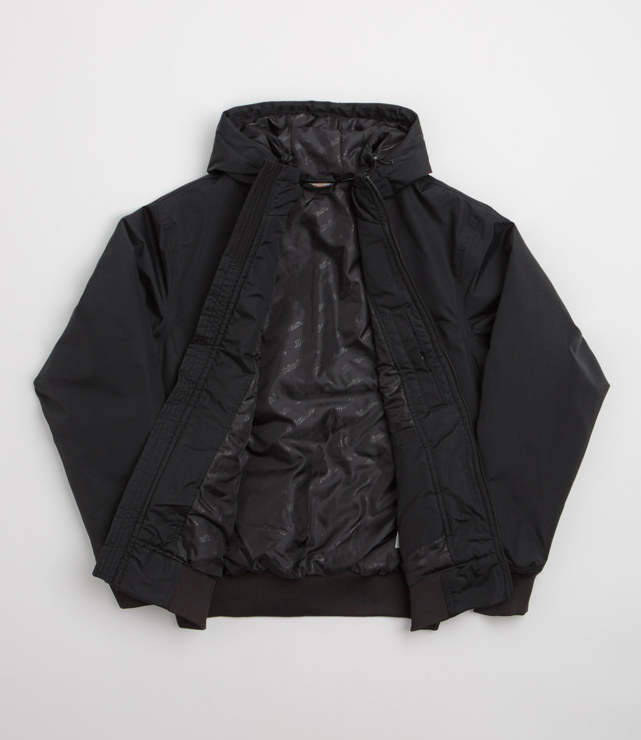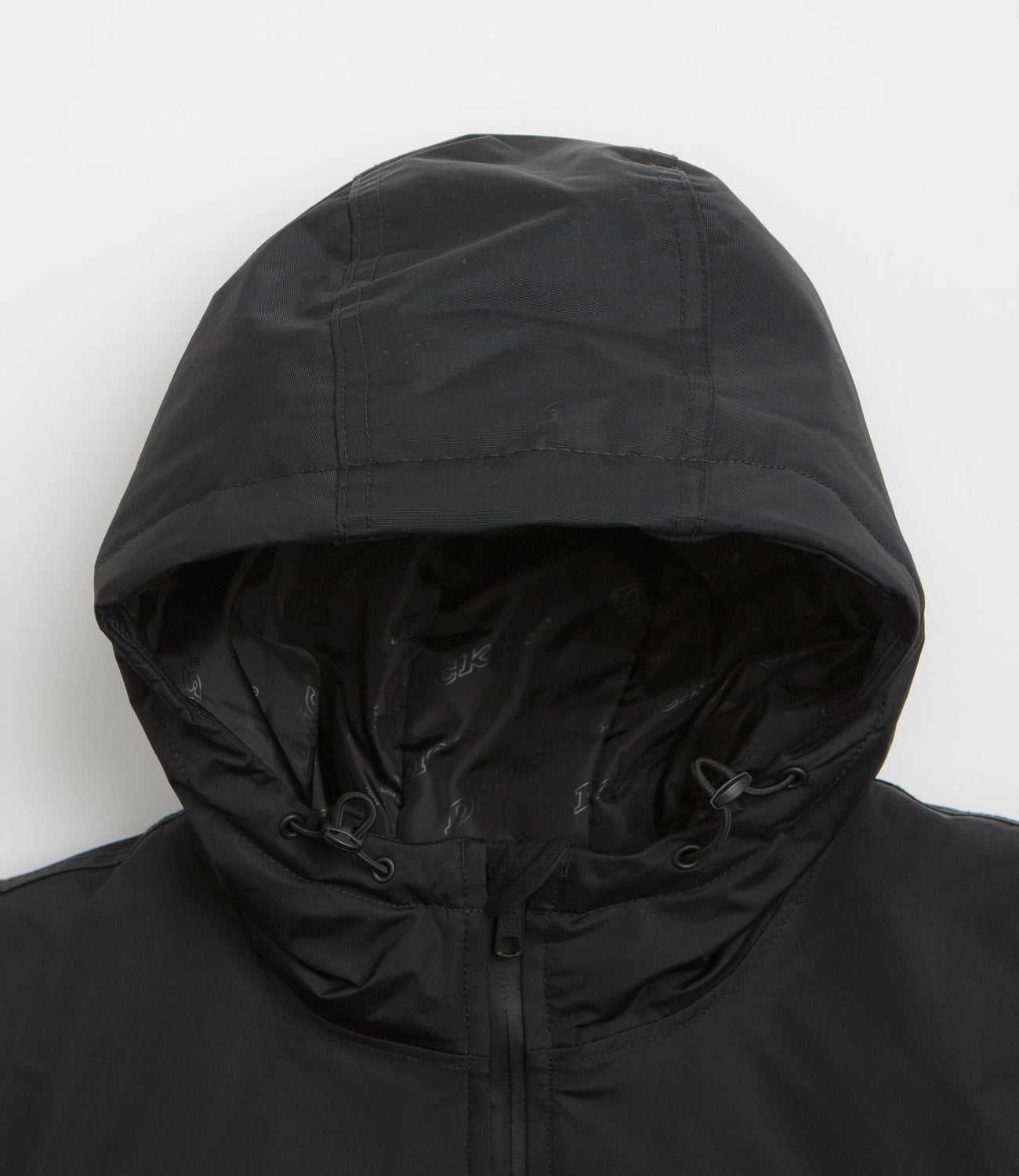Dickies New Sarpy Jacket in Black. Regular fitting and made from 100% polyamide, this water-resistant Dickies jacket is designed with an adjustable toggle-cord hood and a full length zipper fastening. Finished in black with ribbed cuffs, a woven elastic rib knit hem, two front pockets and woven flag label branding.