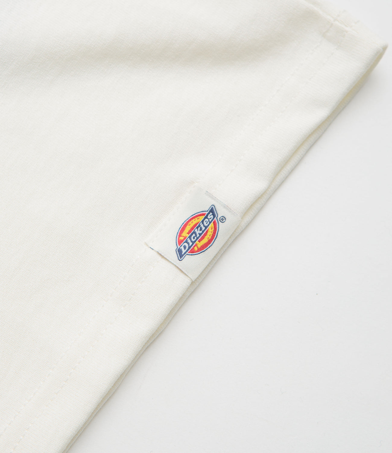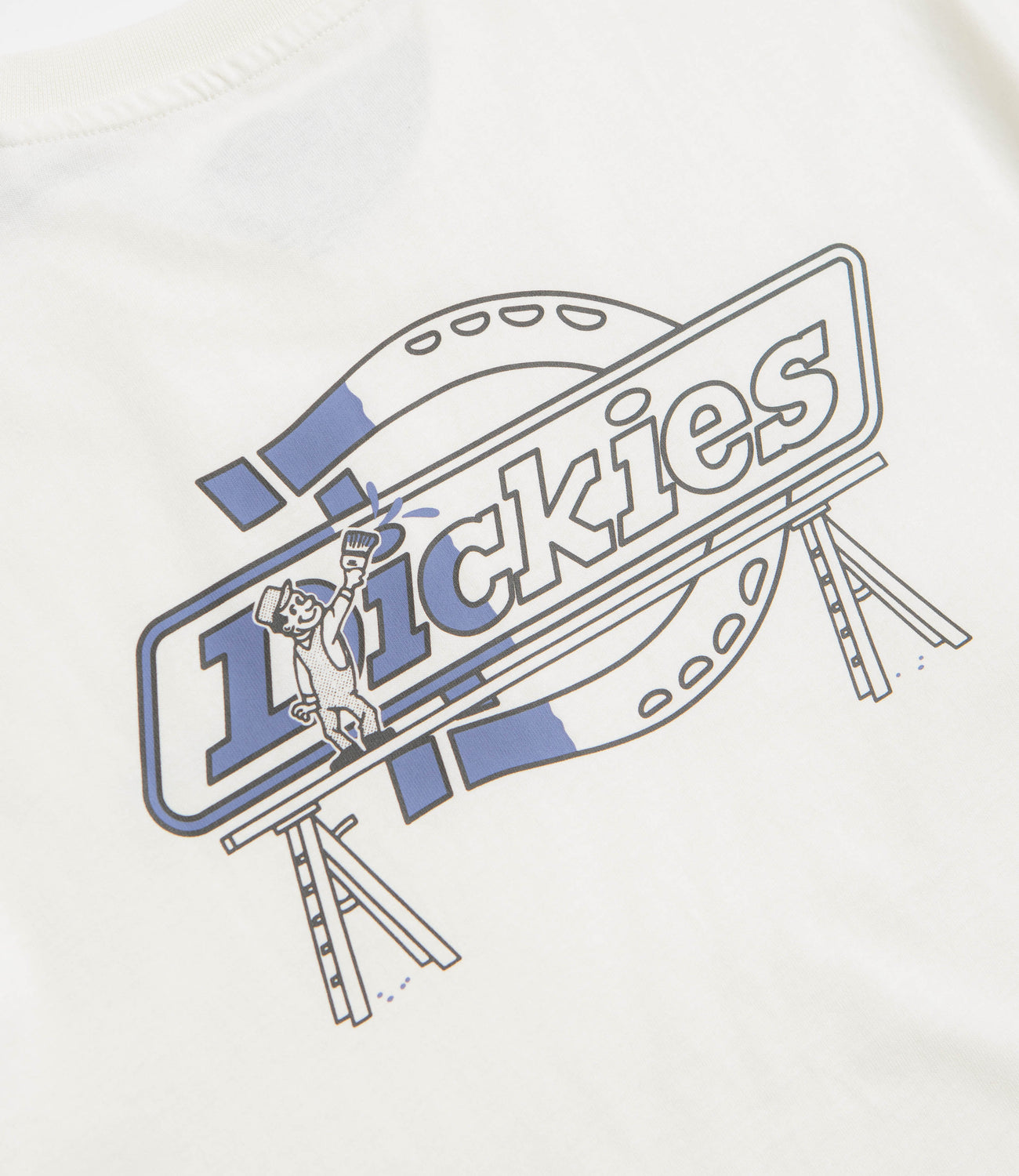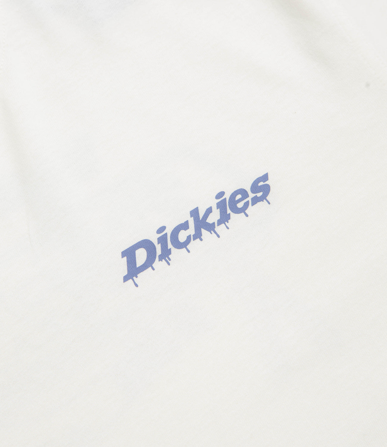 Dickies Statesville T-Shirt in Egret. Relaxed fitting, this Dickies t-shirt is designed with a classic crew collar and a flag labelled hem. Made from 100% cotton and finished in white with screen printed front and rear graphics.