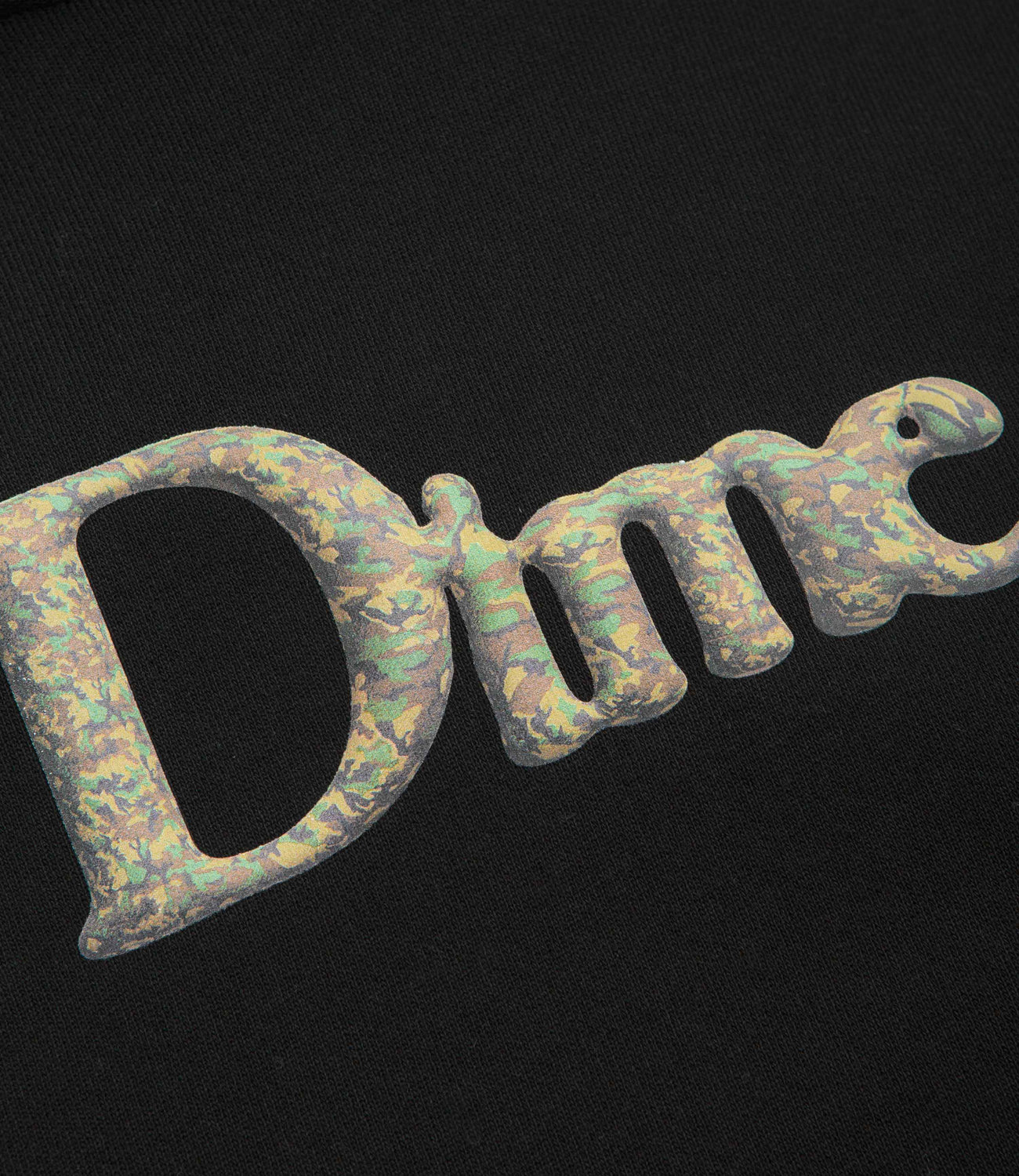 Dime Classic Decoy Hoodie in Black. Regular fitting and made from 100% heavyweight cotton, this block tone Dime hoodie is designed with a split panel hood. Featuring a kangaroo front pocket and ribbed cuffs, this black Dime hoodie is finished with a puff print Dime graphic.