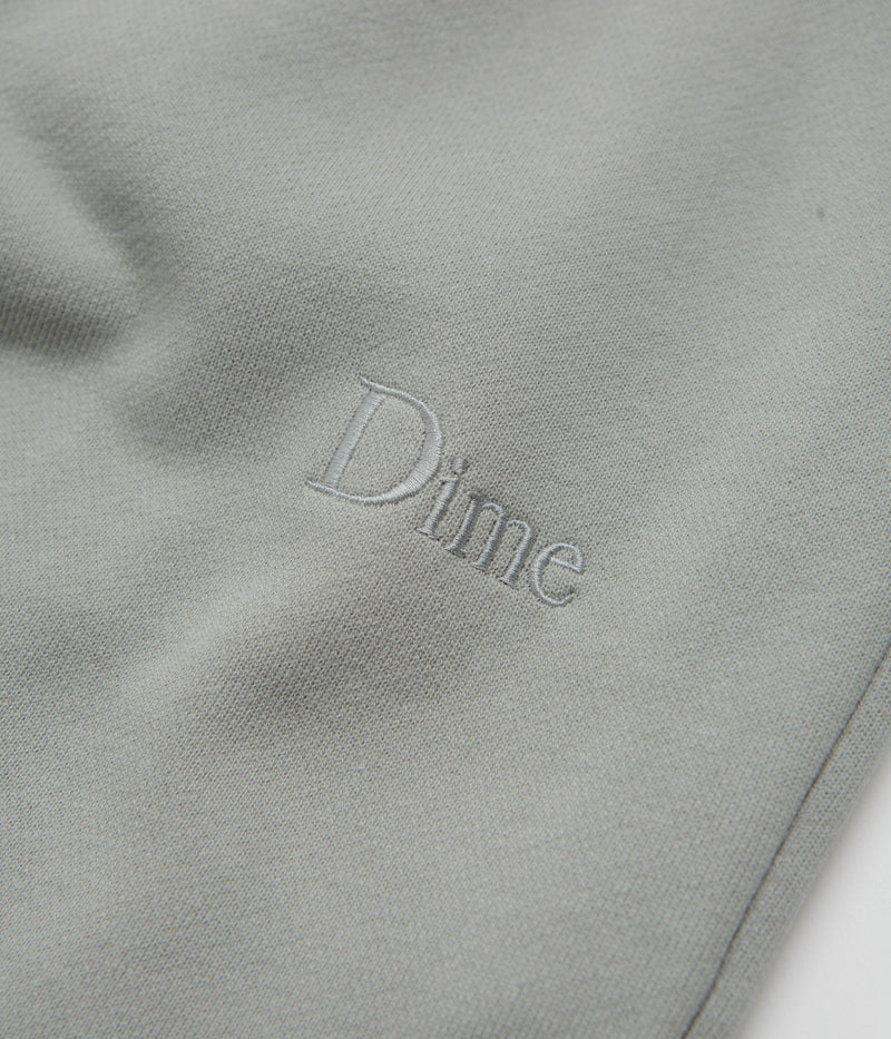 Dime Classic Small Logo Sweatpants in Gravel. Designed with ribbed cuffs, these relaxed fitting Dime sweatpants are made from 100% heavyweight cotton. Featuring an elasticated drawstring waist, these khaki grey Dime sweatpants are finished with two side pockets, a single rear pocket and embroidered logos.
