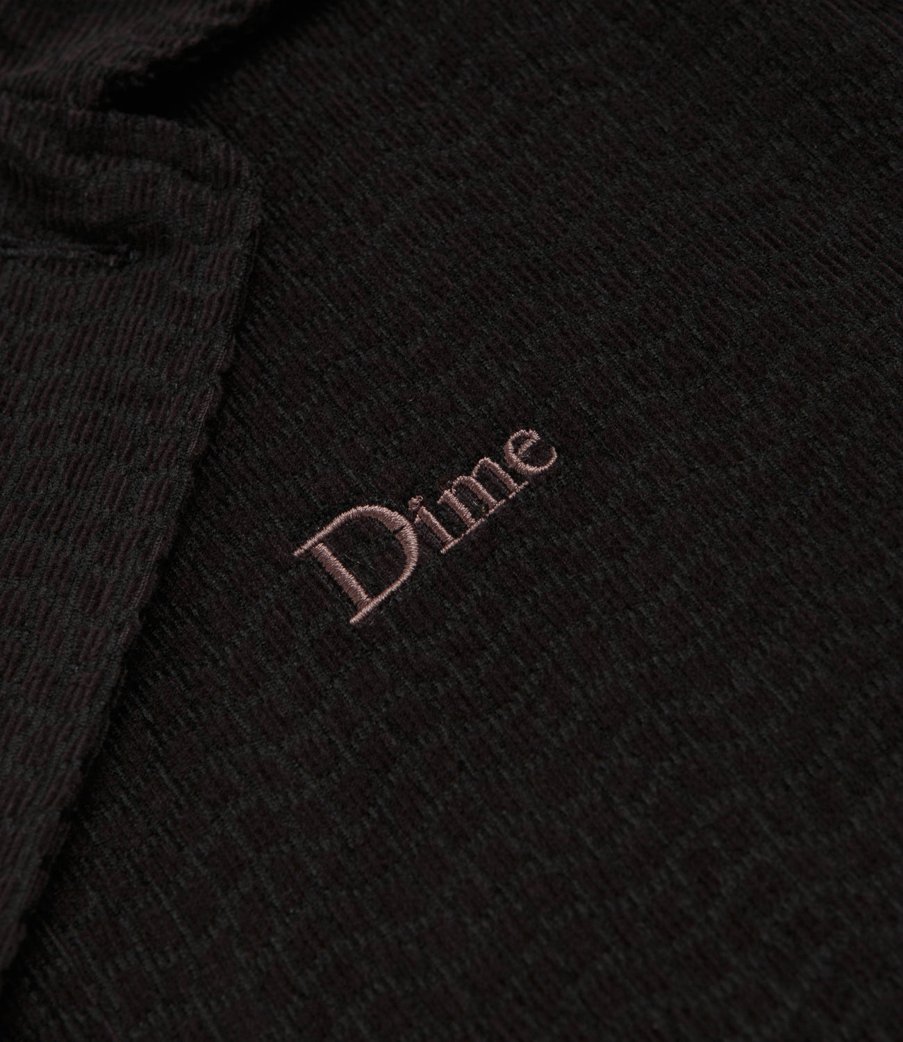 Dime Printed Cord Jacket in Black. Workwear inspired and tailored to a regular fitting, this corduroy Dime jacket is lined and styled with a full length button fastening. Featuring folded cuff closures and with printed corduroy details, this black Dime jacket is finished with two front pockets, a concealed hand pocket and with embroidered logo branding.