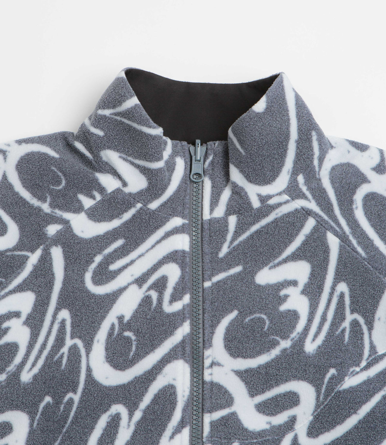 - Reversible polar fleece with patterned and block-tone sides