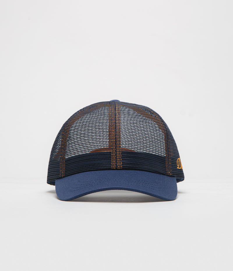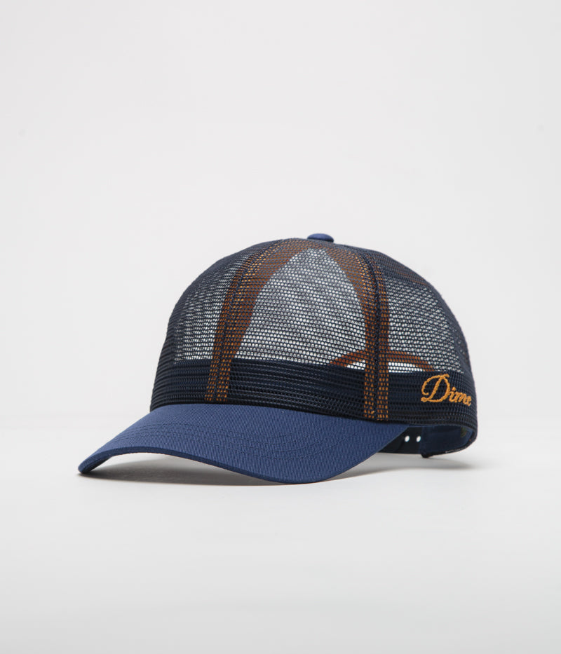 Dime Supermesh Low Pro Cap in Navy. Single sized with a block tone curved peak, this Dime cap is made from 100% polyester with mesh panels. Featuring an adjustable snapback fastening, this navy Dime cap is finished with embroidered branding.