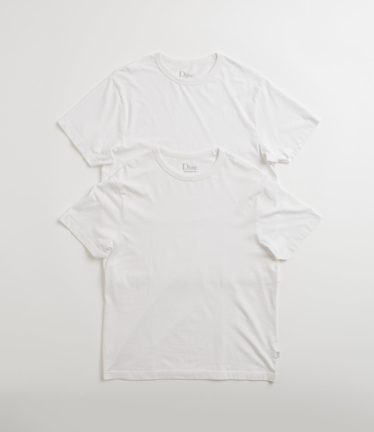Dime T-Shirts 2 Pack in White. Available as a pack of two, these regular fitting Dime t-shirts are made from a cotton-spandex blend. Featuring a classic crew collar, straight cut hem and tonal stitched seams, these white Dime t-shirts are finished with woven flag label branding.