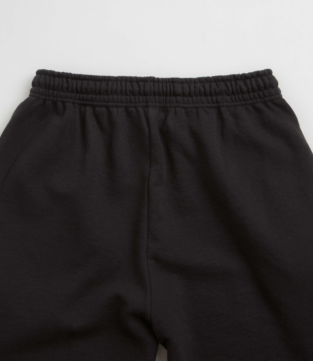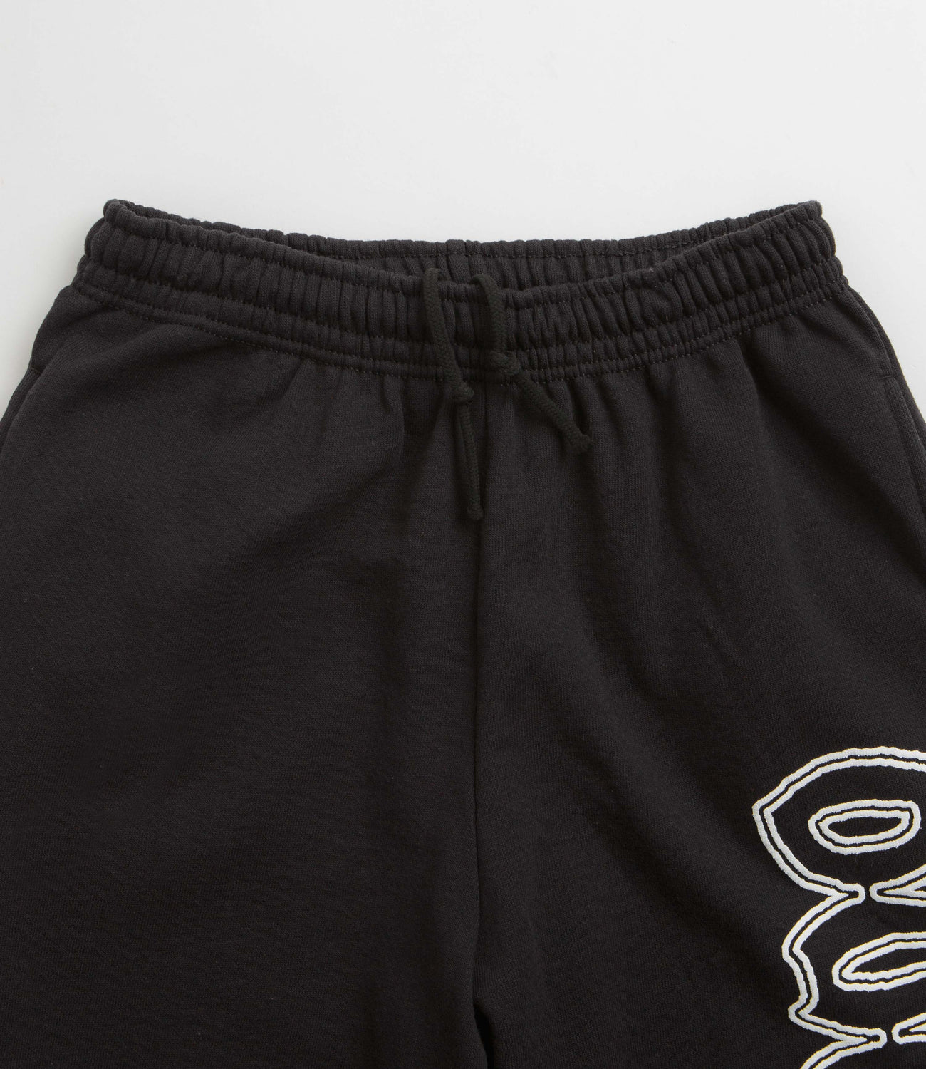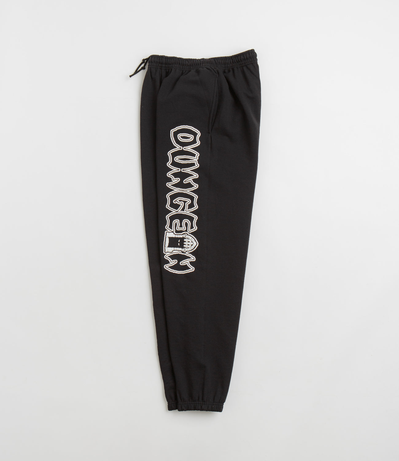 Dungeon Logo Joggers in Black. Regular fitting with a tapered leg cut, these Dungeon joggers are made from 100% cotton. Featuring an elasticated waistband, two side pockets and ribbed cuffs, these black Dungeon sweatpants are finished with left leg branding.