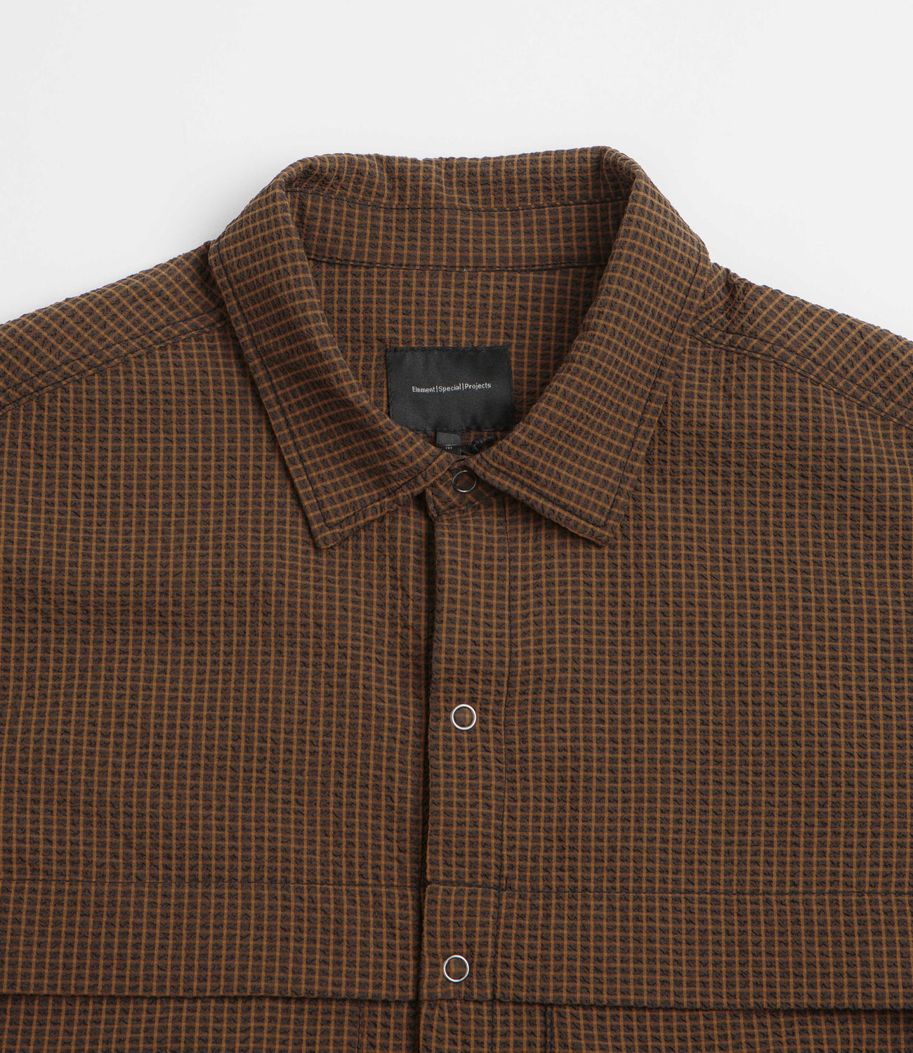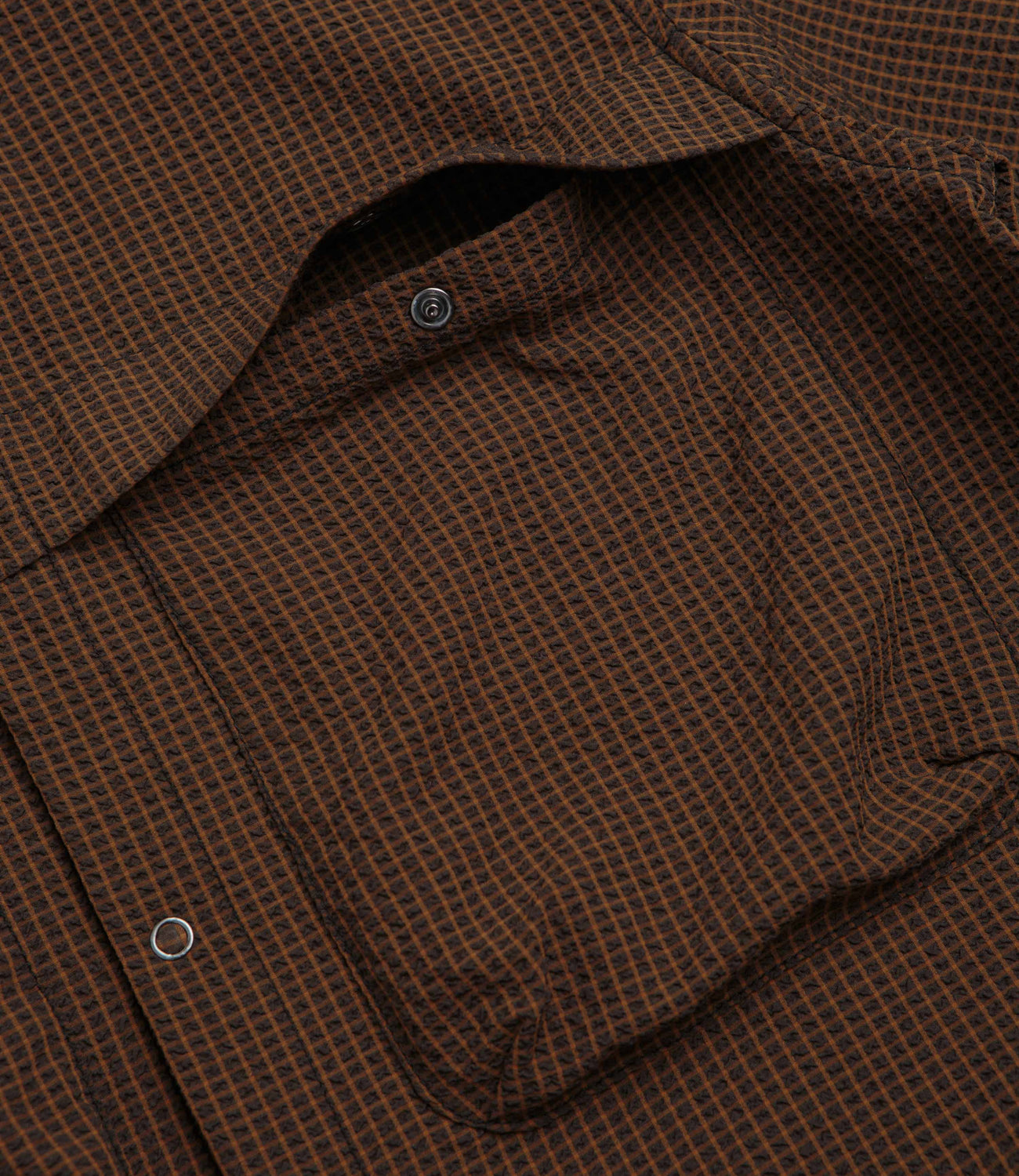 Built for easy movement, this loose-fit short sleeve shirt combines recycled and bio-based fibres for lightweight, breathable wear. A stand collar and full-length snap fastening keep it classic, while side-slit seams and a central back pleat give extra room for movement. Finished with two chest pockets, a dropped hem, and a woven label.