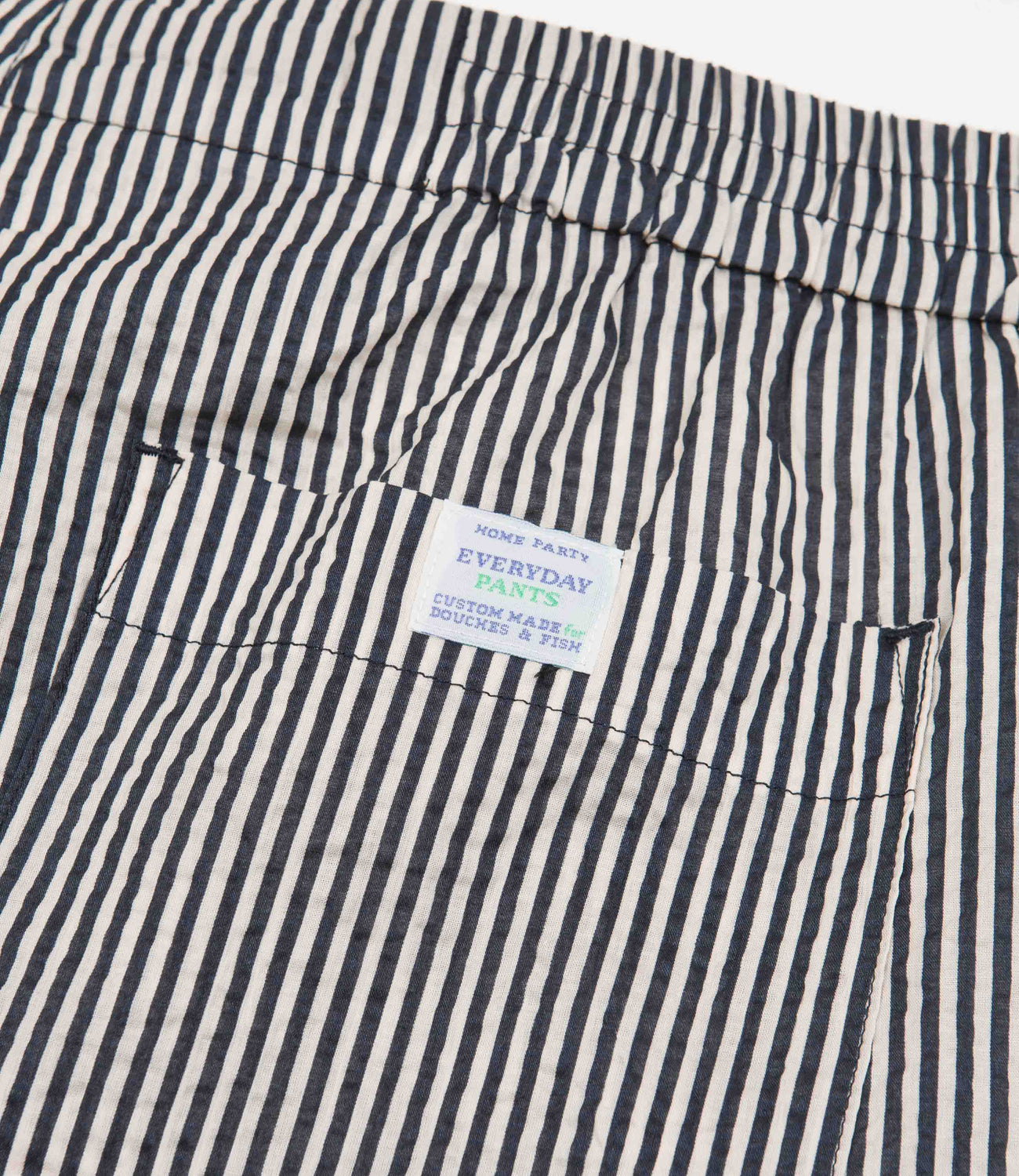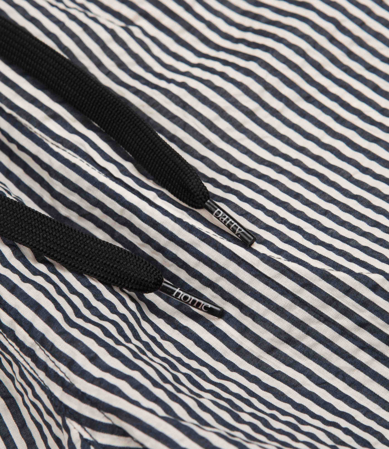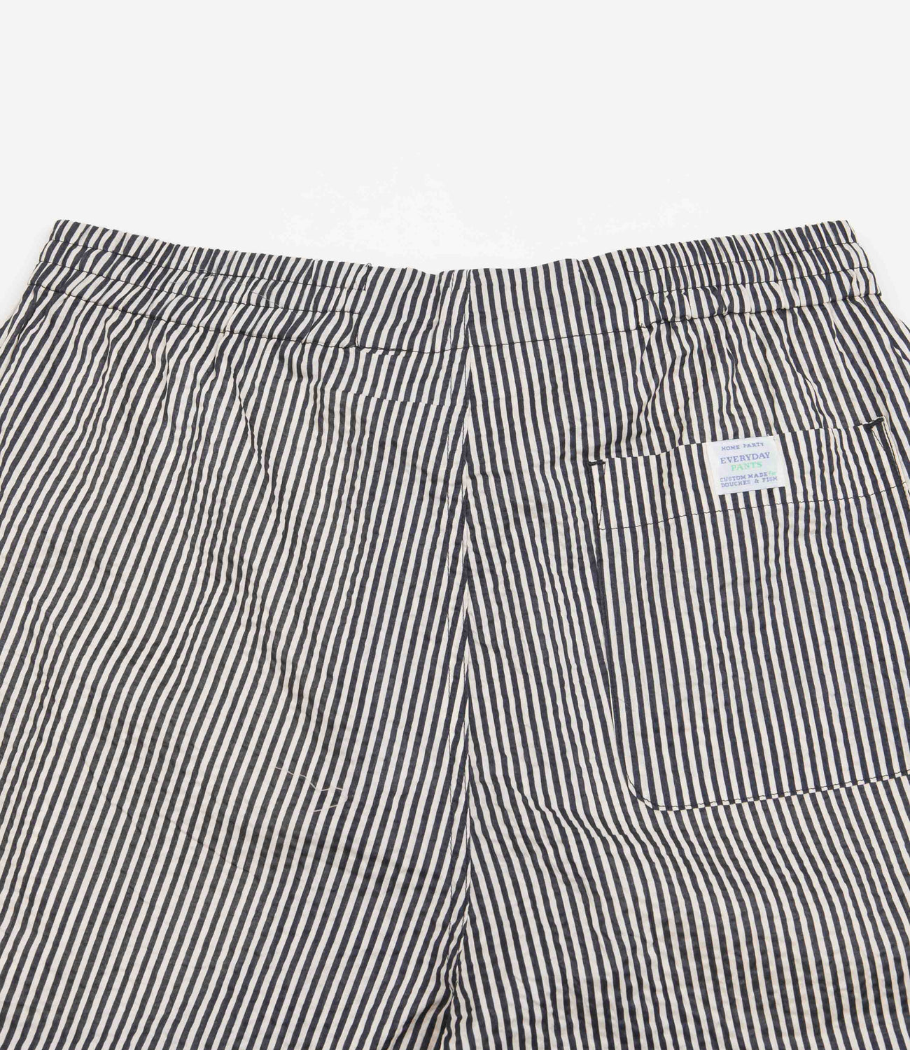 Garbstore Home Party Shorts in Stripe. Crafted from 100% Japanese cotton ‘Miracle Wave’ fabric with an above-knee cut, these loose fitting Garbstore shirts arrive as part of the brand’s latest collection. Vintage inspired with an 8” inside leg, a drawcord elasticated waist and a textured fabrication, these striped Garbstore shorts are finished with two side pockets, a rear pocket and with a concealed inner stash pocket.