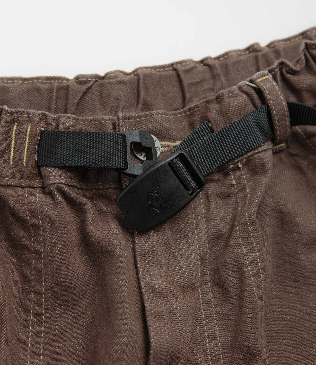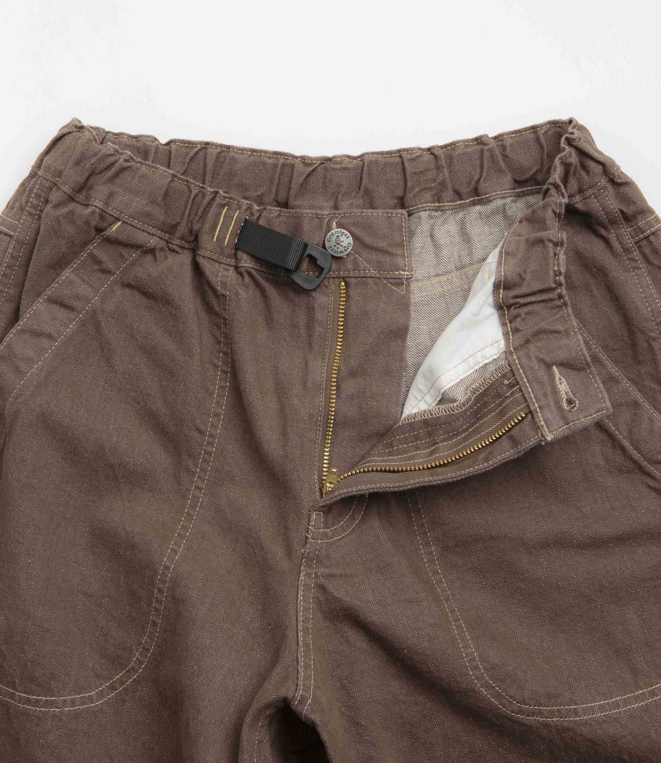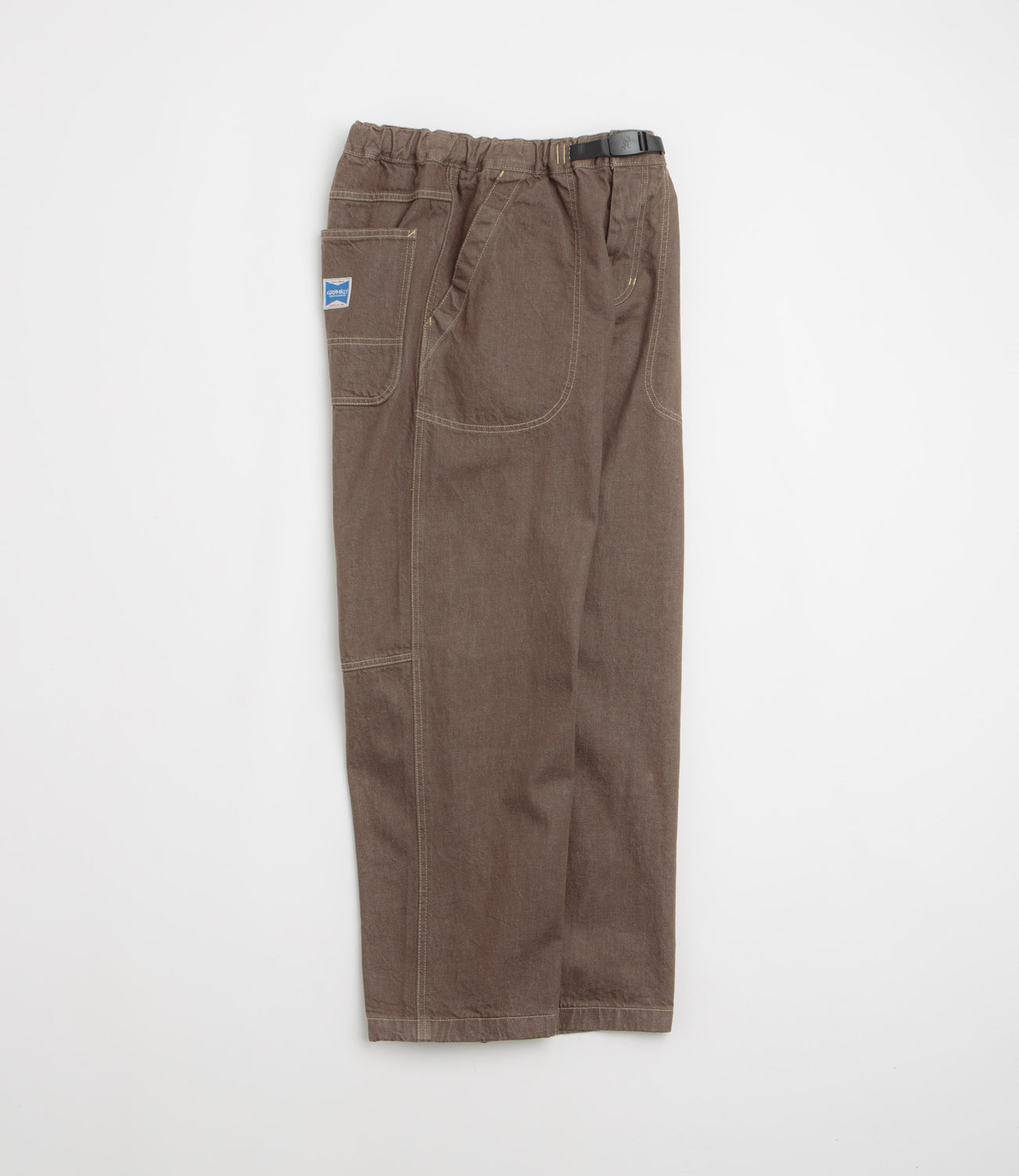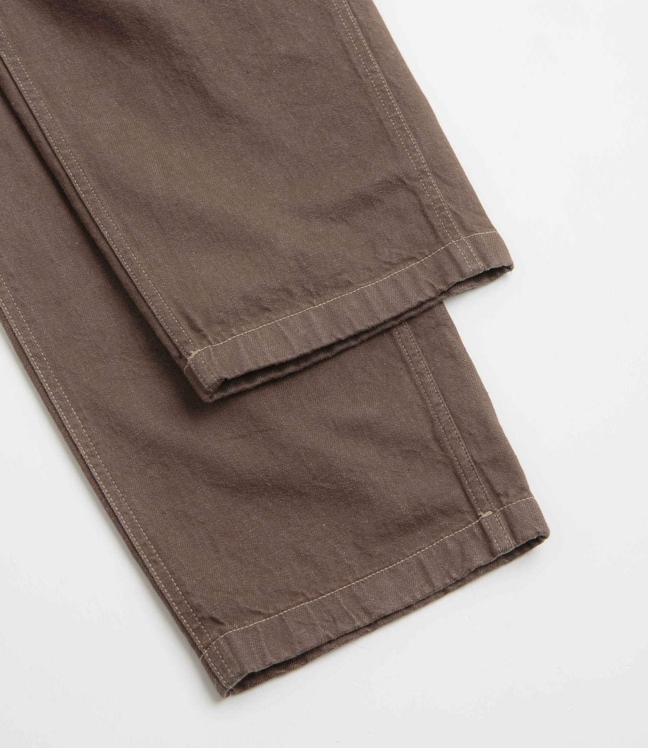Built for everyday wear, these regular fit pants feature a straight leg cut and are made from 100% Japanese cotton slub denim. They come with an elasticated waistband, integrated webbing belt, and gusseted crotch for easy movement. Finished in amber with contrast stitching, two side pockets, two rear pockets, and subtle flag label branding.