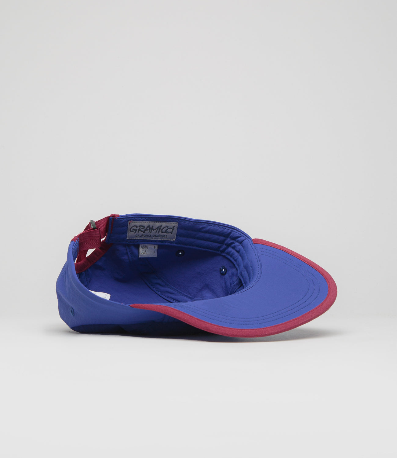 Lightweight and built for sunny days, this cap is made from quick-drying nylon with UPF 50+ protection. The five-panel shape features a contrast edge on the peak, embroidered eyelets for breathability, and an adjustable back strap for a secure fit. Finished with tonal stitching and classic Gramicci branding.