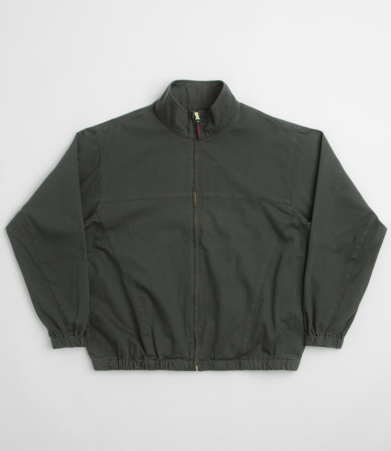 - Stand collar with full-length zipper, panelled chest, and two front pockets