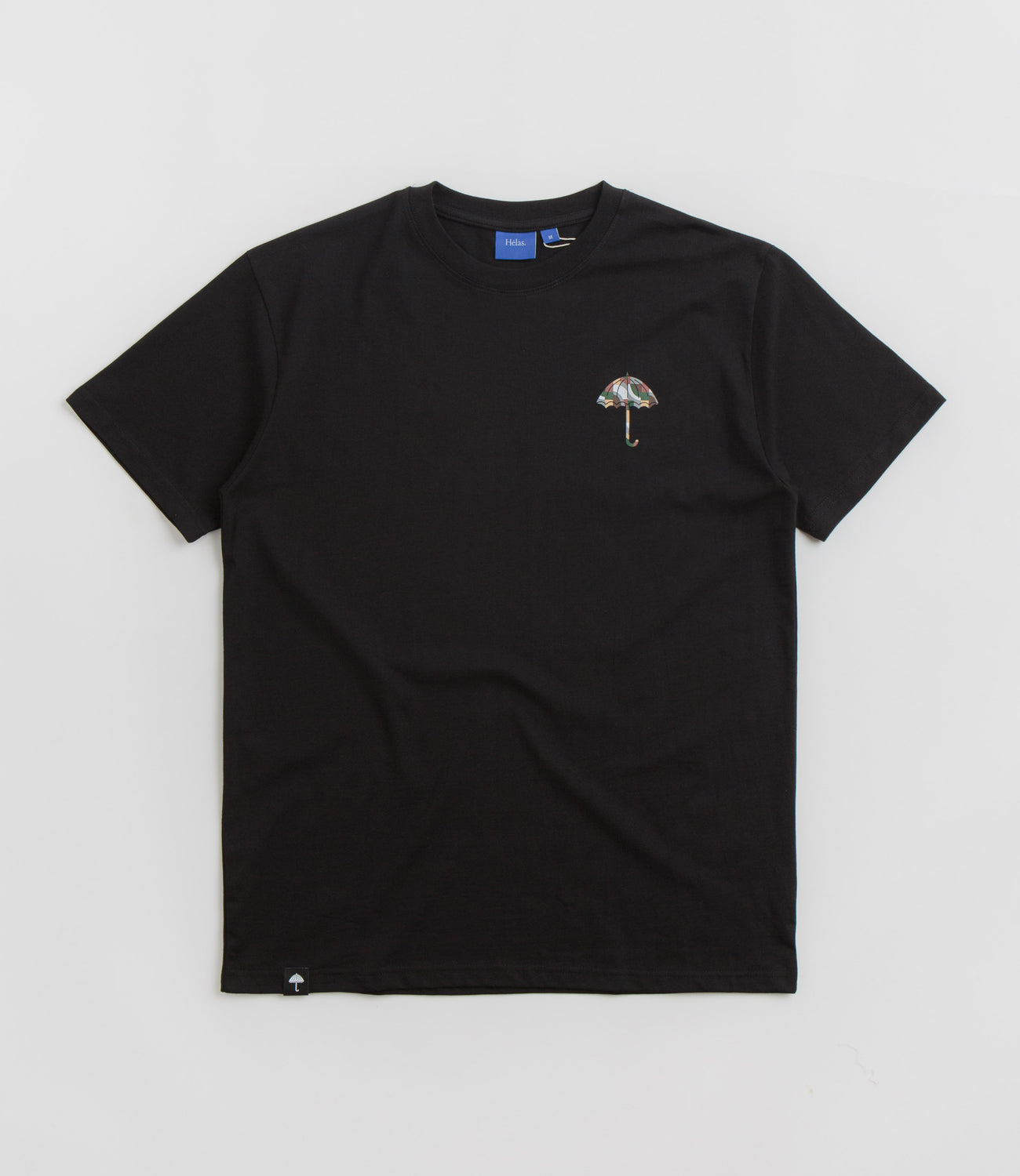 Hélas Mosa T-Shirt in Black. Regular fitting and made from 100% cotton, this new season Hélas t-shirt is designed with a flexible rib knit collar and a straight cut hem. Featuring woven flag label detailing, this black Hélas t-shirt is finished with screen printed front and rear graphics.