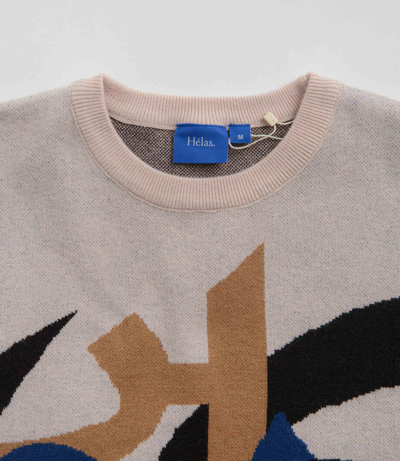 Hélas Nesta Knit Crewneck Sweatshirt in Cream. Made from a mix of acrylic, polyester and nylon and designed with a jacquard knit graphic, this Hélas sweatshirt is tailored to a regular fitting with a rib knit collar. Featuring ribbed cuffs and a woven elastic hem, this cream Hélas sweater is finished with tonal stitched seams and with an inner neckline flag label.