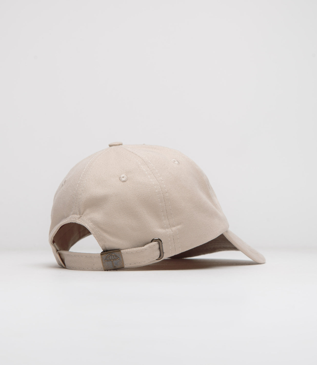 Hélas Universite Cap in Beige. Made from 100% cotton twill, this four panel Hélas cap is designed with a curved peak and tonal stitched seams. Featuring embroidered airflow eyelets and an adjustable rear fastening, this beige Hélas cap is finished with an embroidered Hélas patch graphic.