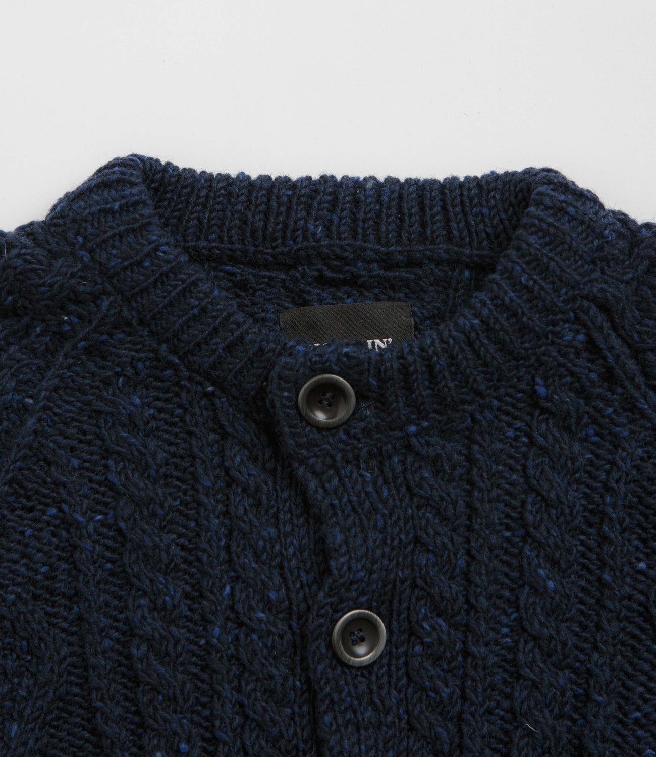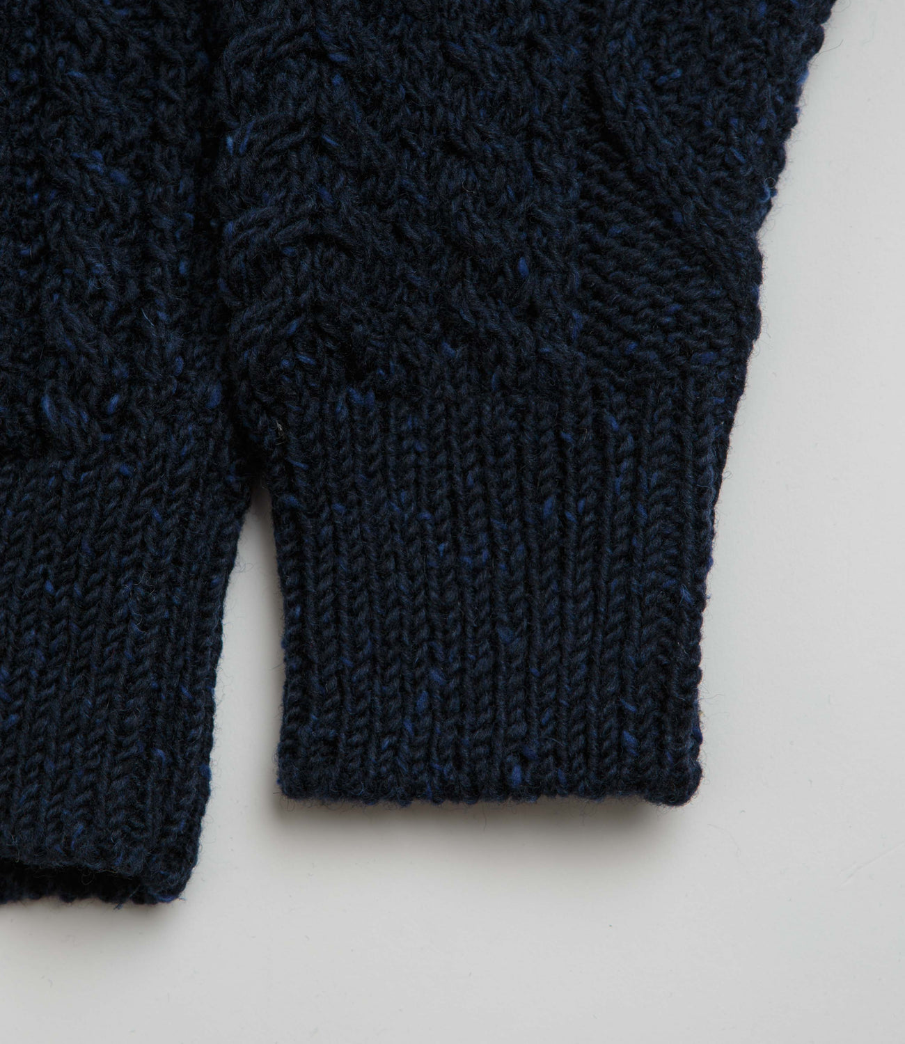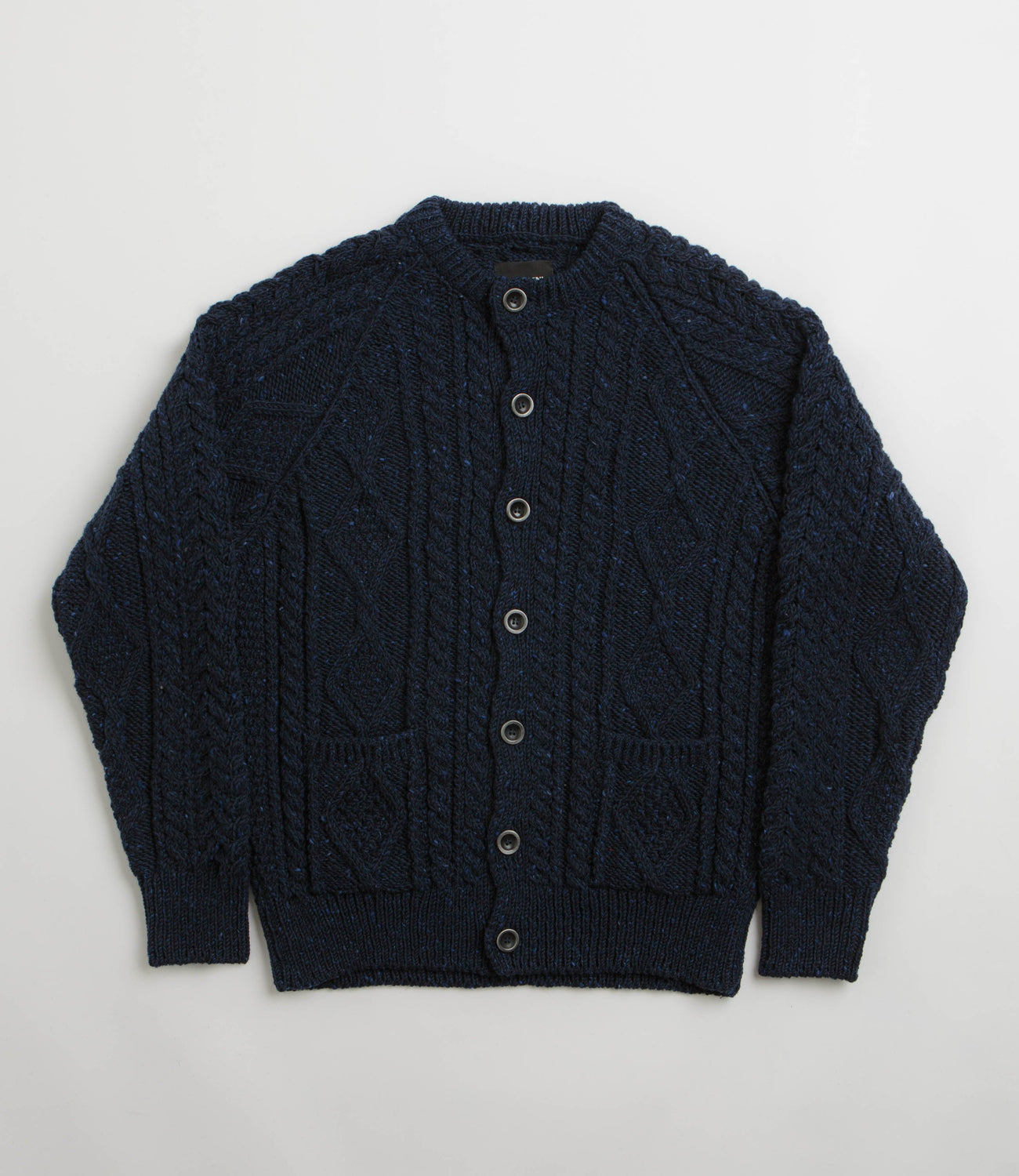 Howlin' Mothership Connection Cardigan in Navy. Crafted with an argyle knit construction, this regular fitting Howlin’ cardigan is sourced from 100% Scottish wool. Featuring a rib knit collar, raglan sleeves and elasticated cuffs, this navy Howlin’ cardigan is finished with a full length button fastening and with two front pockets.
