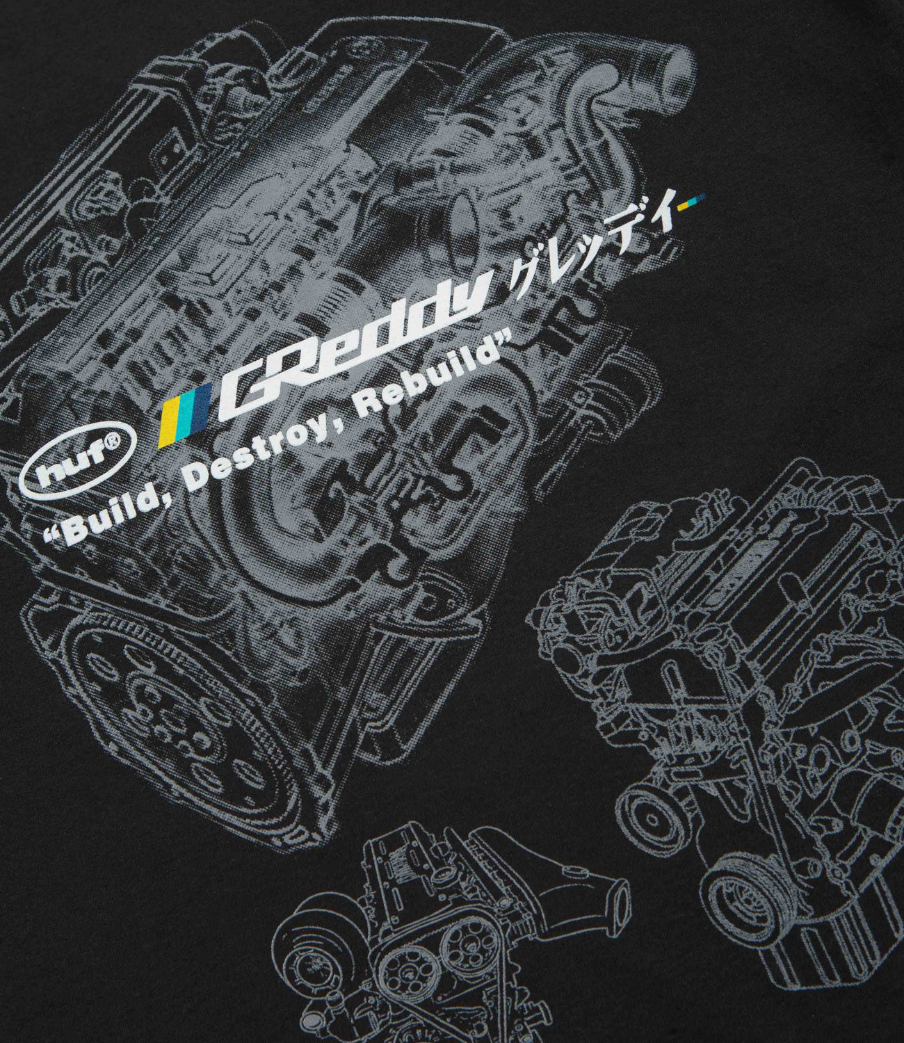 Clean and straightforward, this HUF tee taps into Japanese automotive culture with graphics created alongside GReddy - the iconic brand behind high-performance tuning parts. Made from 100% cotton with a rib knit collar and a regular fit, it’s built for easy, everyday wear.
