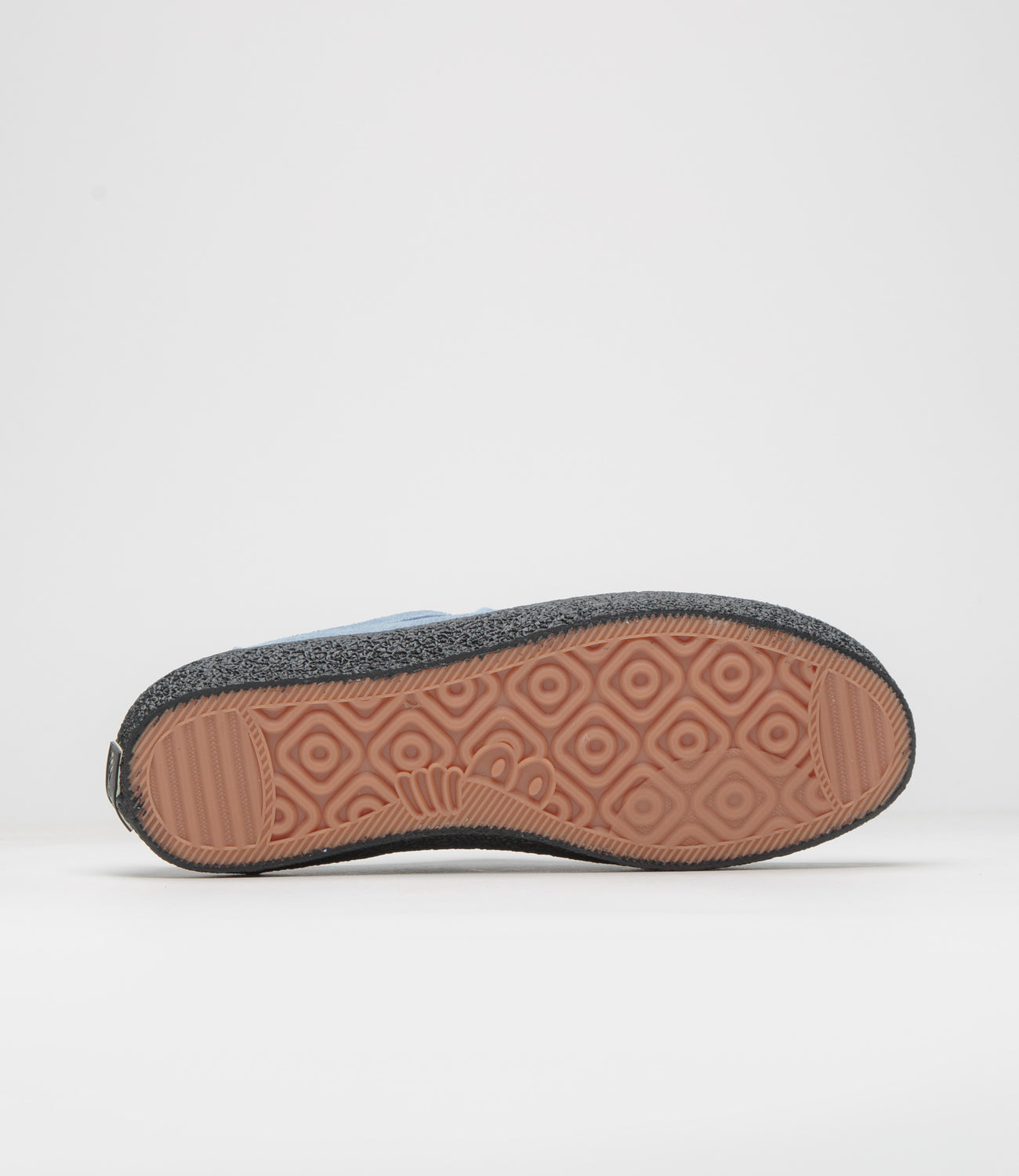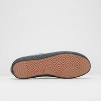 Last Resort AB VM006 Moc Shoes in Dusty Blue and Black. Mocassin inspired and styled with suede uppers, this Last Resort AB VM006 is designed with deep stitch details and waxed cotton details. Featuring a textured midsole and a canvas lined inner, this dusty blue VM006 is finished with a dark gum rubber outsole and with rubber character heel plates.