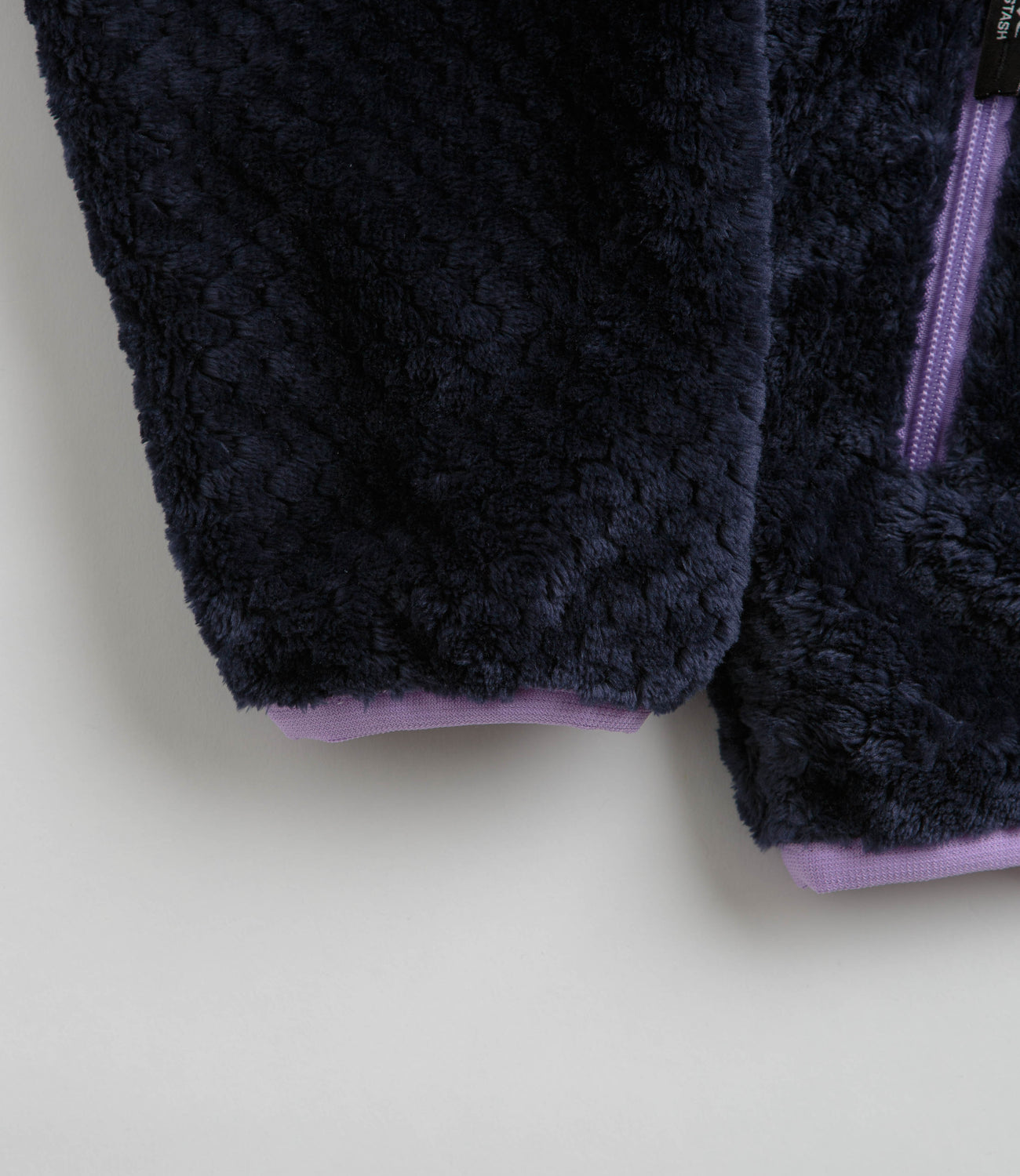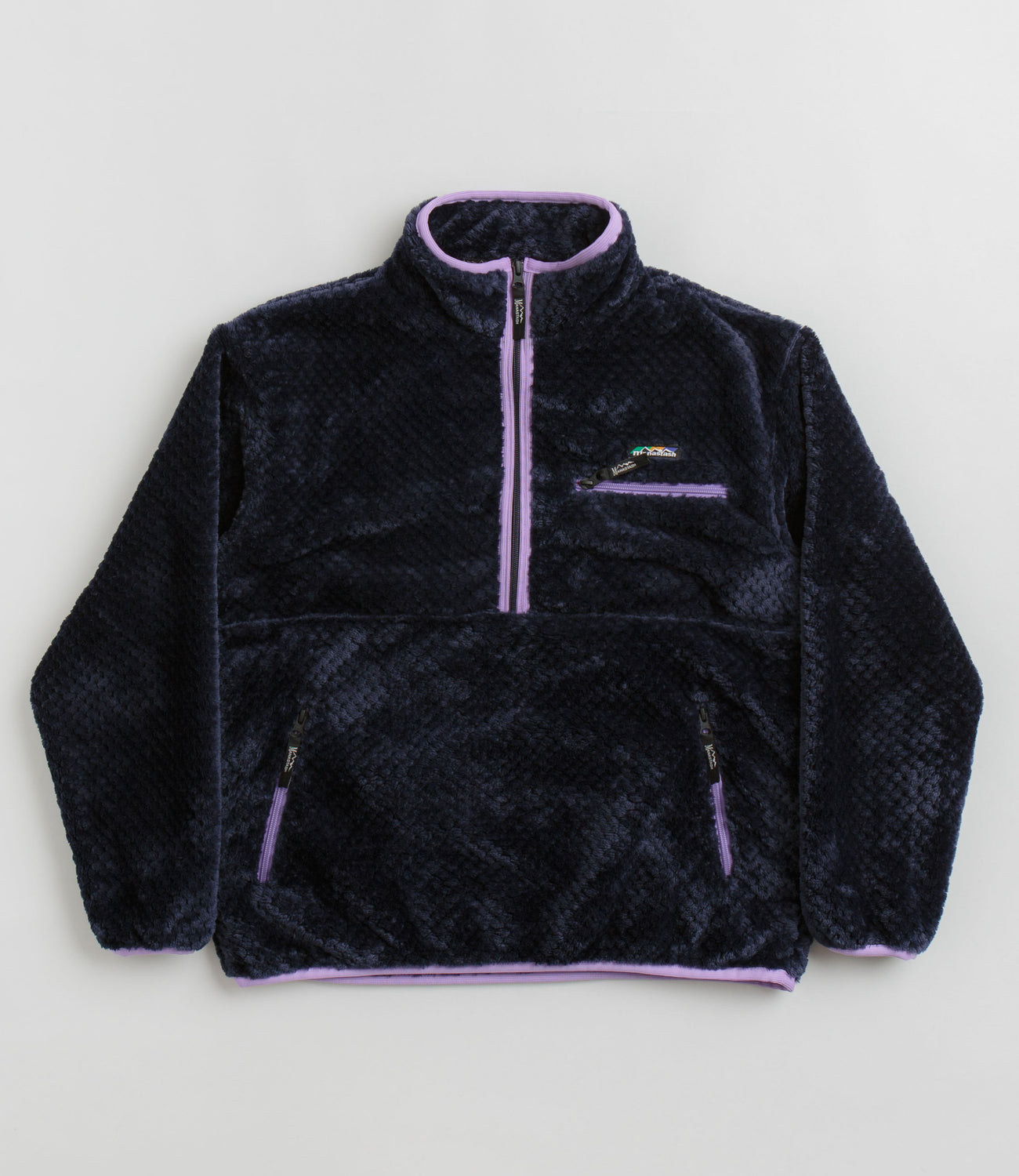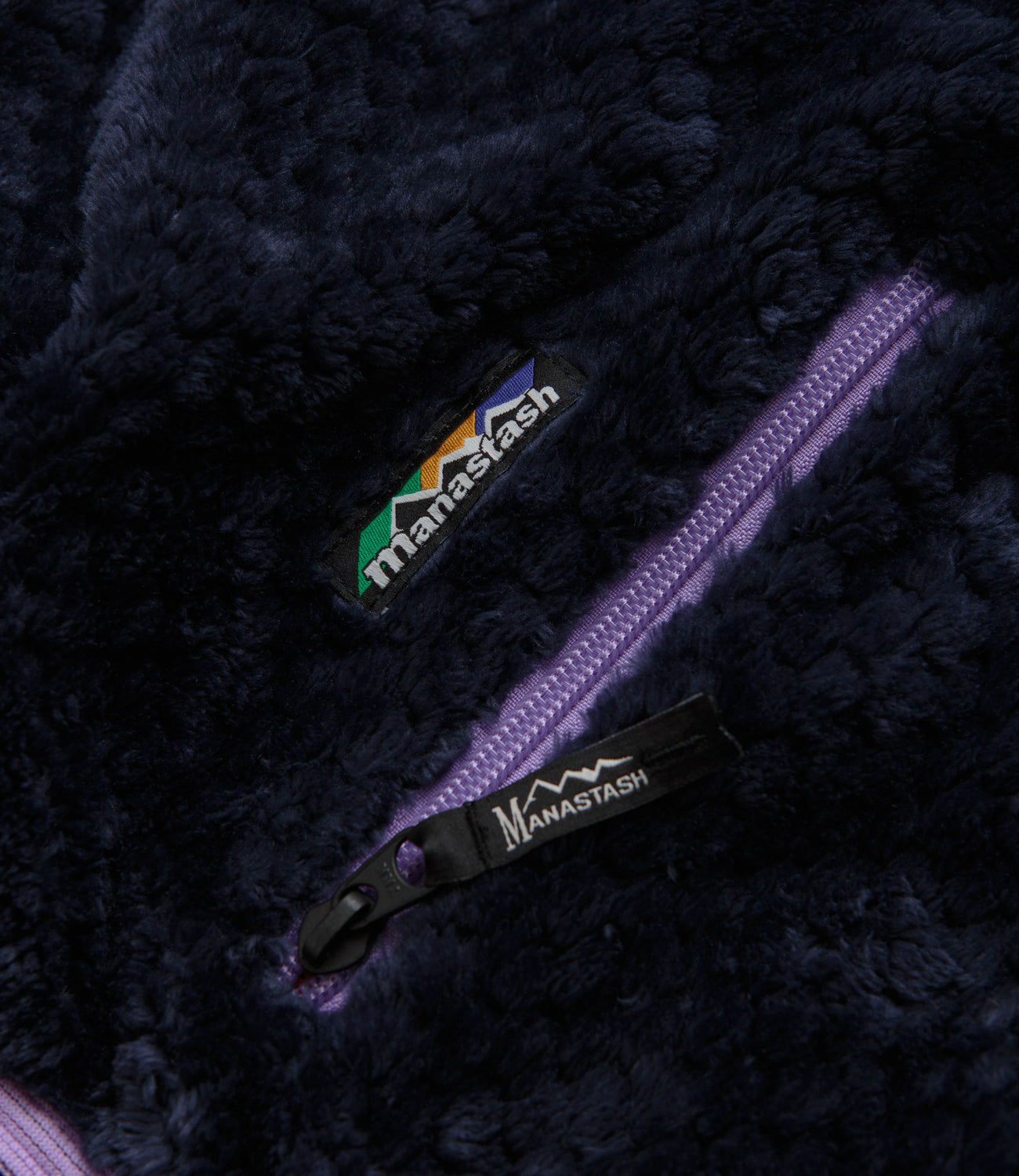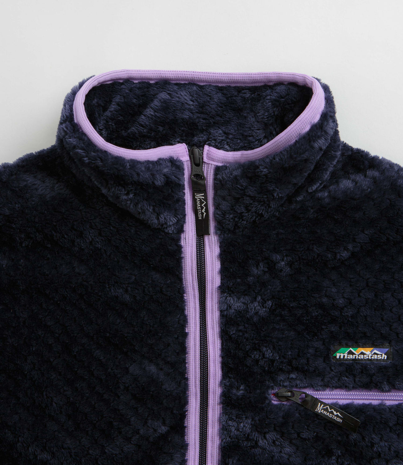 Manastash 24 Poppy Thermal Fleece in Navy. Regular fitting and crafted from polyester jacquard fleece, this Manastash thermal fleece is designed with contrasting taped seams and a half-length zipper fastening. Featuring a panelled chest, dropped shoulders, elasticated cuffs and a woven elastic hem, this navy Manastash fleece is finished with two zippered front pockets, a zipped chest pocket and with woven flag label branding.