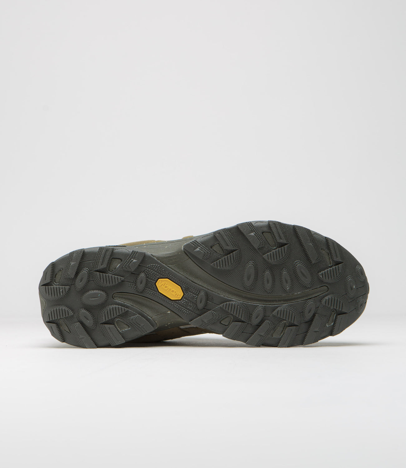 Merrell Moab Speed Zip GTX SE Shoes in Coyote and Olive. Trail influenced with a GORE-TEX® external membrane, this Merrell Moab Speed Zip GTX SE is designed with suede and ripstop uppers with a streamlined protective zipper fastening. Featuring a speckled FloatPro™ Foam midsole with a deep lug Vibram® tread, this khaki brown Merrell Moab Speed Zip GTX SE is finished with printed GORE-TEX® branding, a padded ripstop tongue, printed insoles and with woven heel pulls.