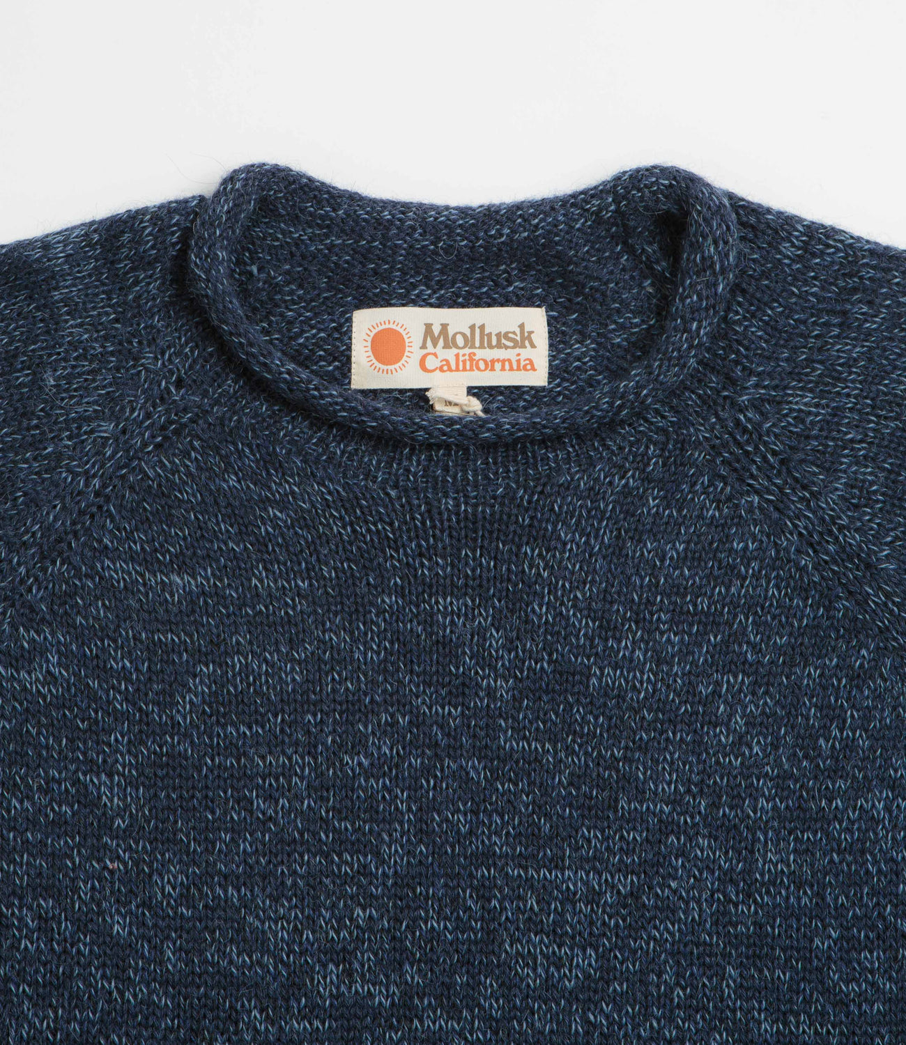 A cosy layer made from a blend of alpaca, acrylic, and wool, this Mollusk sweater feels soft on the skin while holding its shape. The raglan sleeves make it easy to move in, and the rolled rib knit collar, cuffs, and hem give it a relaxed, classic look. With a regular fit and timeless navy tone, it’s perfect for layering over everyday t-shirts or heavier jackets.