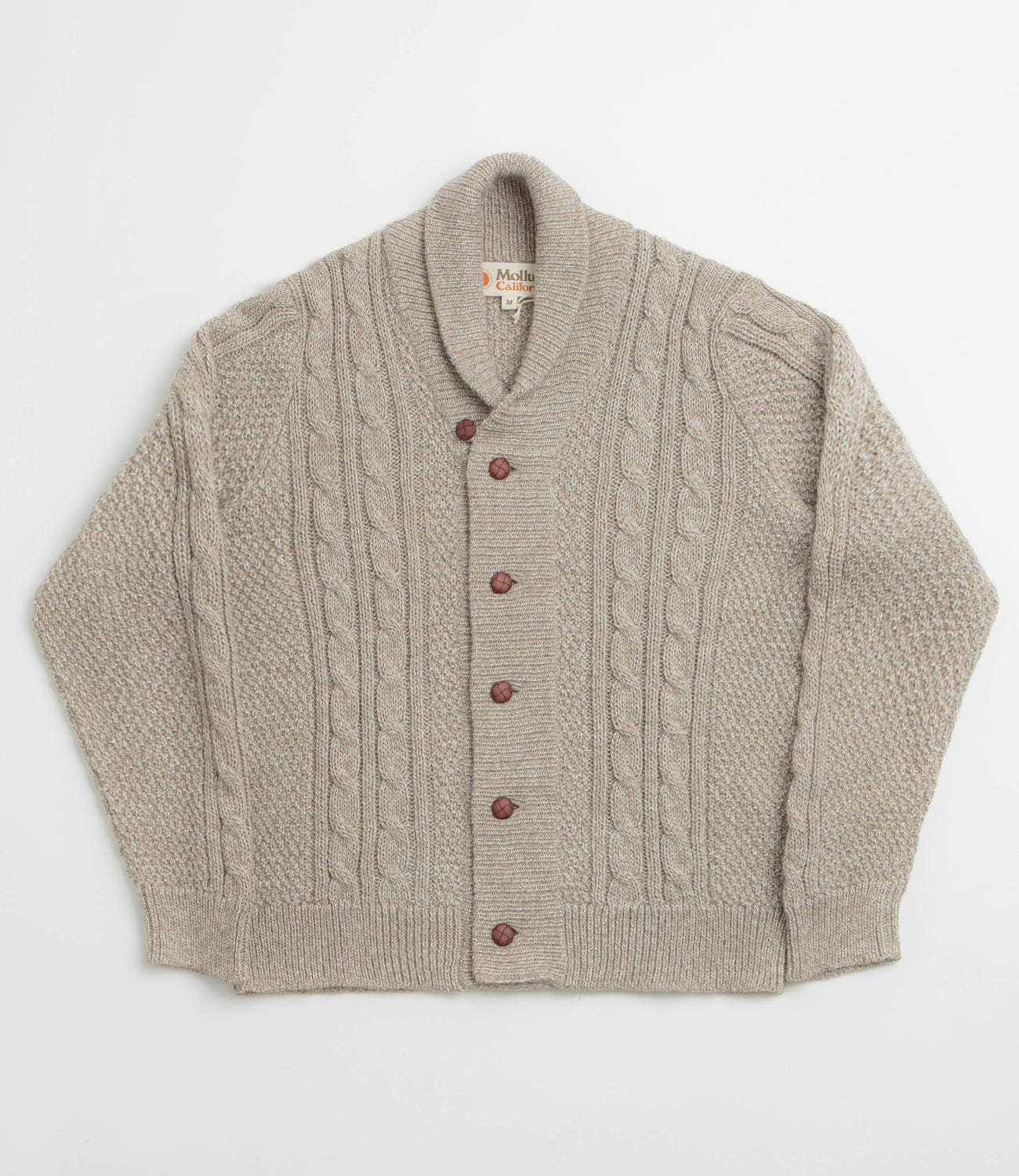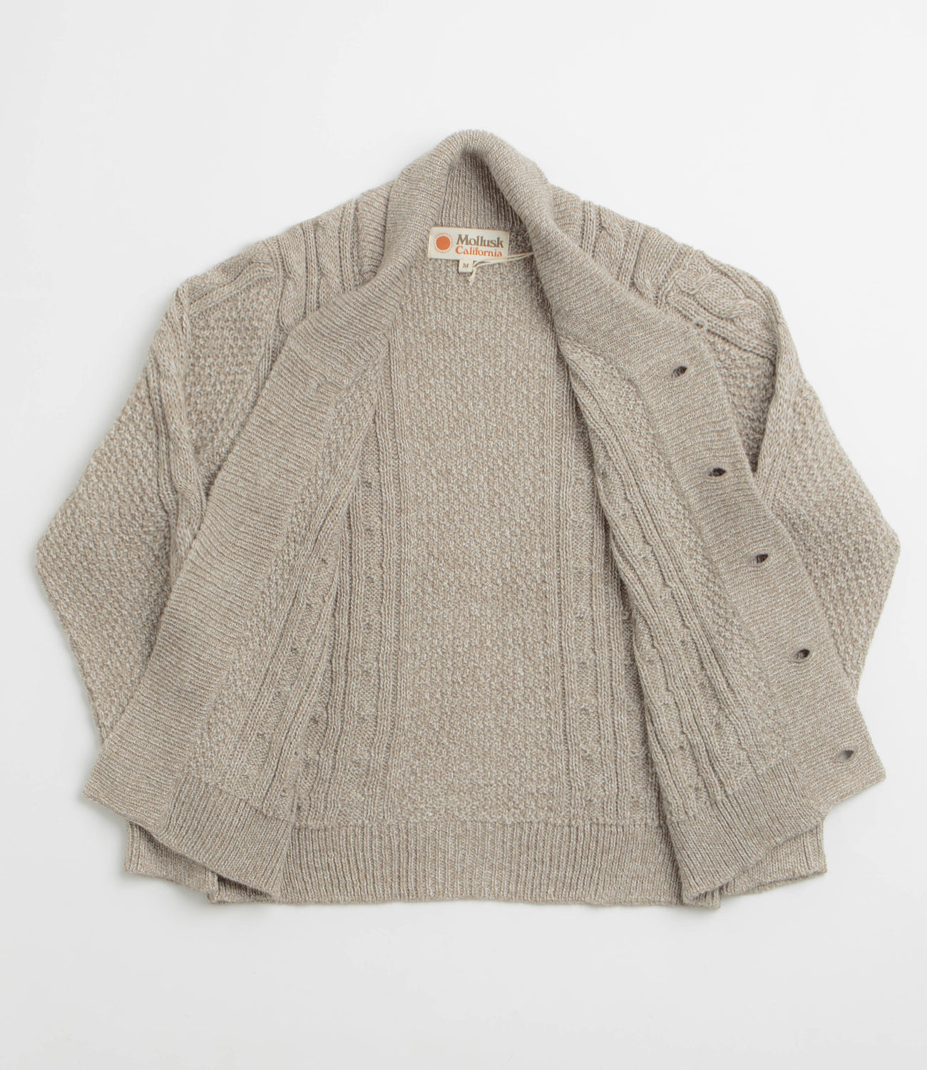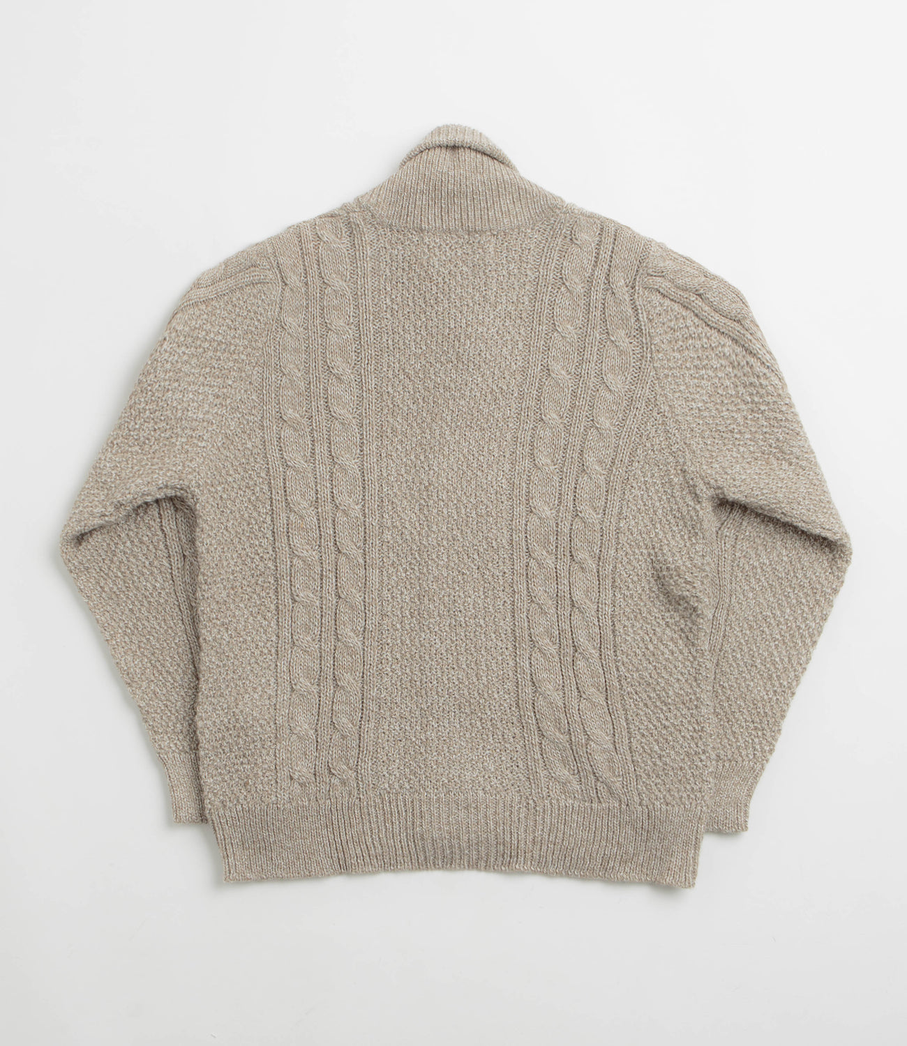 A cosy layer for cooler days, crafted from a blend of alpaca, acrylic, and wool. The cable knit design and chunky shawl collar give it classic texture and character, while the full-length button fastening makes it easy to wear open or closed. Finished with ribbed cuffs and hem and a regular fit, it’s a versatile piece that feels substantial yet effortless - perfect for layering over tees or shirts.