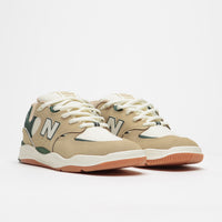 New Balance Numeric 1010 Tiago Lemos Shoes in Tan and White. Arriving as the latest colourway of team rider Tiago Lemos’ first signature skate shoe, this New Balance Numeric 1010 is styled with mixed suede and synthetic uppers with a reinforced toe cap and moulded Ortholite insoles. Featuring a full-length dual density FuelCellmidsole, a reinforced FantomFit heel stability and an Ndurance rubber outsole, this tan and white NB Numeric 1010 also features perforated ‘N’ logo side walls. Finished with puffy laces, padded canvas ‘NB# Tiago 1010’ tongues and with exposed stitch details sewn across each layered heel.