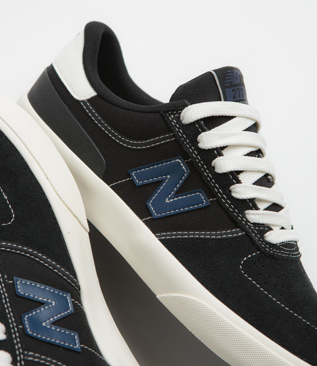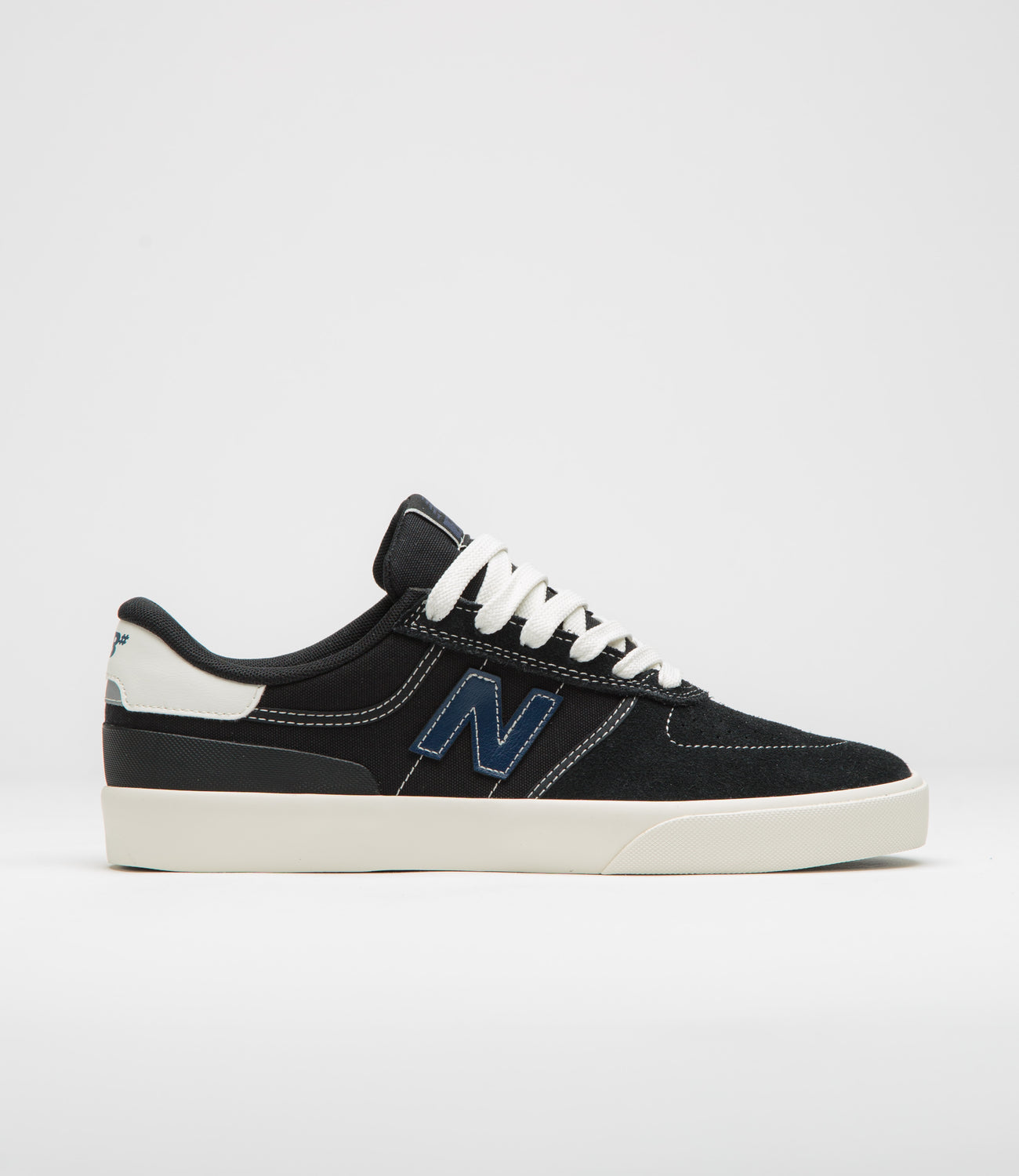 The New Balance Numeric 272 blends suede and canvas for a clean, durable look, with a reinforced one-piece toe that can take a beating. Ortholite cushioning keeps it comfortable all day, while the rubber heel stabiliser and vulcanised sole make it solid underfoot. Finished with contrasting leather N logos, a gum rubber outsole, and subtle heel branding, this black and navy 272 is as reliable as it is understated.