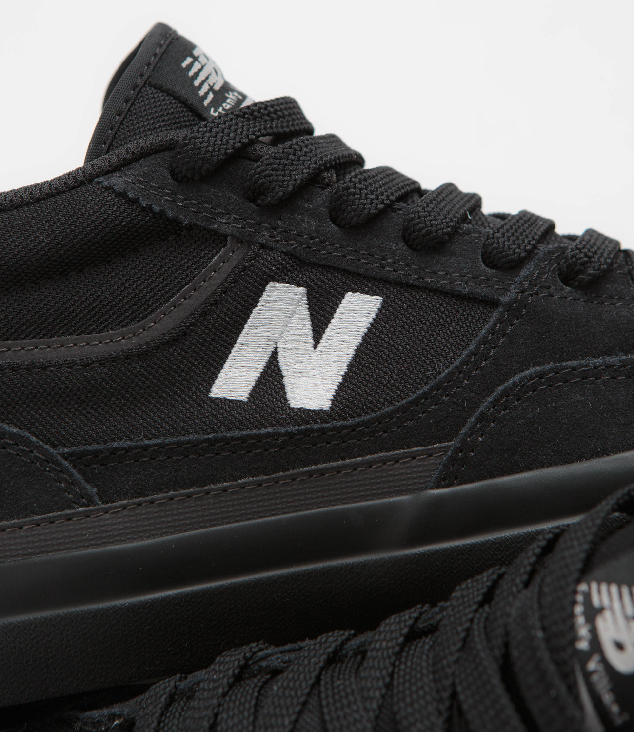 Franky Villani’s signature NB 417 blends suede and mesh with contrast stitching for a durable, everyday-ready look. Double-layer ollie protection, a TPU-backed toe cap, and a cushioned ABZORB insole keep it solid underfoot, while the vulcanised sole grips through every session. Finished with a black rubber outsole, elasticated tongue straps, and embroidered N side wall logos, this black and white 417 is built to skate.