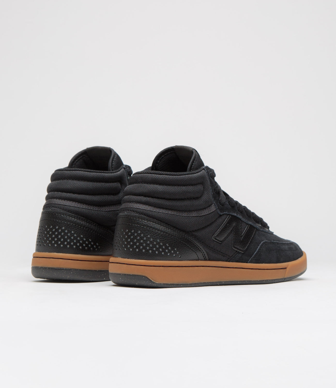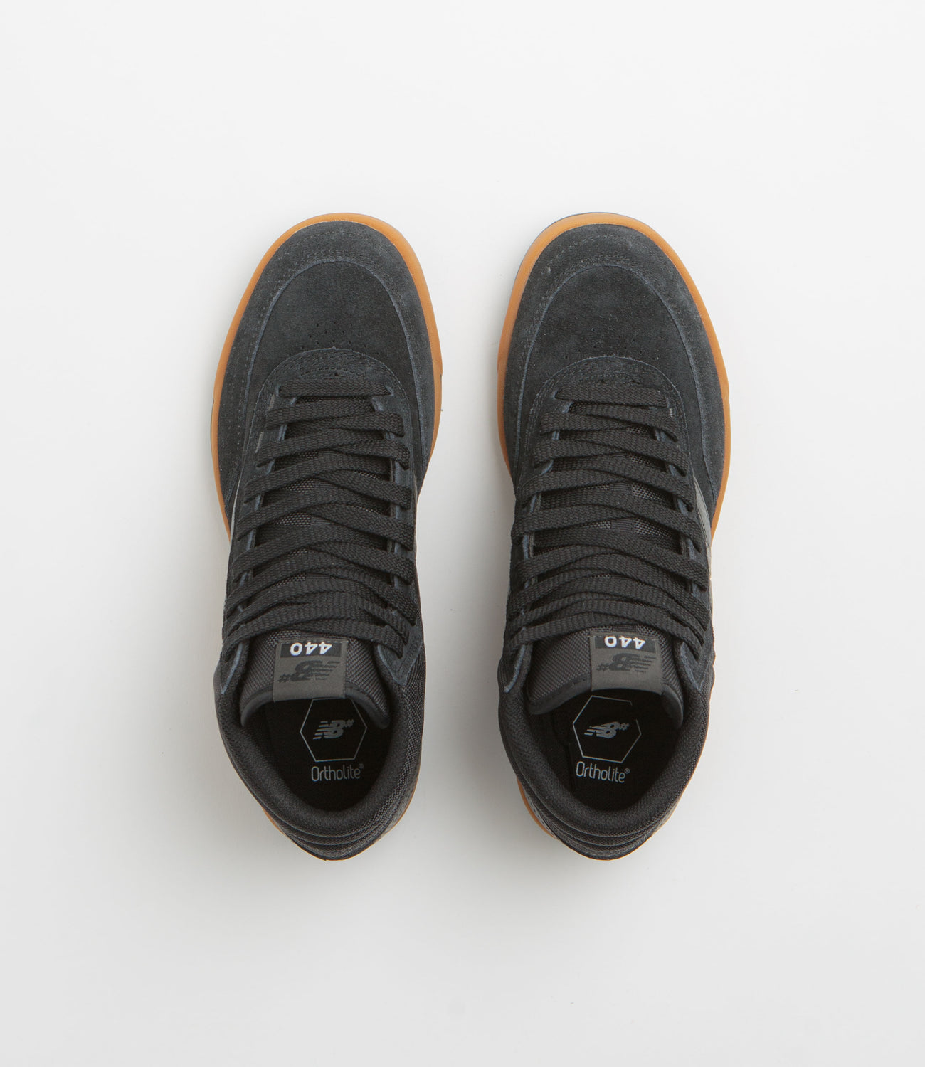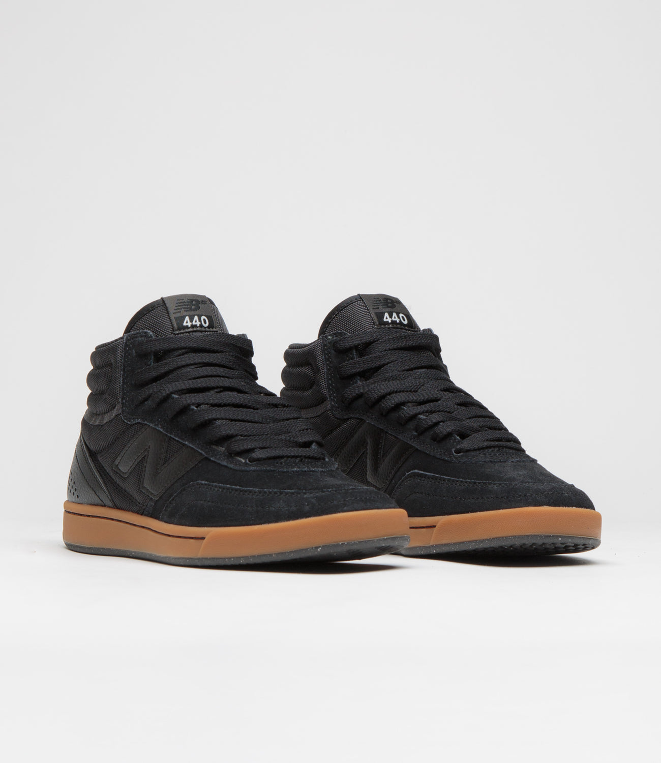 High-top and built for the session, the New Balance Numeric 440 Hi pairs panelled suede and mesh uppers with a double-layered toe box and ABZORB cushioning for comfort and support. A padded mesh collar, leather N side wall logos, Ortholite insole, and full-length cupsole stitch keep it durable and board-ready. Finished in black with woven tongue labels, a rubber outsole, and a perforated leather heel with reflective details.