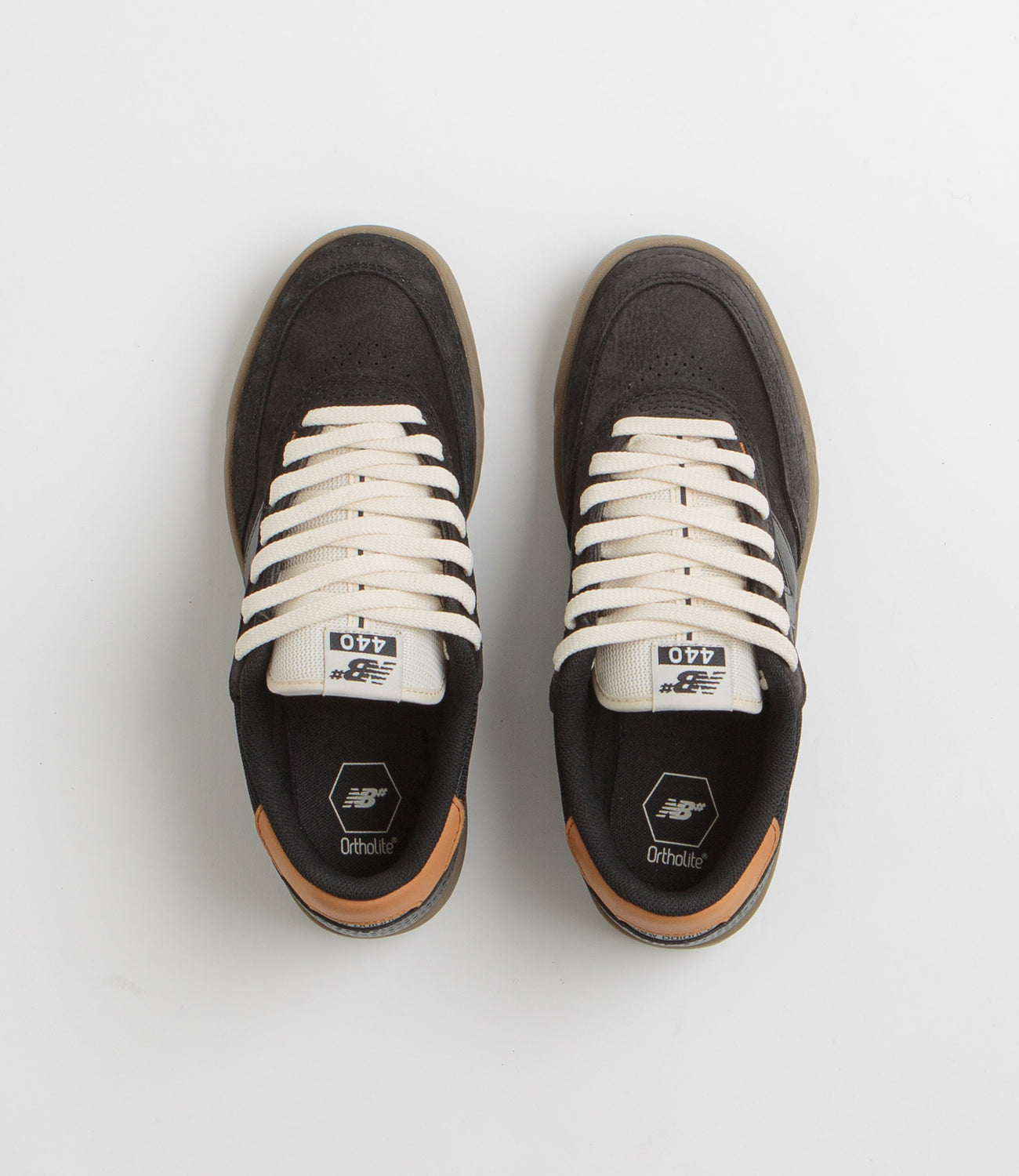 Updated with ABZORB cushioning and Ortholite insoles, the New Balance Numeric 440 blends comfort with skate-ready durability. Panelled nubuck and mesh uppers, a double-layered toe box, perforated leather heel, and full-length cupsole stitch keep it session-ready. Finished in black and brown with woven tongue labels, reflective details, and a gum rubber Ndurance outsole - a reliable skate shoe for everyday rotation.