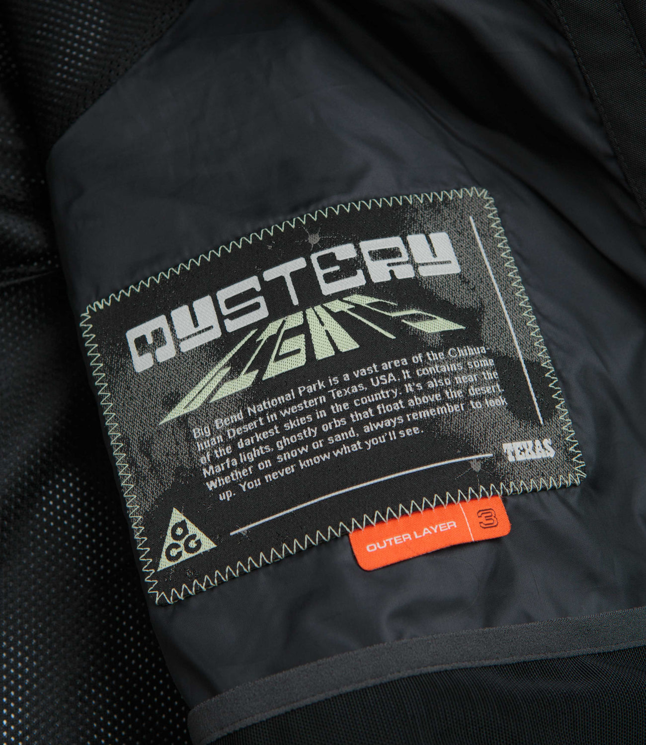 Made to layer, built to last - this ACG jacket is all about coverage without the bulk. It’s oversized for easy movement and sealed with GORE-TEX and Storm-FIT ADV to keep the elements out. A full-coverage hood, built-in waist gaiter, and adjustable cuffs lock in the warmth, while the clip-in carabiner and zipped storage keep things practical on the move. Finished in all-black with subtle ACG details.