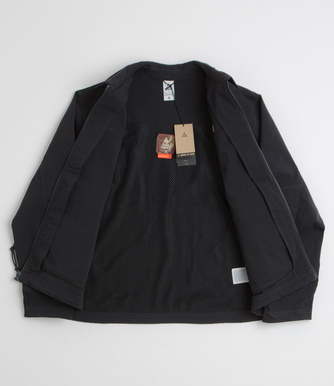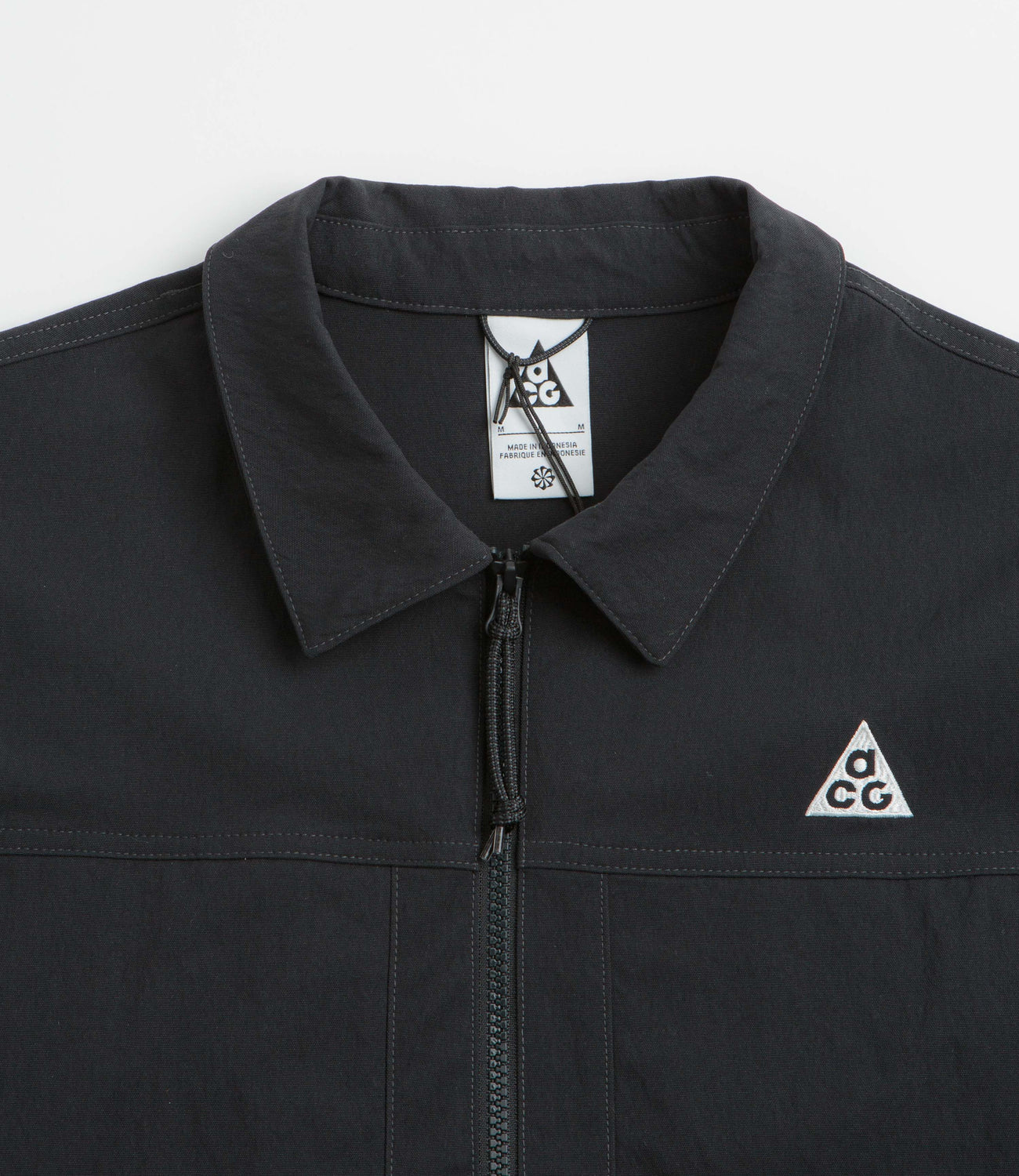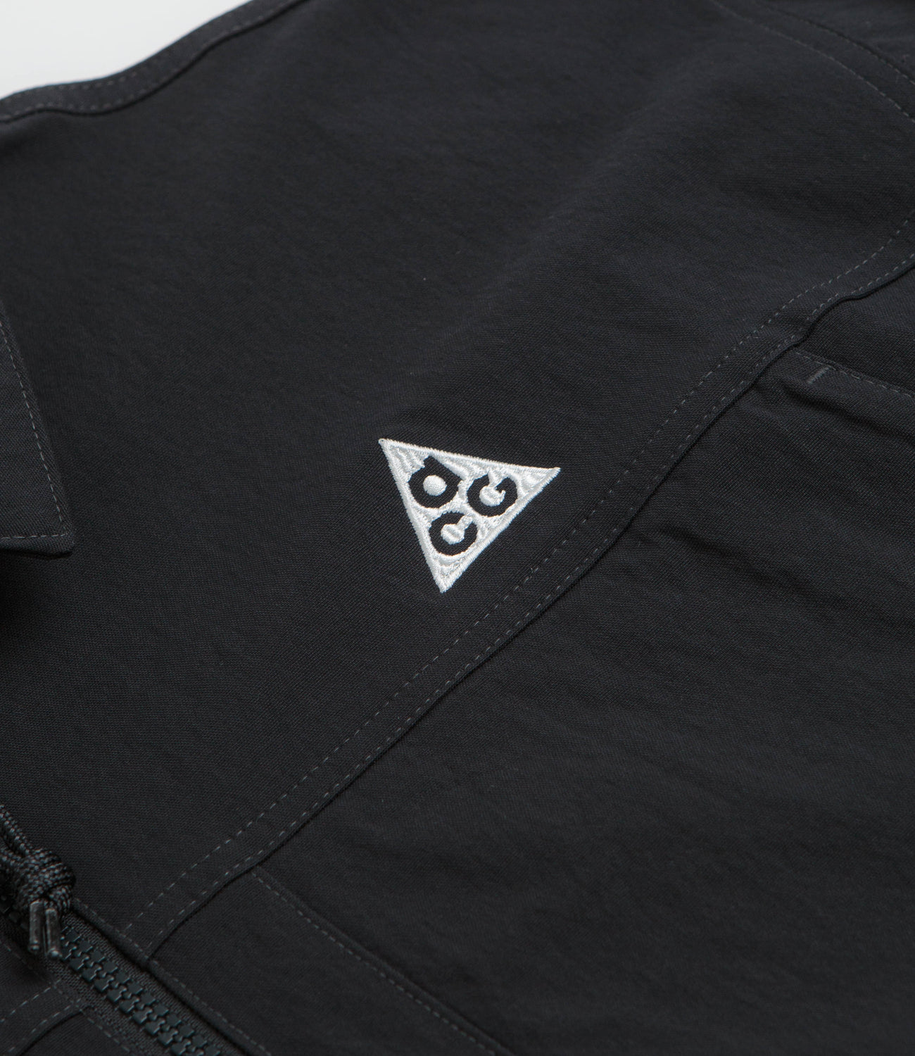 Nike ACG Smith Summit Jacket in Black, Anthracite and Summit White. Regular fitting and made from a nylon-elastane blend, this water-resistant Nike ACG jacket is designed with additional UV protection. Featuring a full length two-way zipper fastening, two front pockets and an embroidered logo, this black Nike ACG jacket is finished with a toggle-cord hem and an ACG carabiner clip.