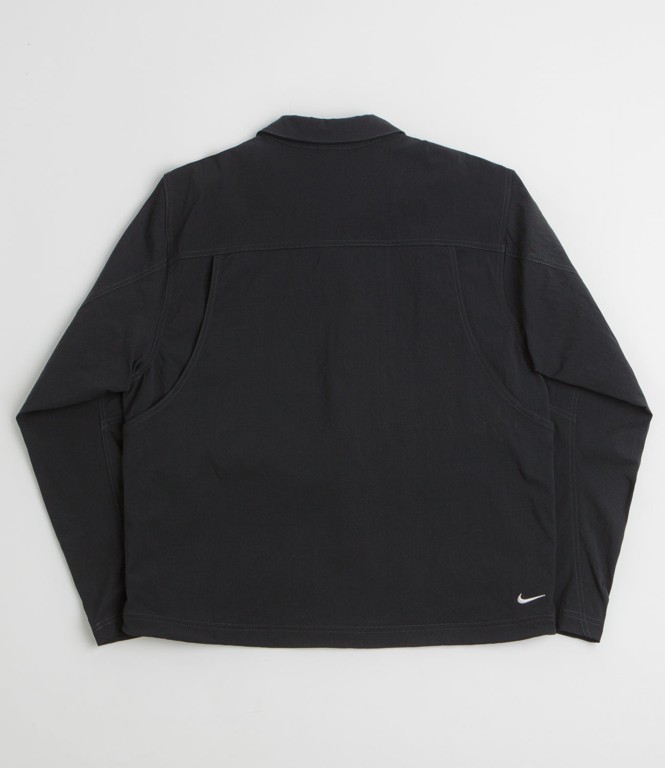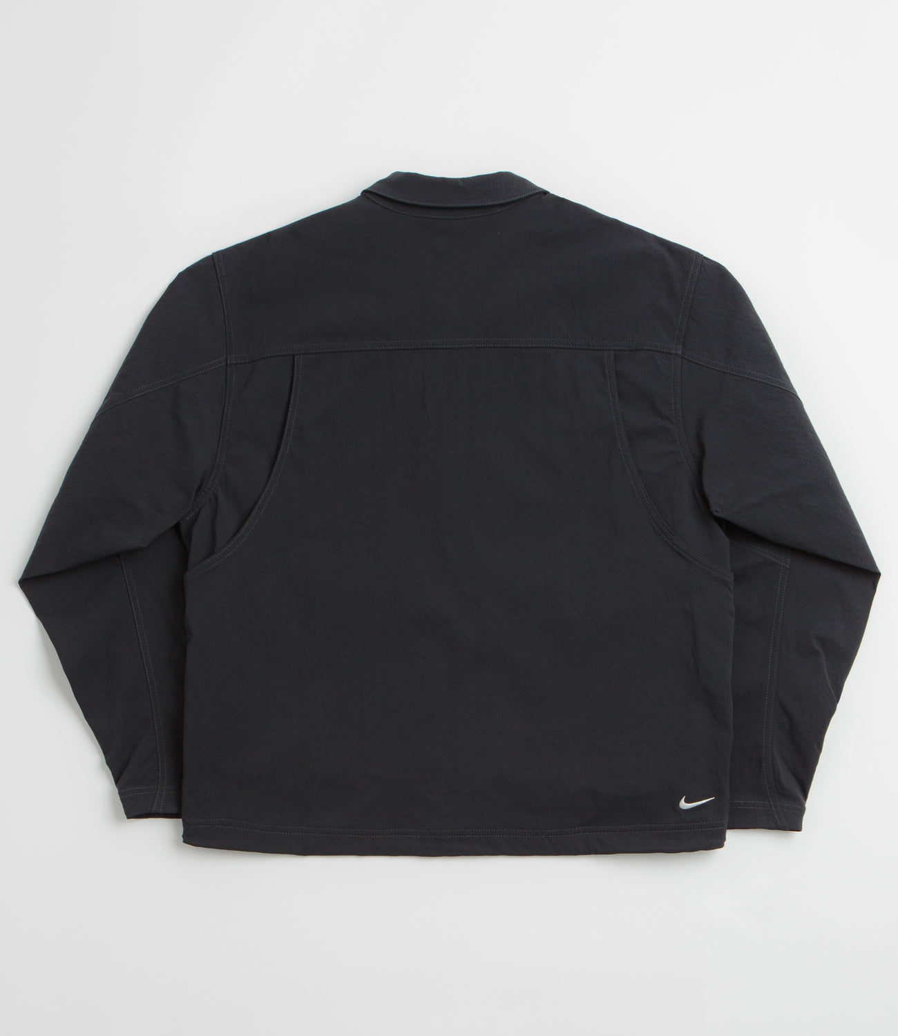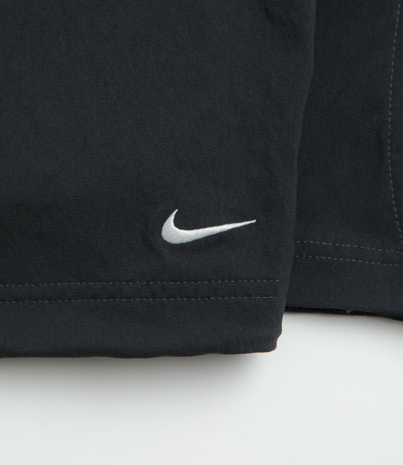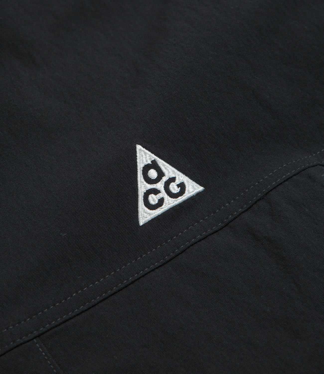 Nike ACG Smith Summit Jacket in Black, Anthracite and Summit White. Regular fitting and made from a nylon-elastane blend, this water-resistant Nike ACG jacket is designed with additional UV protection. Featuring a full length two-way zipper fastening, two front pockets and an embroidered logo, this black Nike ACG jacket is finished with a toggle-cord hem and an ACG carabiner clip.
