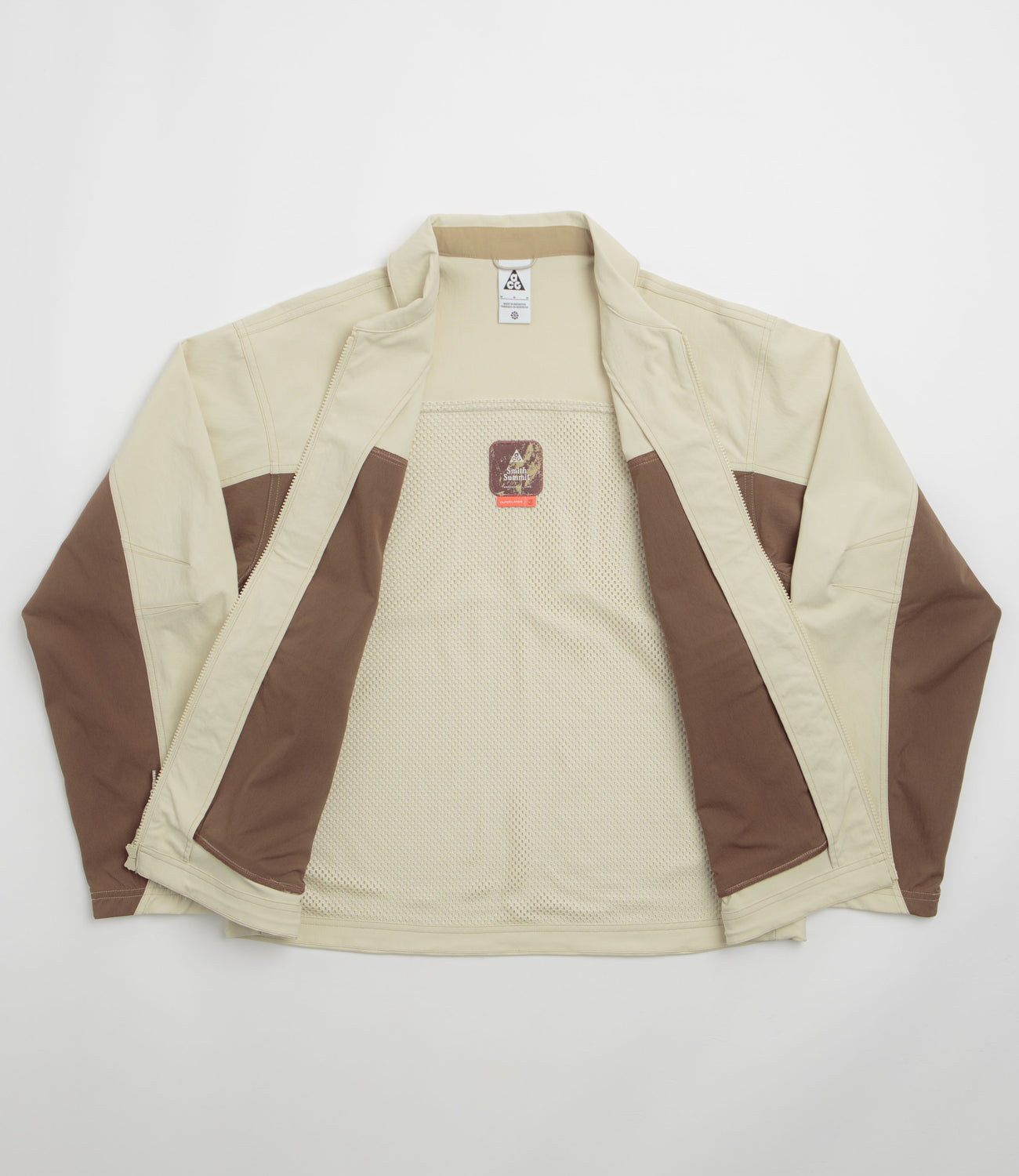 Built for getting outside, this Nike ACG jacket pairs a water-resistant nylon-elastane shell with UV protection to keep you covered in any conditions. A full-length two-way zipper, toggle-cord hem, and practical ACG carabiner clip add utility-inspired details, while the khaki beige colourway and embroidered logo keep it understated and versatile - a go-to layer for trails, parks, or everyday wear.
