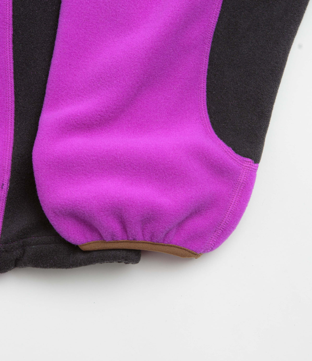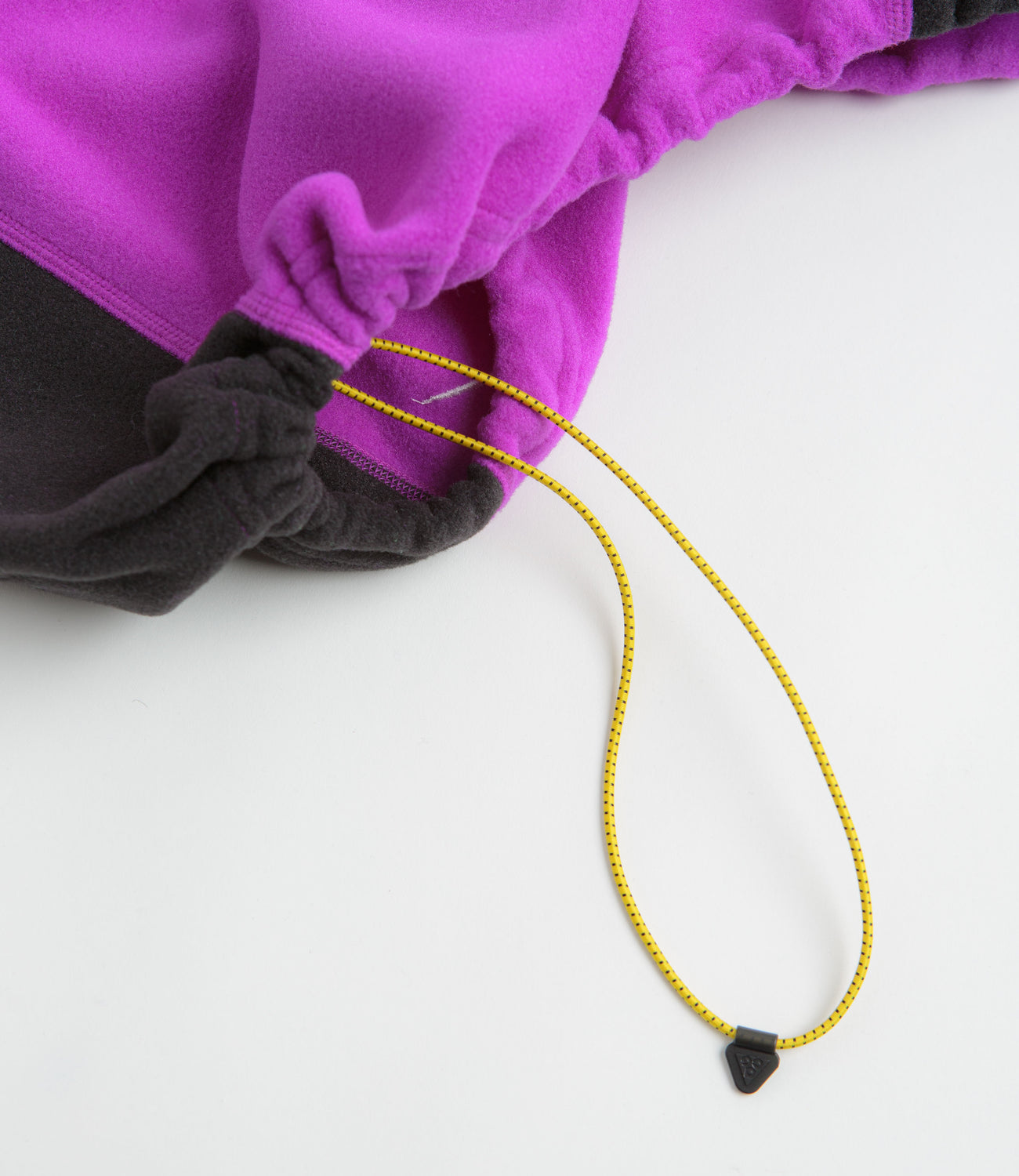 Nike ACG Wolf Tree Crewneck Sweatshirt in Vivid Purple, Black and Summit White. Regular fitting, this Nike ACG sweatshirt is made from 100% polyester fleece with contrasting panels. Featuring Therma-FIT technology, a rib knit collar and elasticated cuffs, this purple Nike ACG sweater is finished with a bungee-cord hem and embroidered branding.
