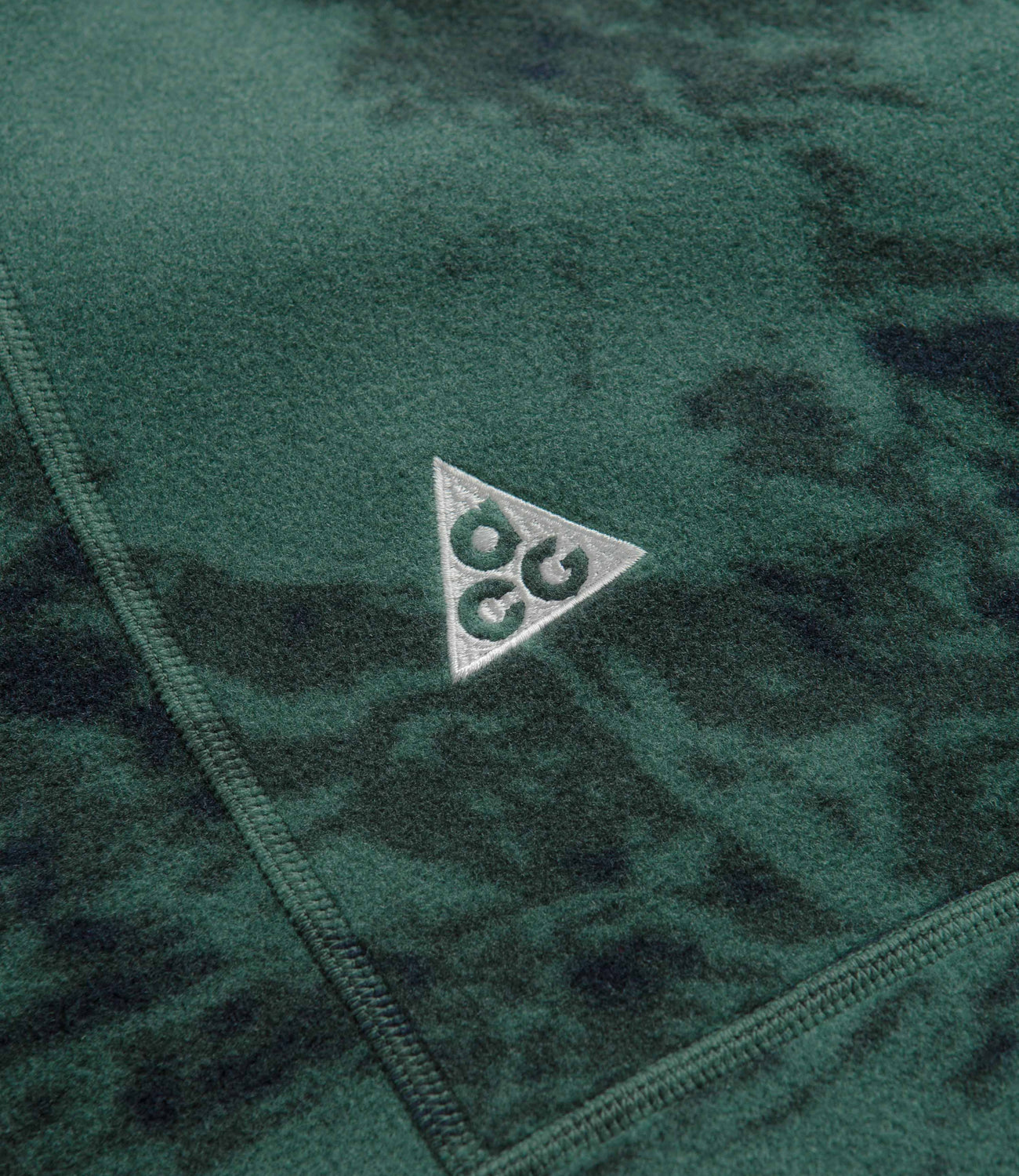 Nike ACG Wolf Tree Print Hoodie in Bicoastal, Thunder Blue and Summit White. Inspired by Oregon’s Smith Rock with an all-over patterned print, this loose fitting Nike ACG hoodie is made from 100% polyester Polartec® fleece. Featuring a triple panel hood, a built-in gaiter, elasticated cuffs and a woven elastic hem, this green Nike ACG hoodie is finished with two waist pockets and with embroidered logo branding.