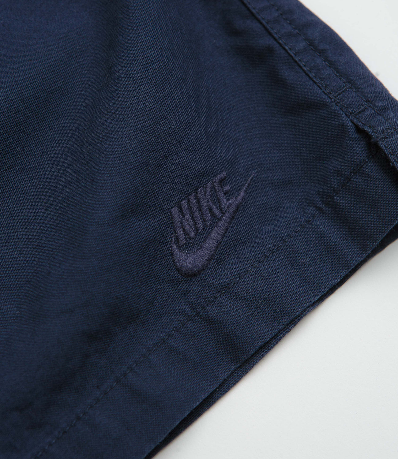 Nike Club Flow Wash Shorts in Obsidian. Designed with a soft enzyme wash, these relaxed fitting Nike shorts are cut to an above-knee length. Made from 100% cotton, these navy Nike shorts are finished with an elasticated waistband, two side pockets, a single rear pocket and woven Futura Swoosh branding.