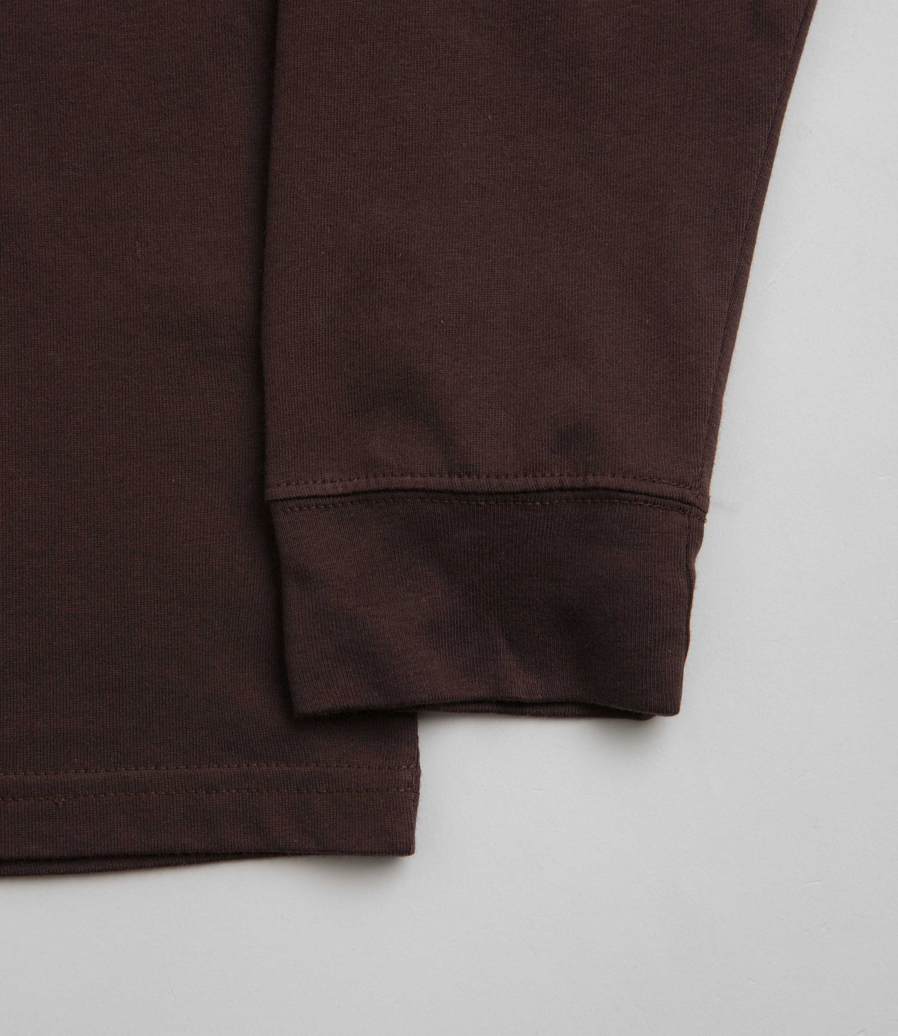 Nike SB City of Love Long Sleeve T-Shirt in Earth. Designed as a tribute to the City of Love, this loose fitting Nike SB t-shirt is made from 100% midweight cotton. Featuring a rib knit collar, dropped shoulders and ribbed cuffs, this brown Nike SB t-shirt is finished with woven flag label branding and with a cracked print Nike SB chest graphic.